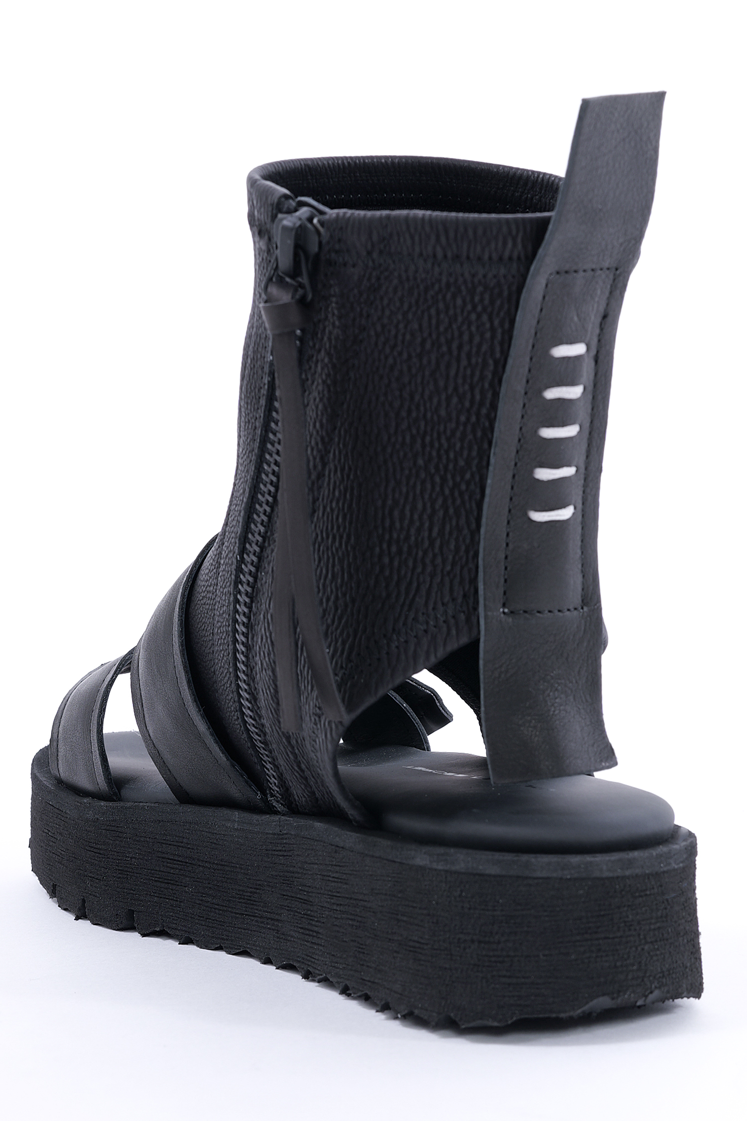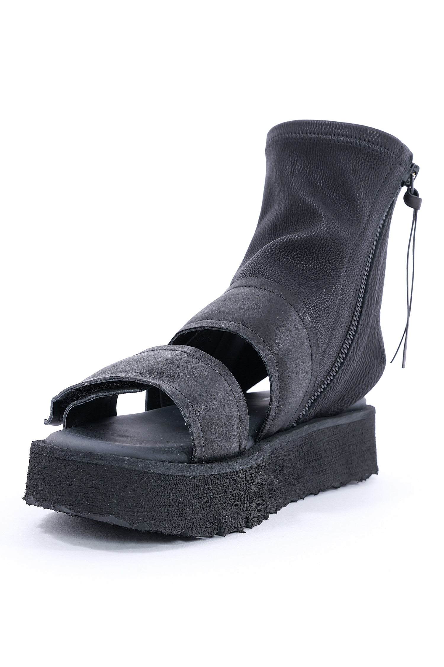 Stretchleder Sandalette mit Klett - Schwarz - No Uniform