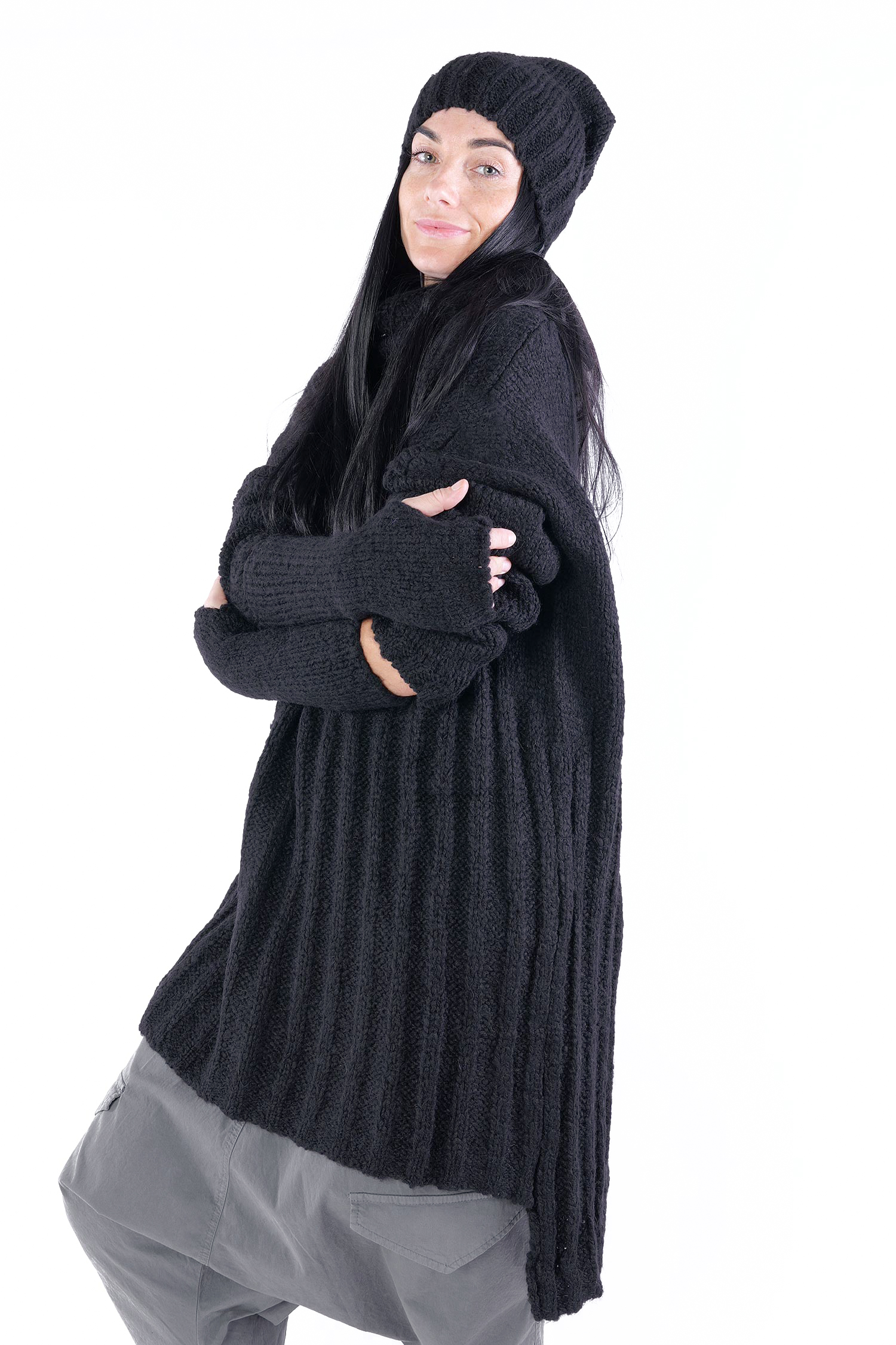 Grobstrick Tunika - Schwarz - Erynia