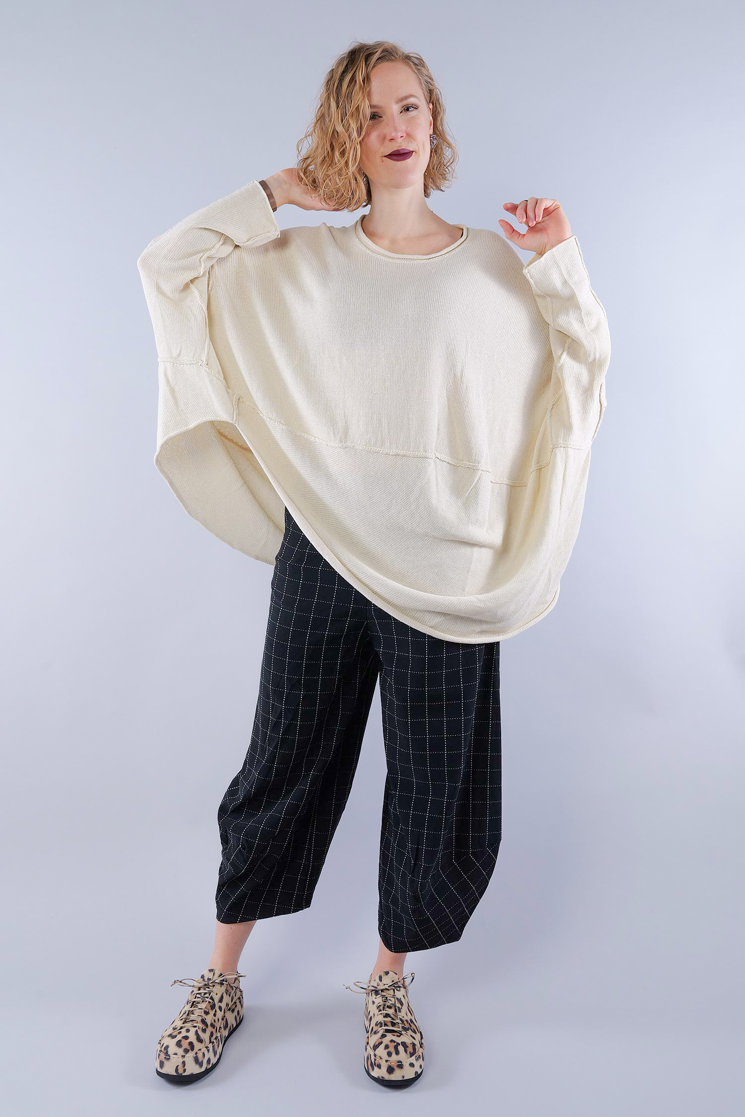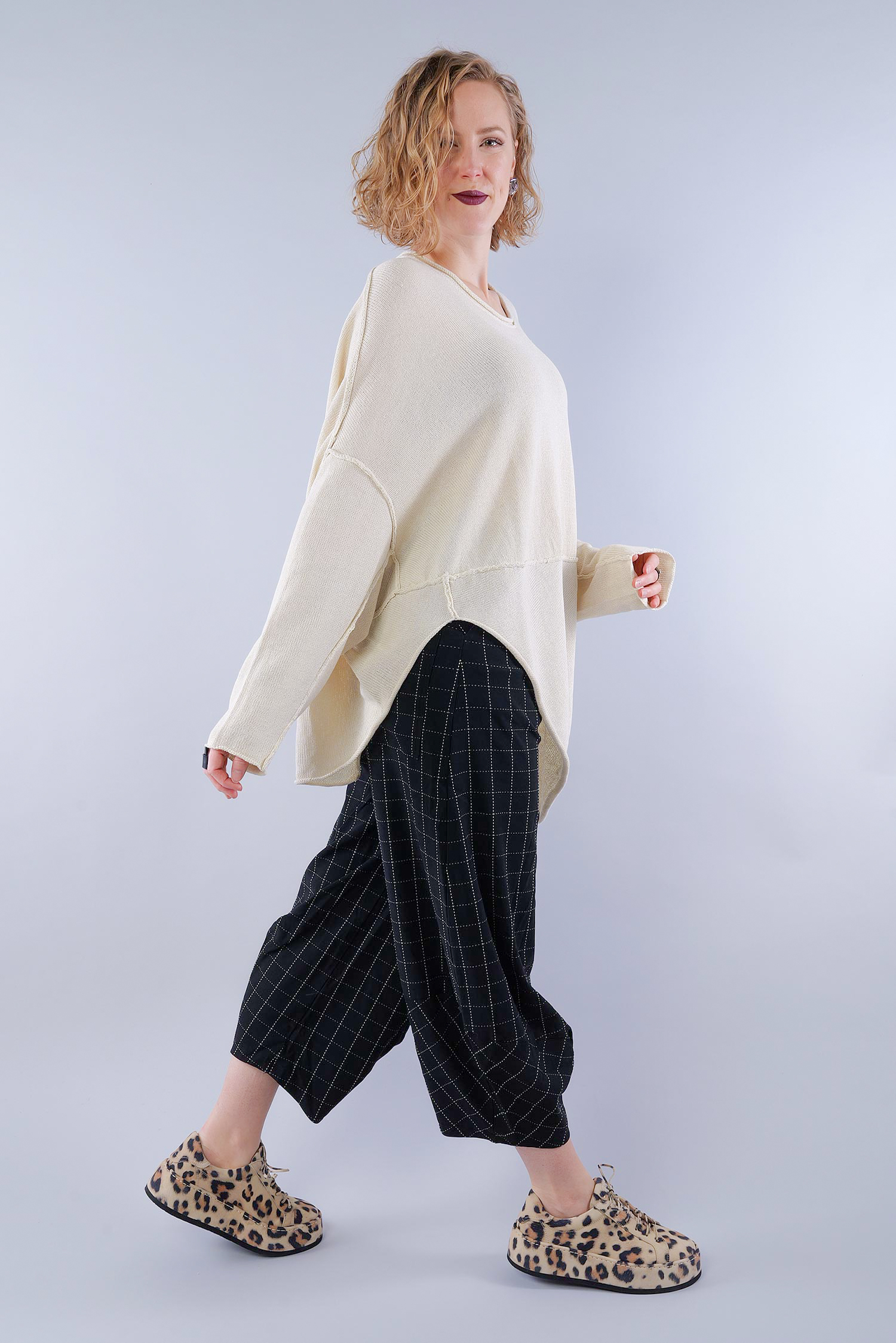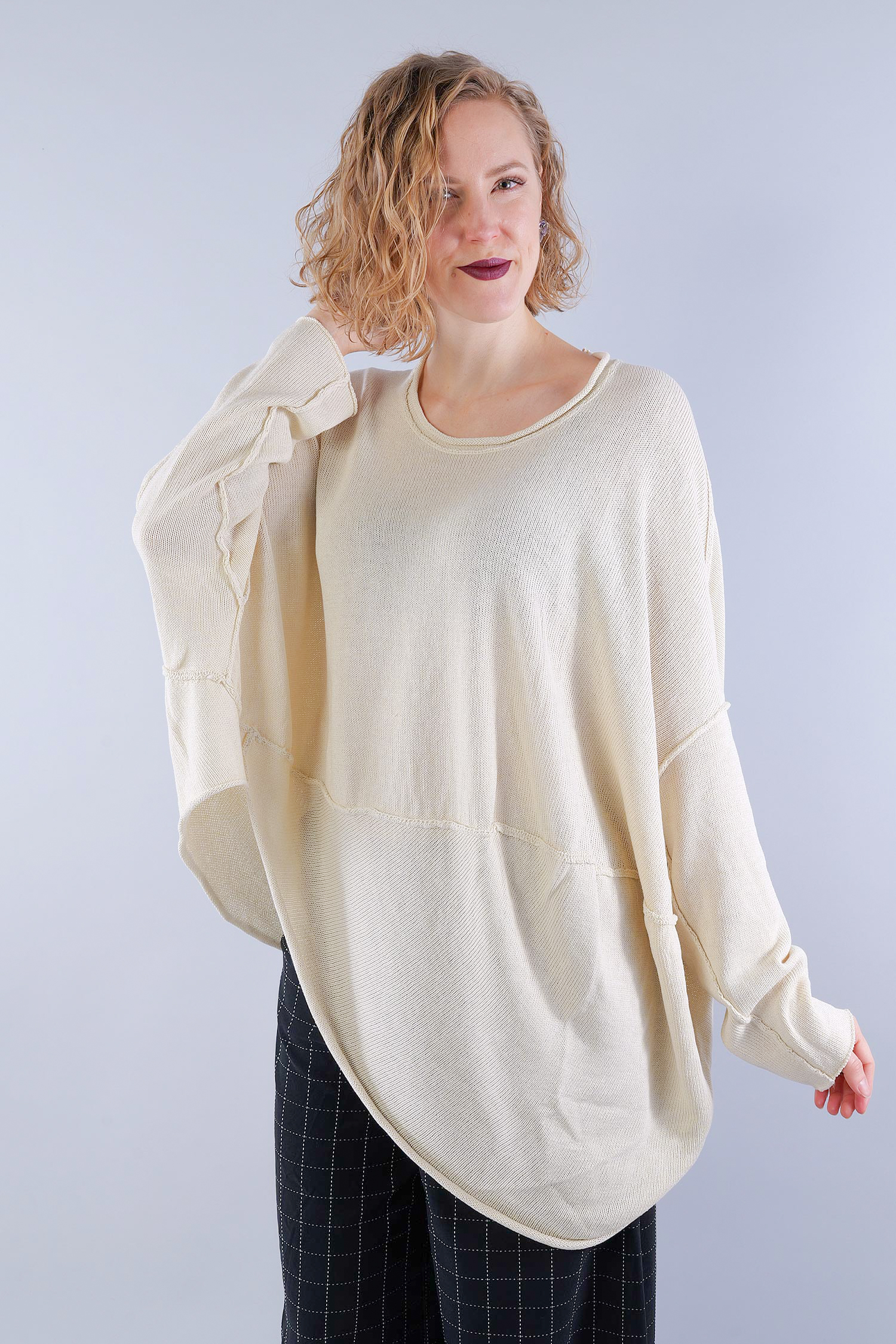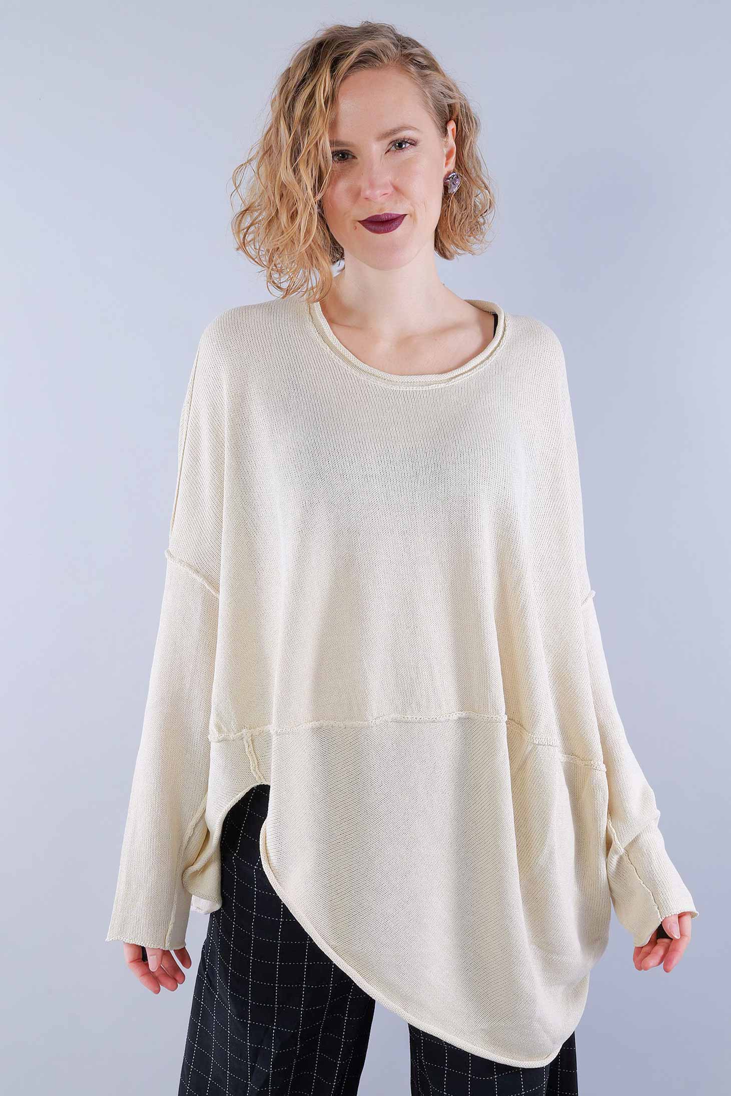 Strickpullover mit asymmetrischem Saum von Rundholz.