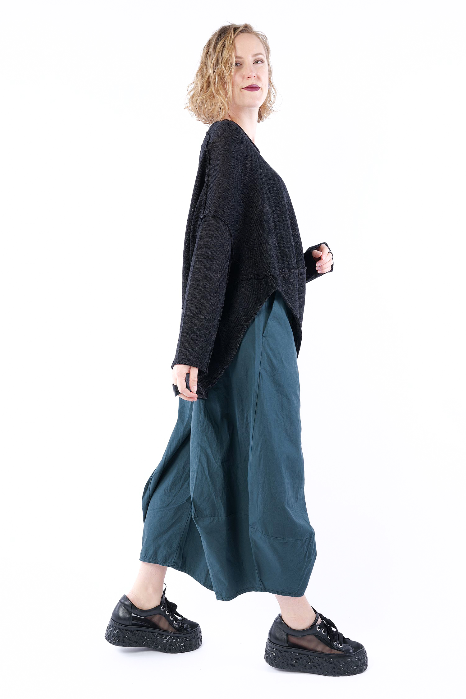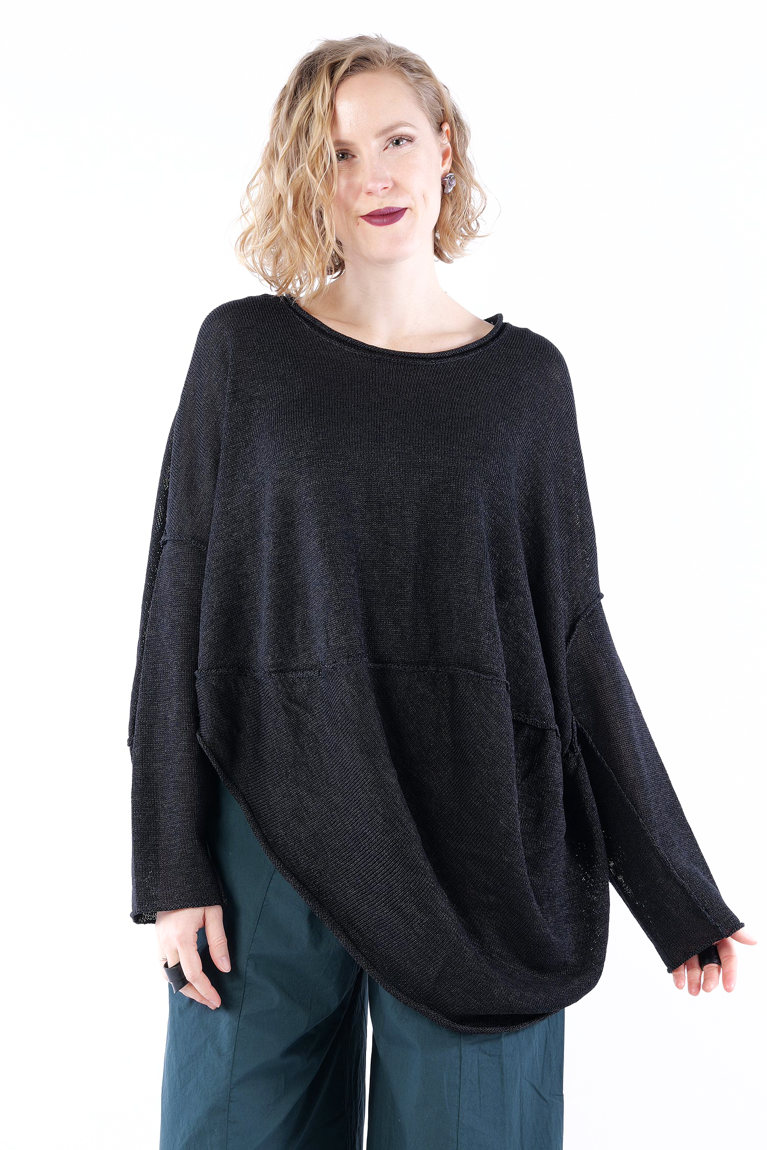 Strickpullover mit asymmetrischem Saum von Rundholz.