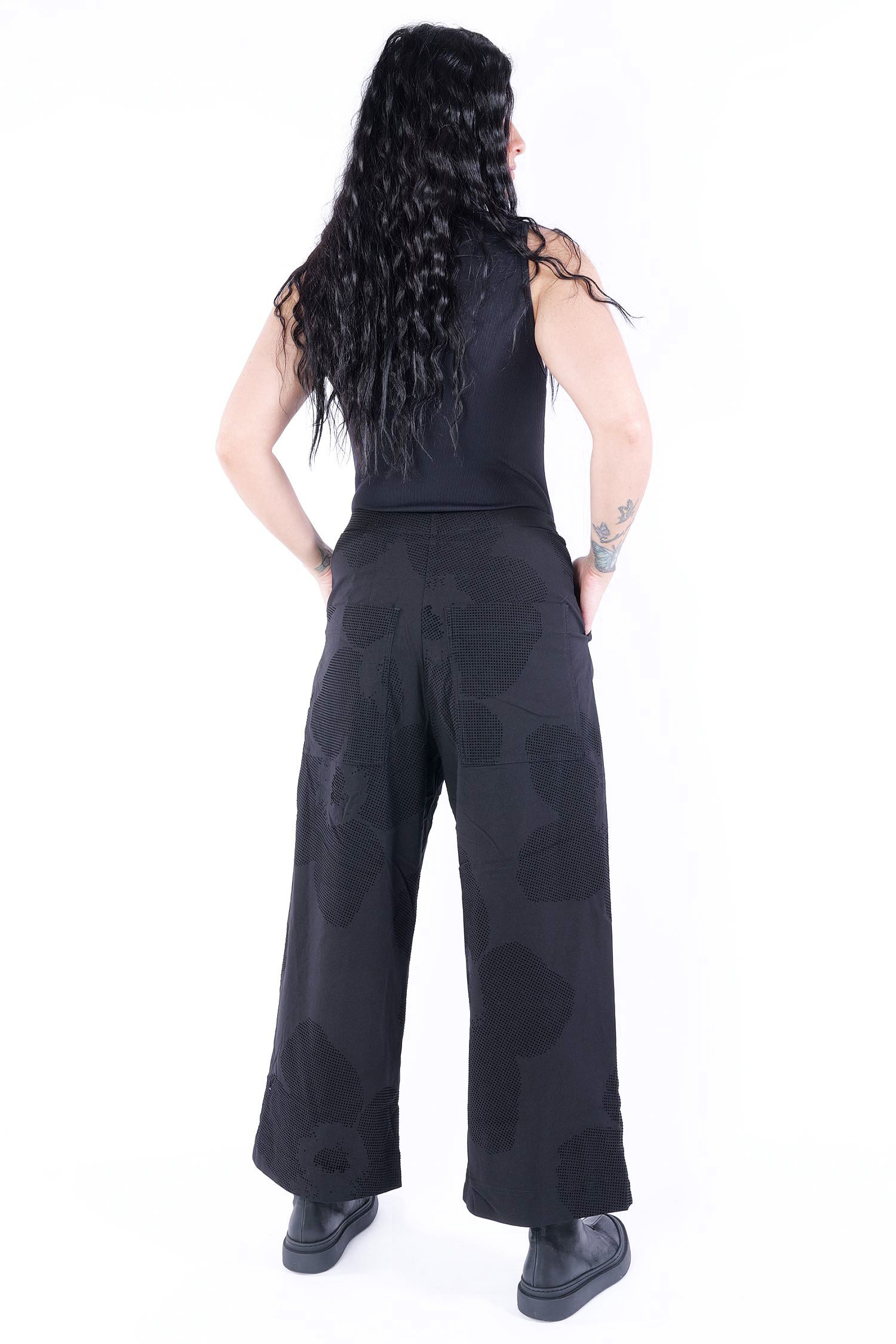 Black blackflock = Schwarz - Blumenmuster Flockprint
