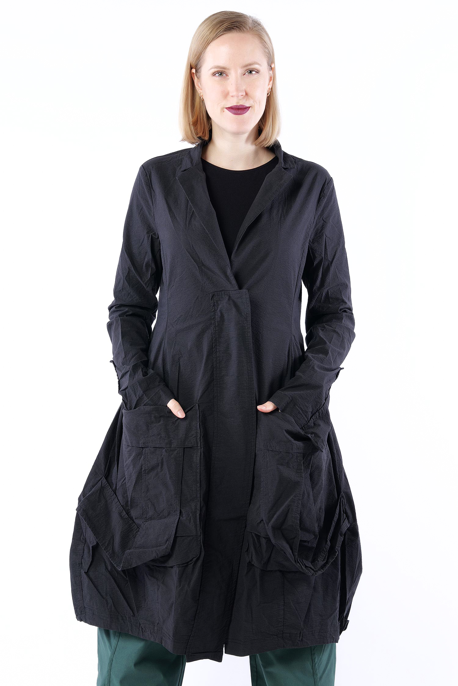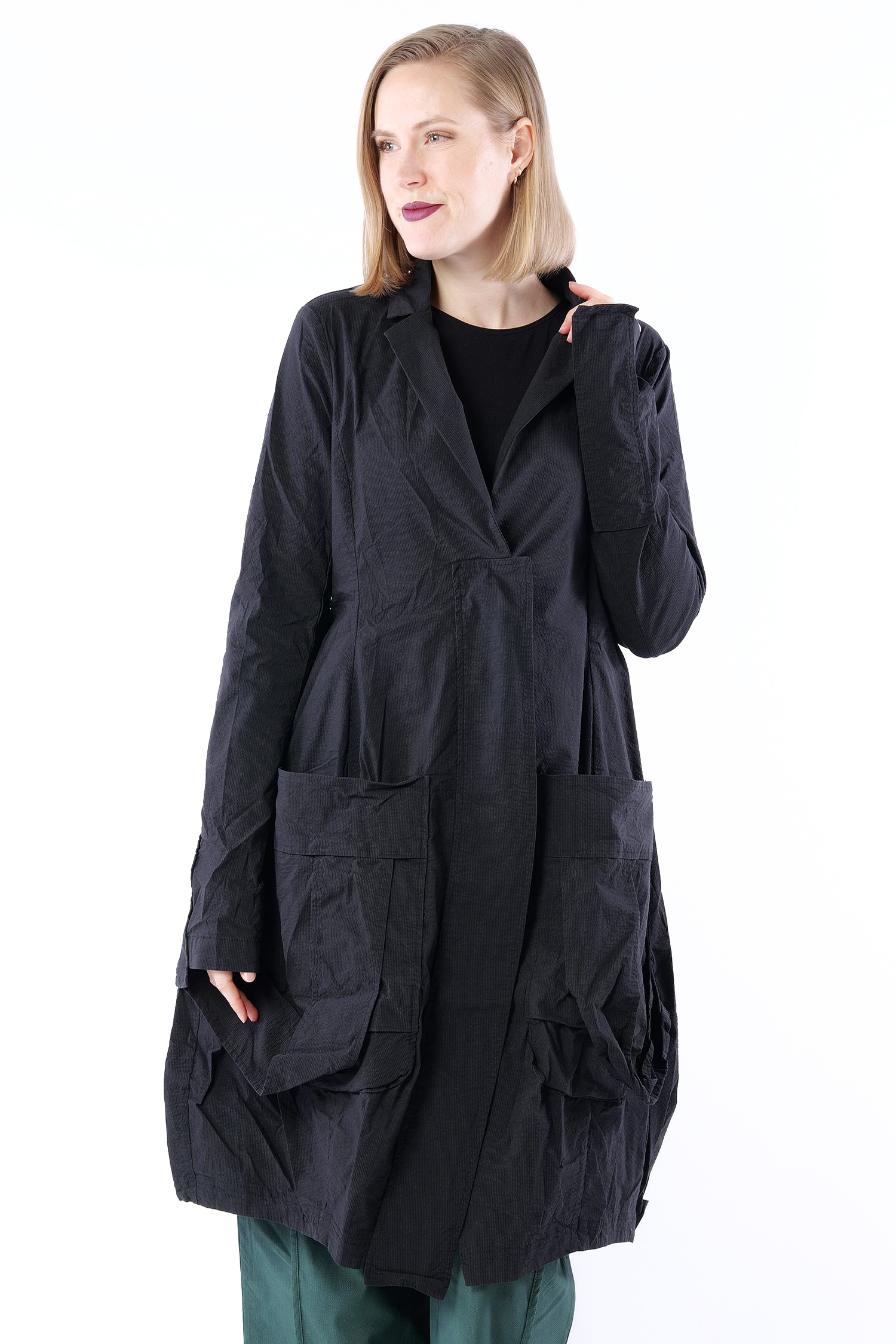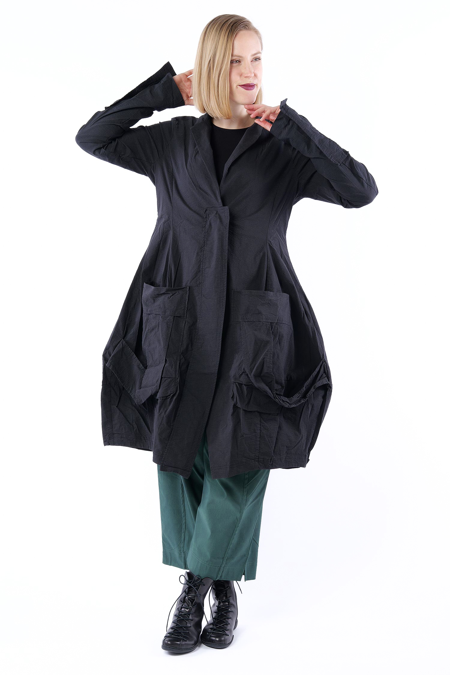 Superstretch Mantel mit tulpigem Schnitt von Rundholz.