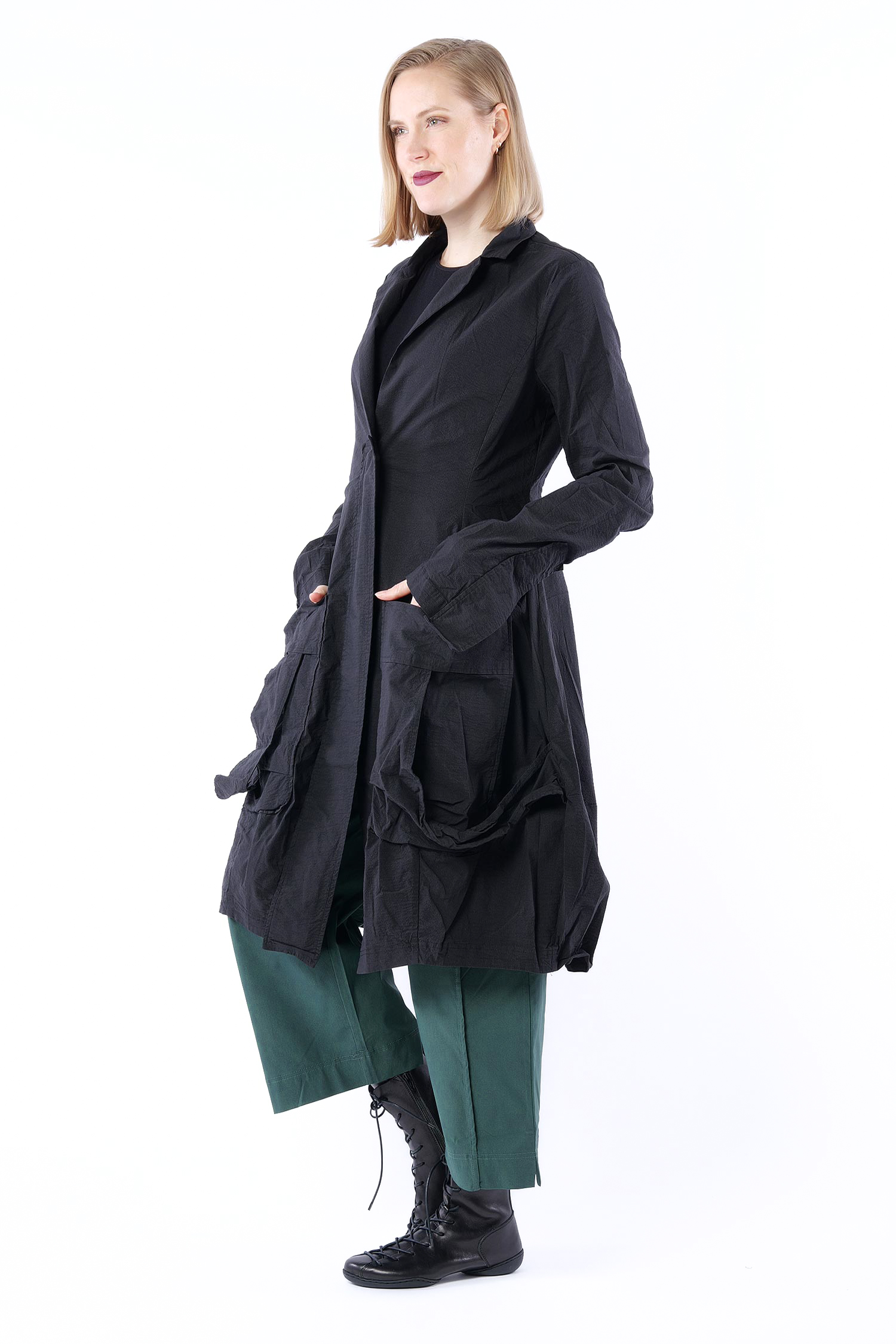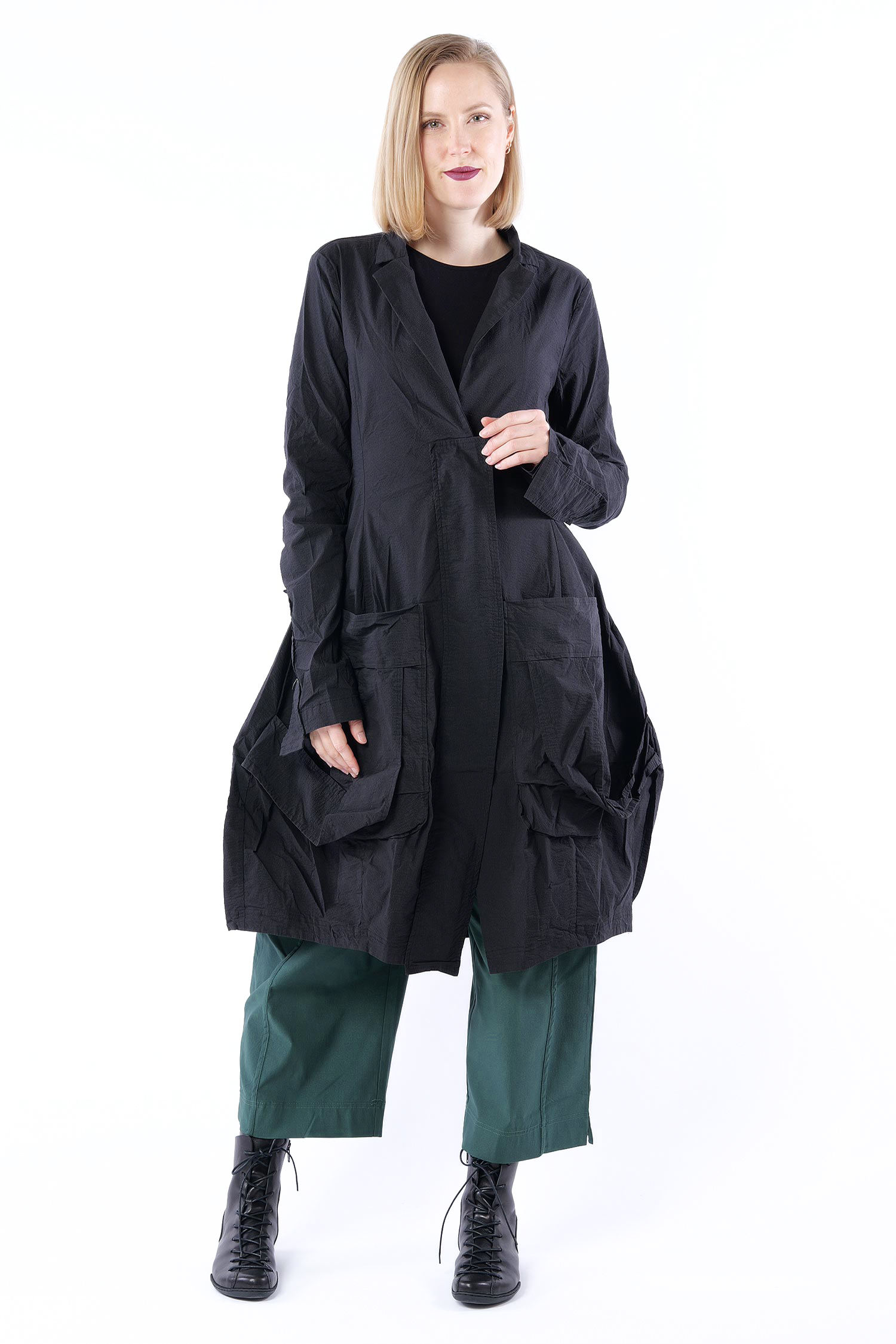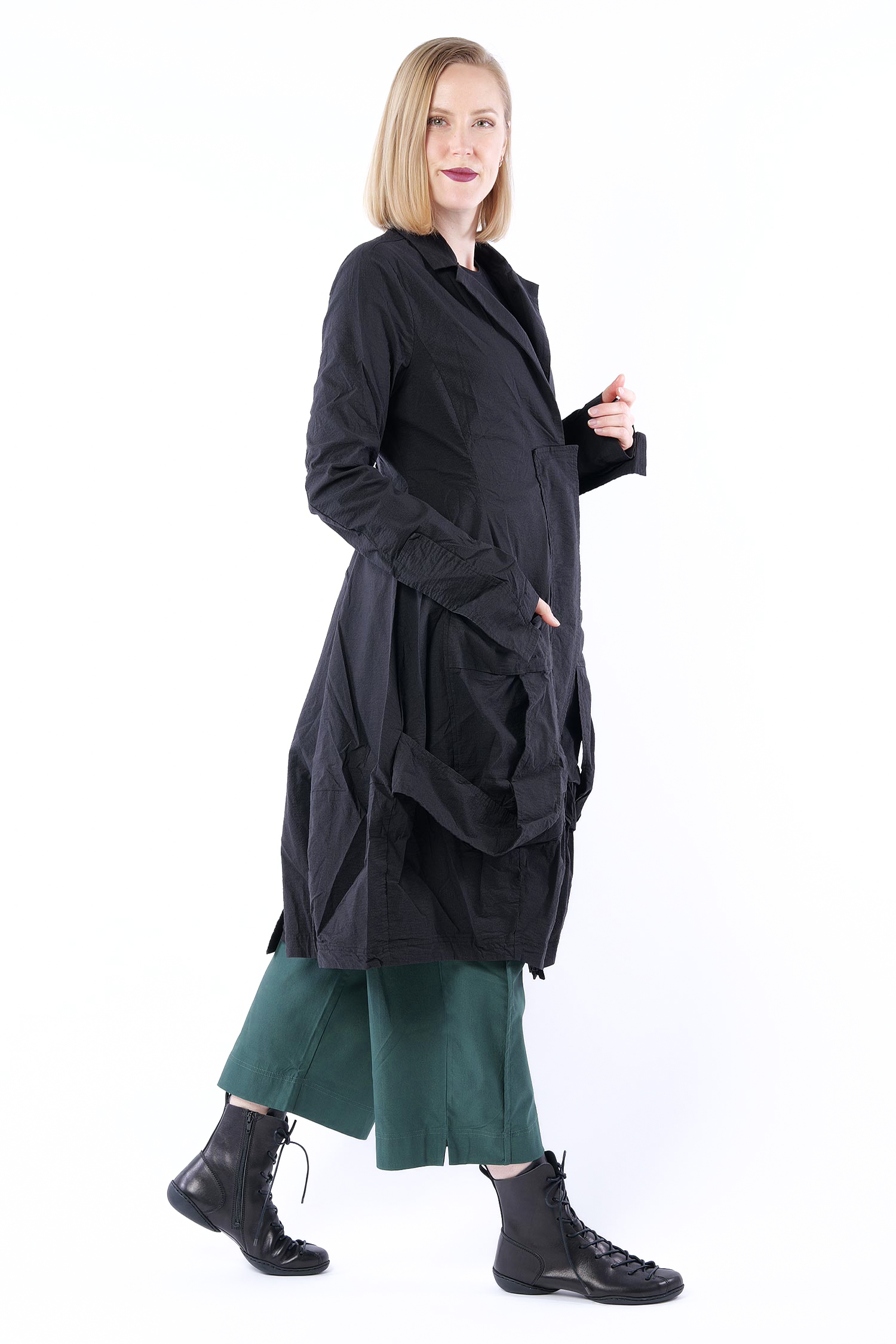 Superstretch Mantel mit tulpigem Schnitt von Rundholz.