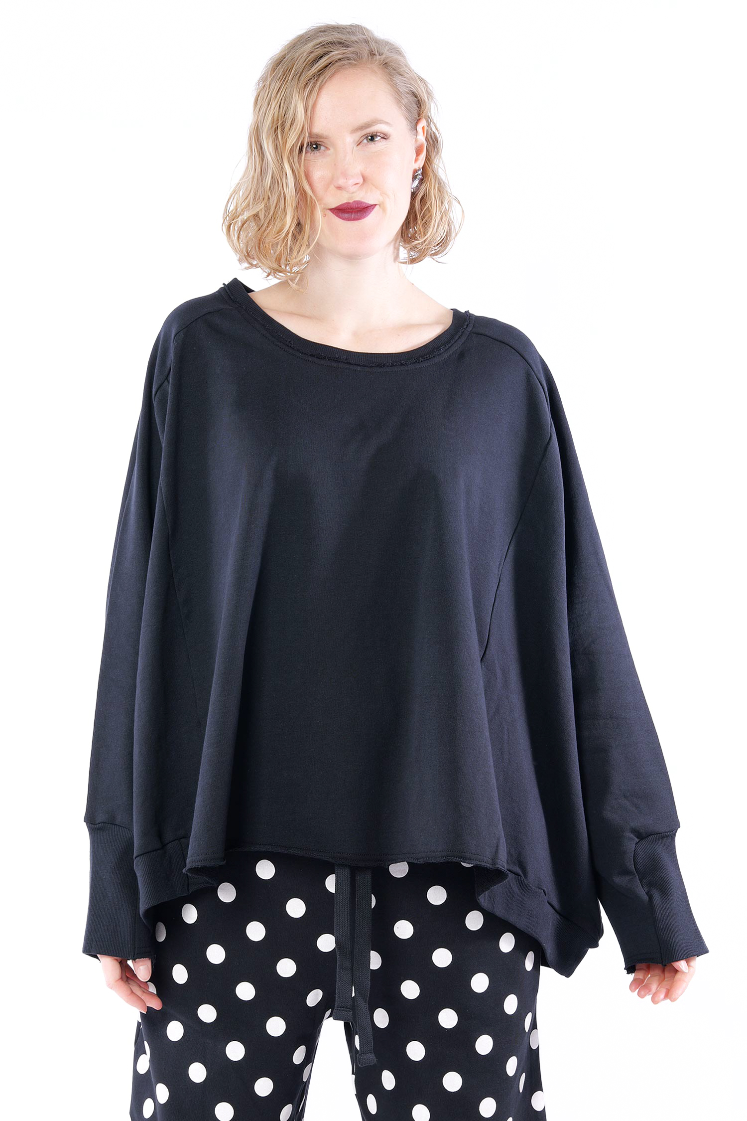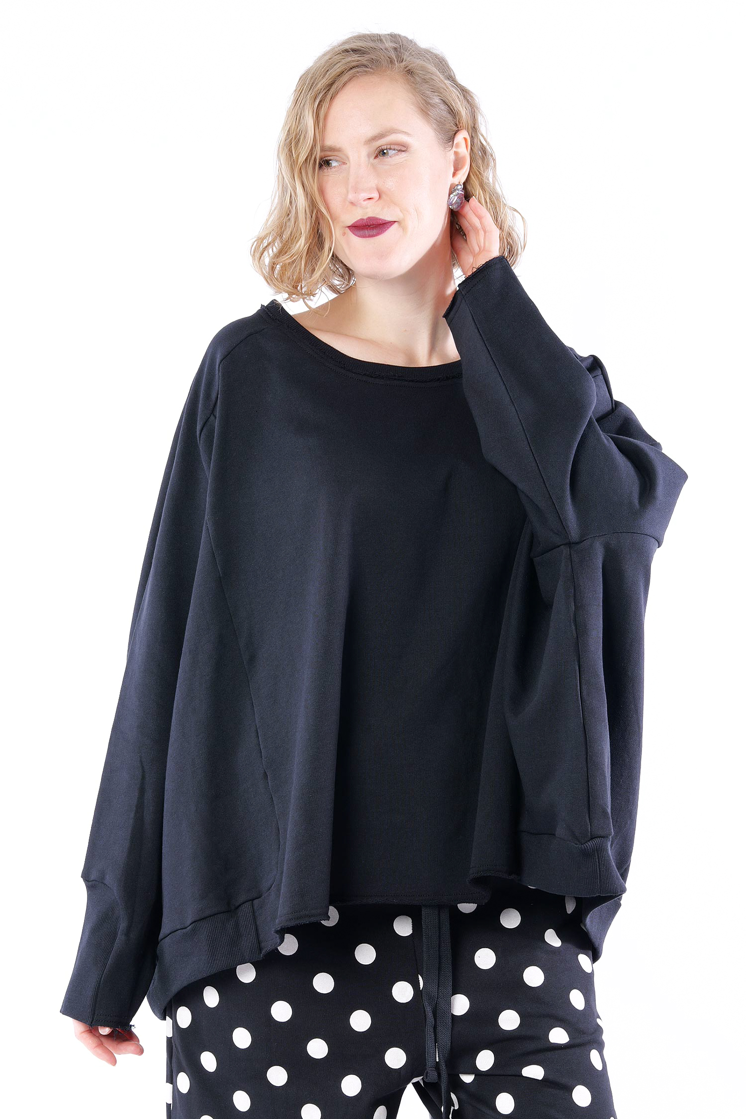Details: - Rippjerseydetails - Raglanärmel - Weit und kastig geschnitten - Lange Ärmel - Rundhalsausschnitt - Sweatmaterial - Hinten etwas länger - Plus am Rücken