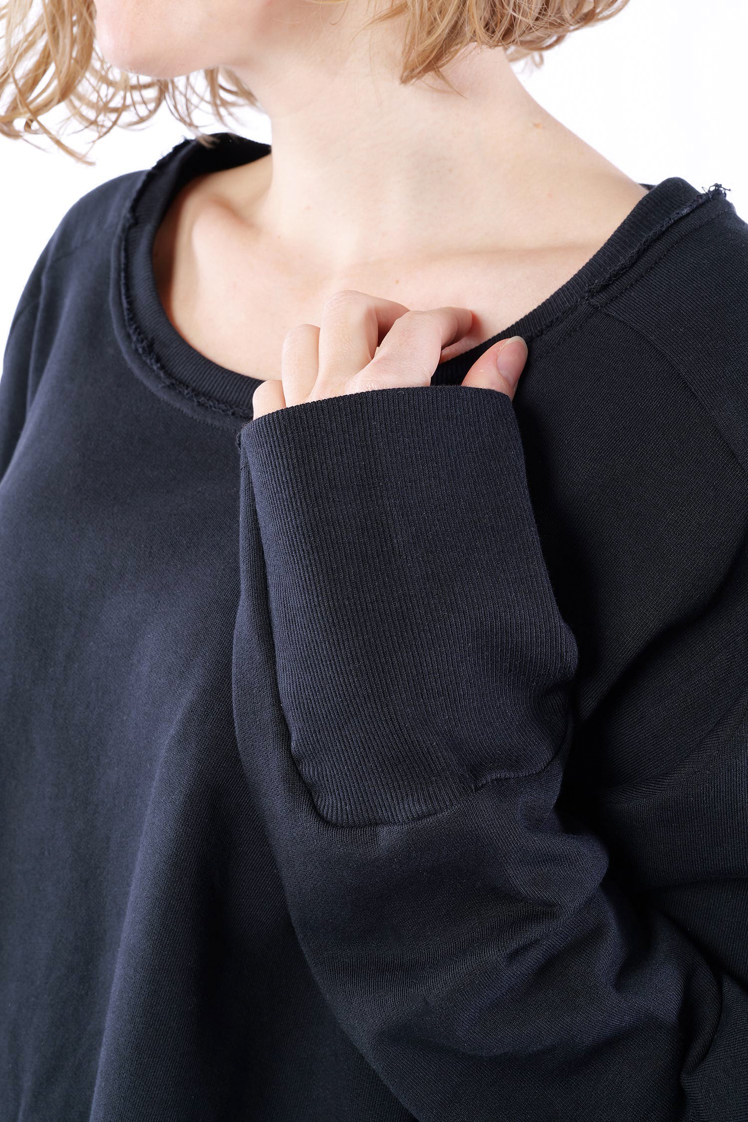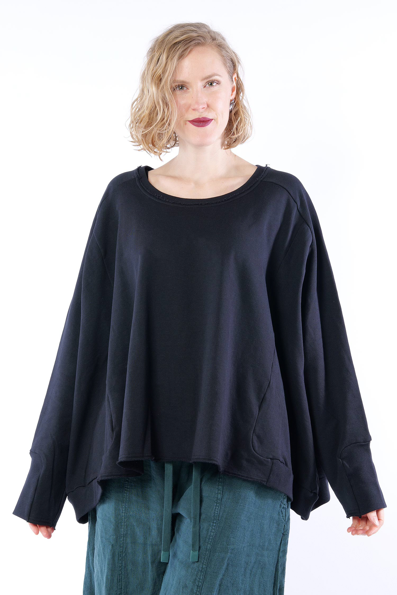 Details: - Rippjerseydetails - Raglanärmel - Weit und kastig geschnitten - Lange Ärmel - Rundhalsausschnitt - Sweatmaterial - Hinten etwas länger - Plus am Rücken