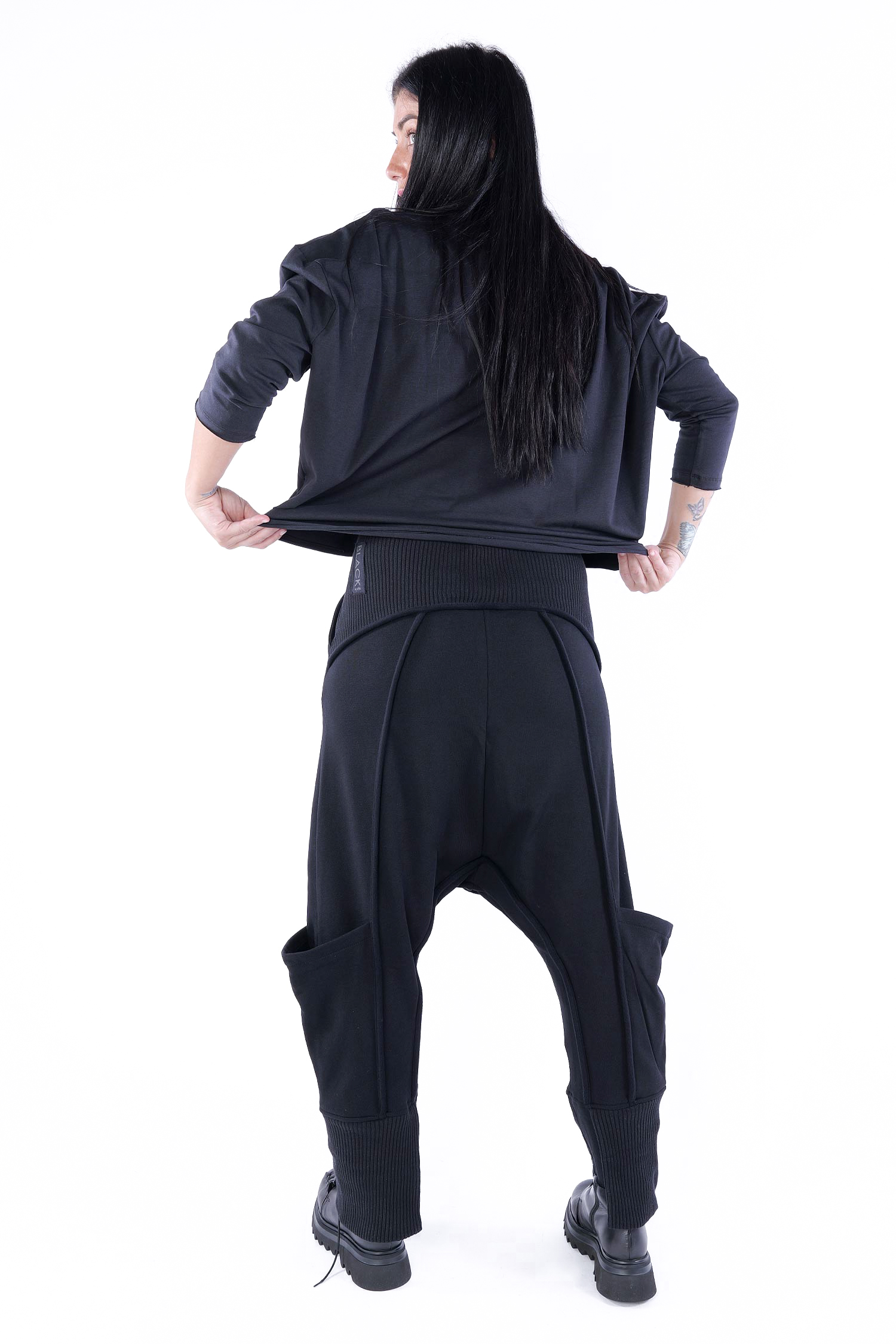 Größe 36: Bund ungedehnt = 39 cm, gedehnt = 48 cm / Schritthöhe = 59 cm / Hüfte = 49 cm / Länge = 104 cm