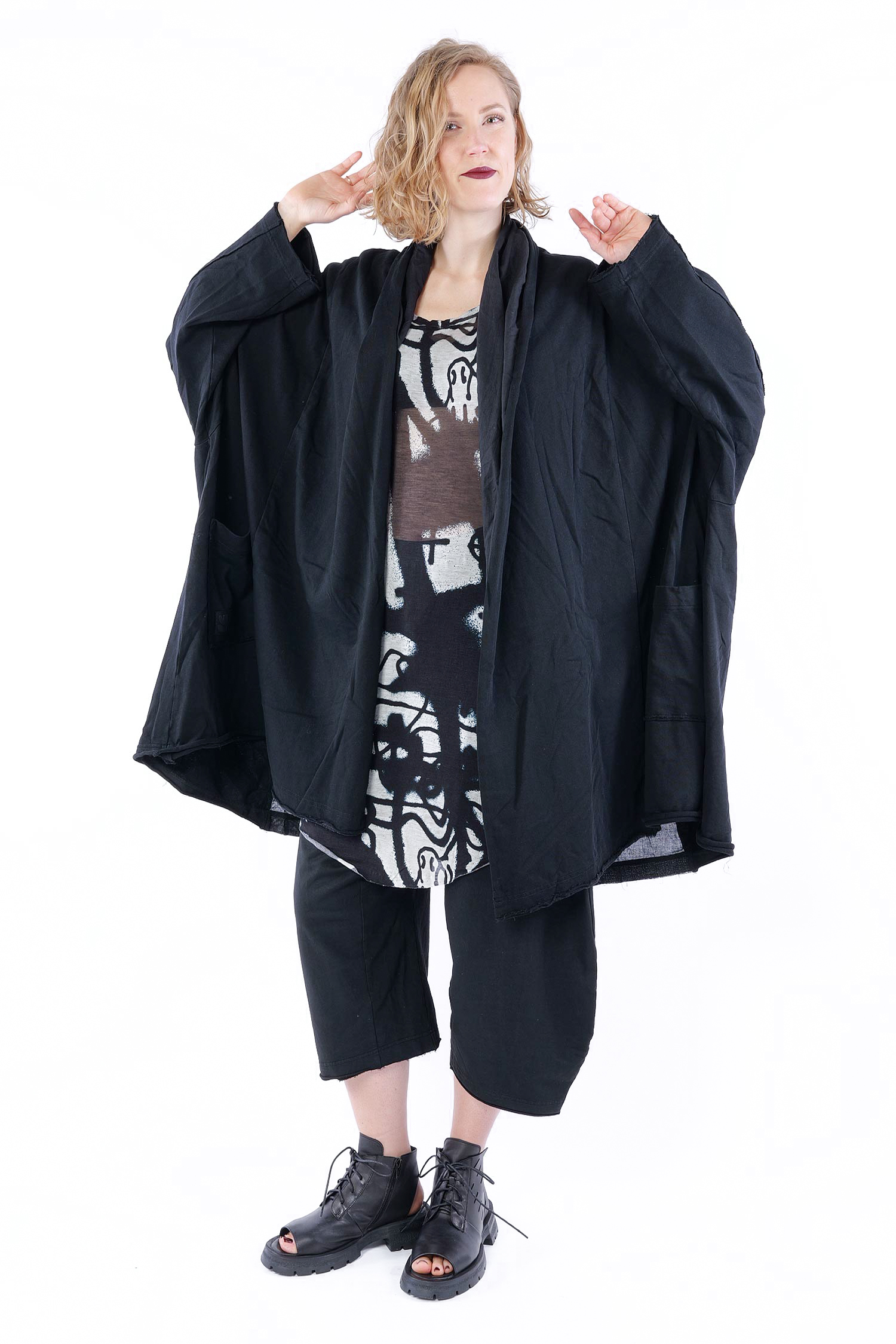 Oversize Sweatmantel mit Rüschung am Rücken von Rundholz Black Label.