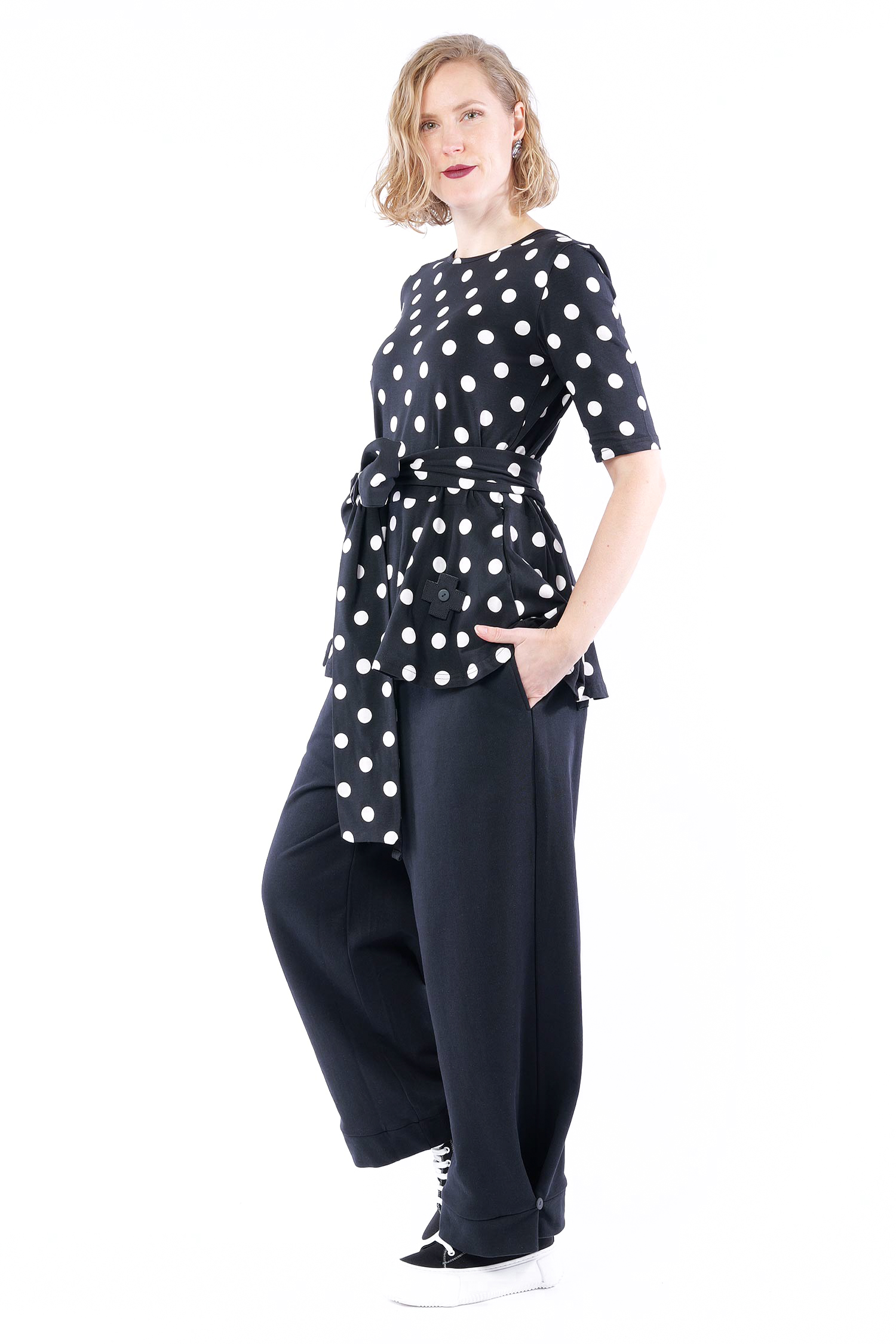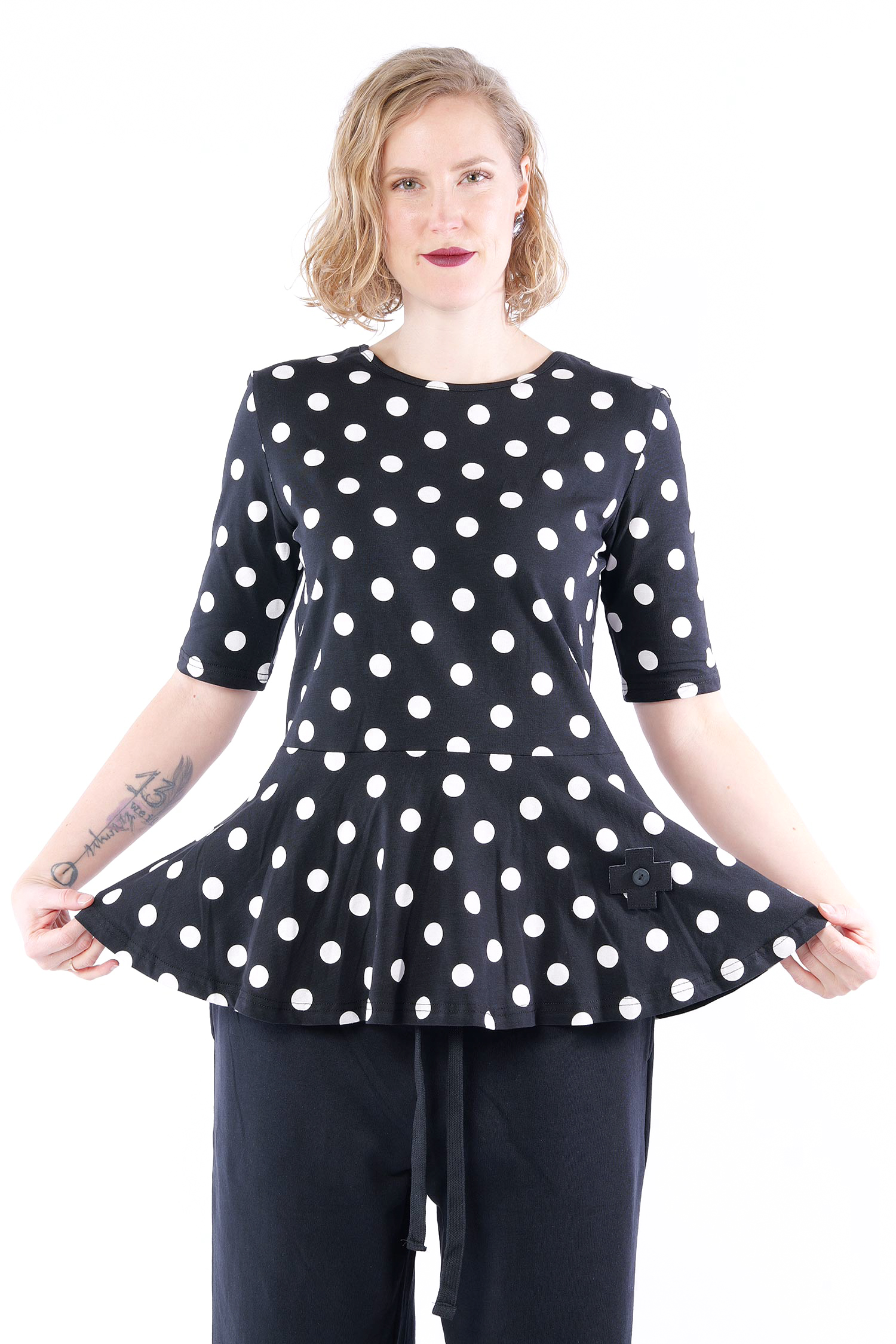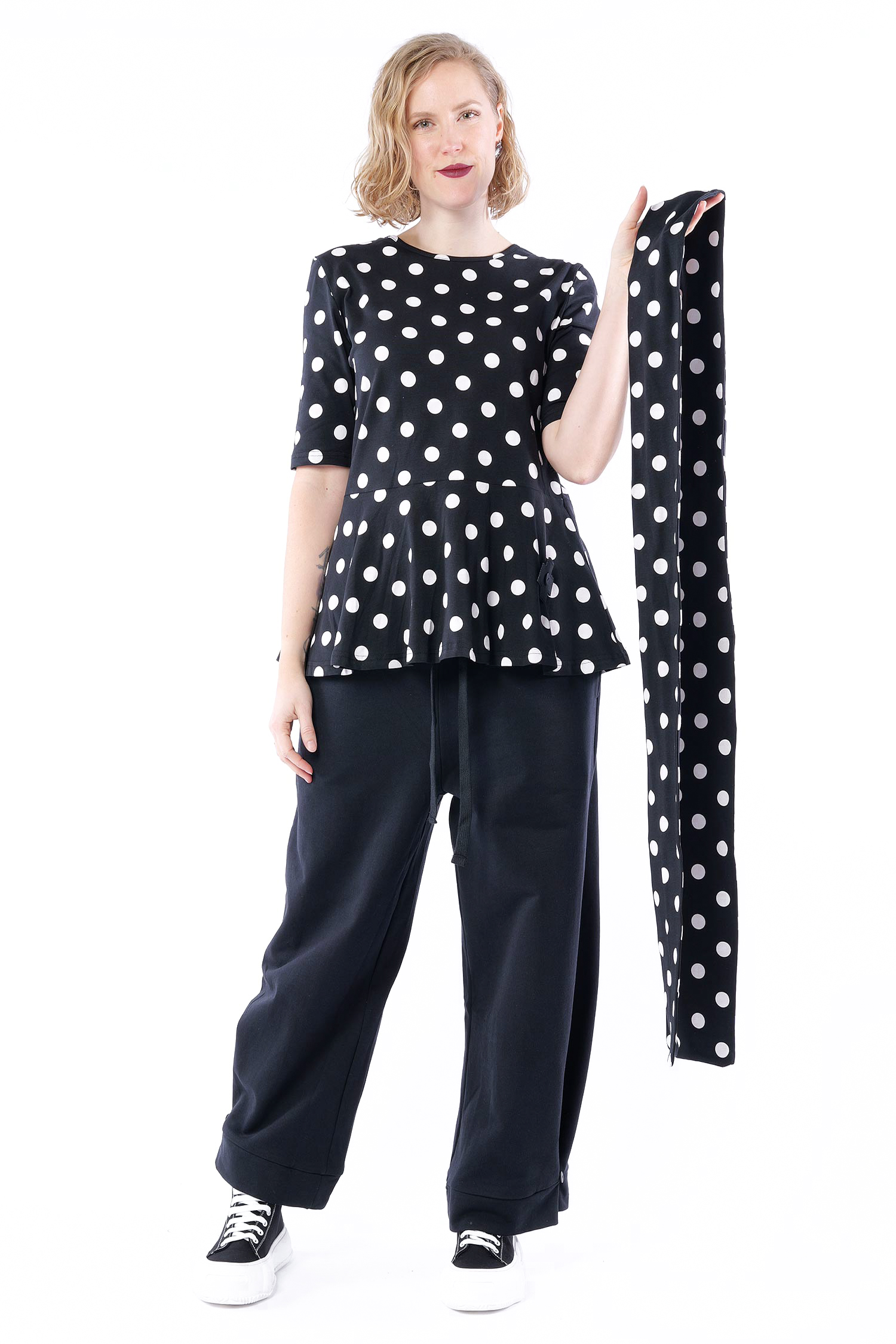 T-Shirt mit Gürtel - Black white dots - 5076