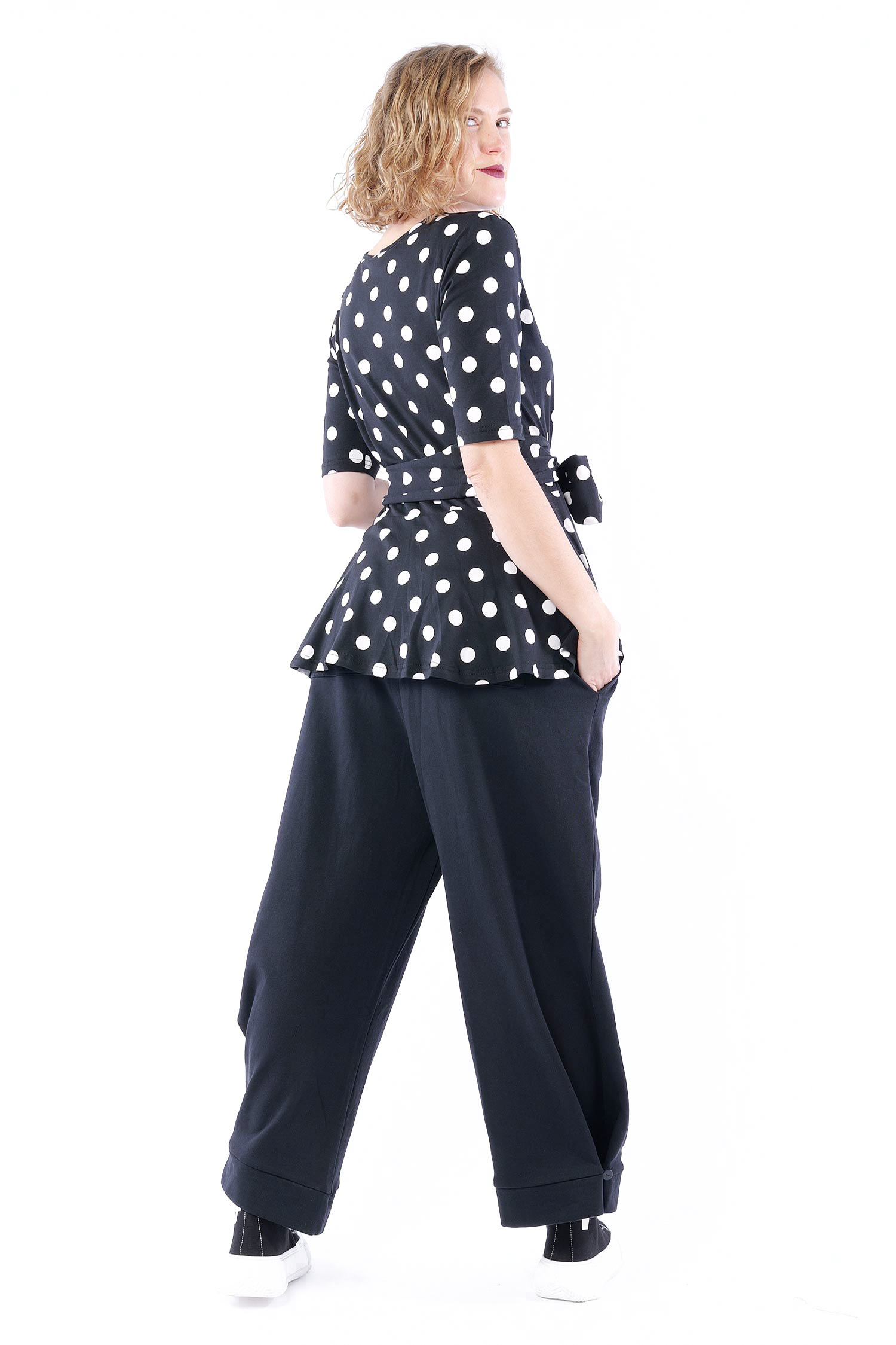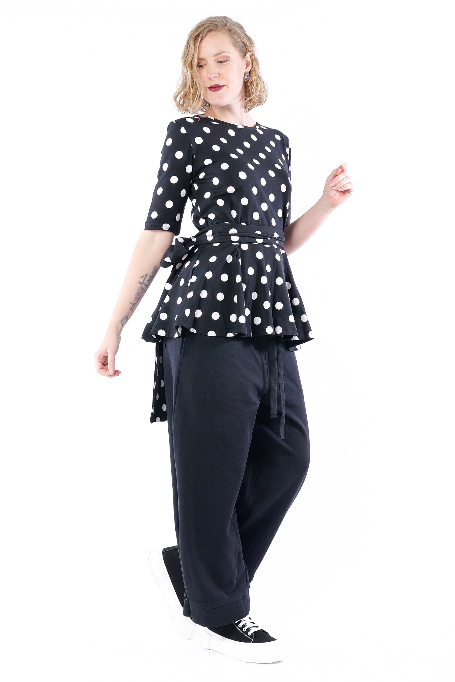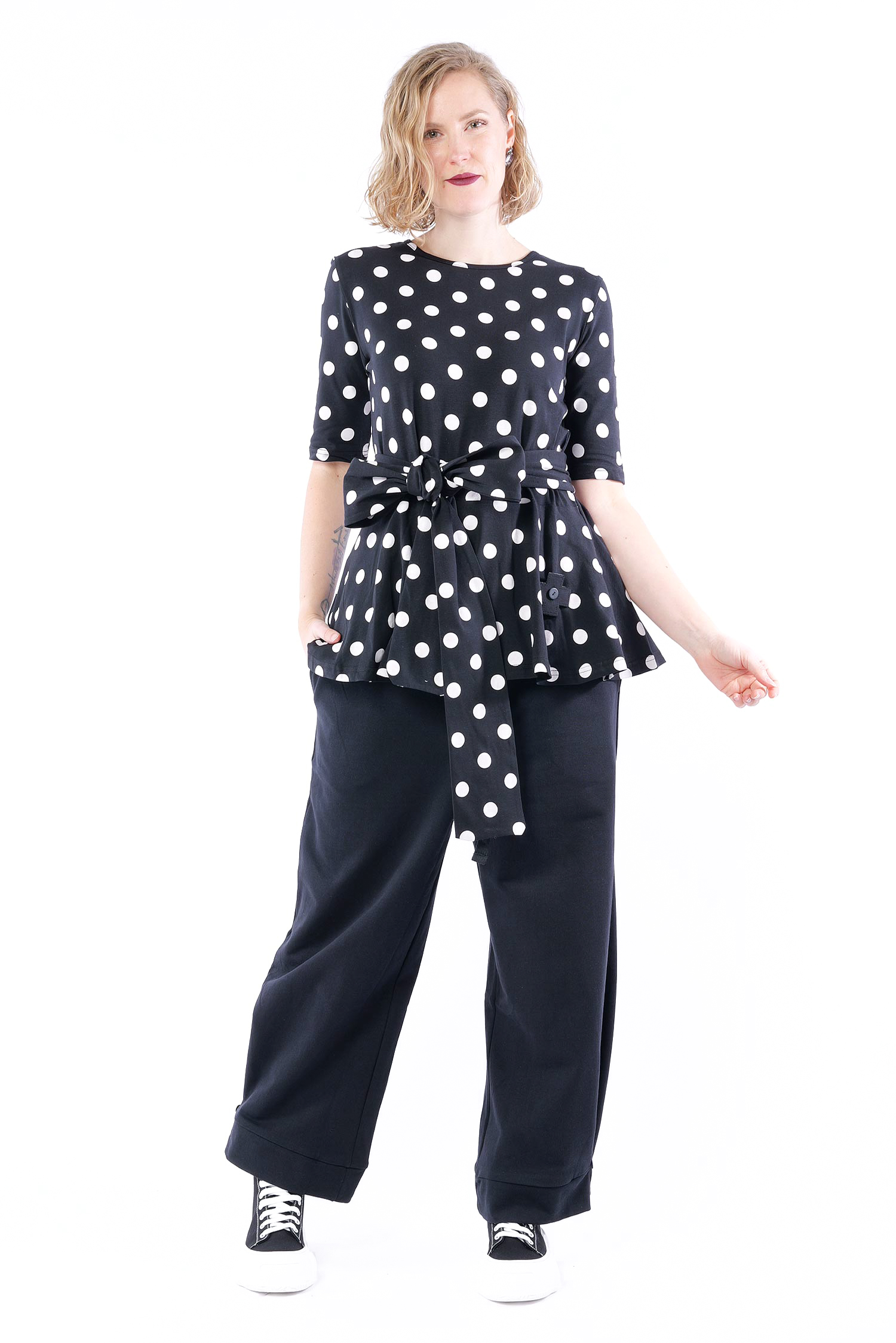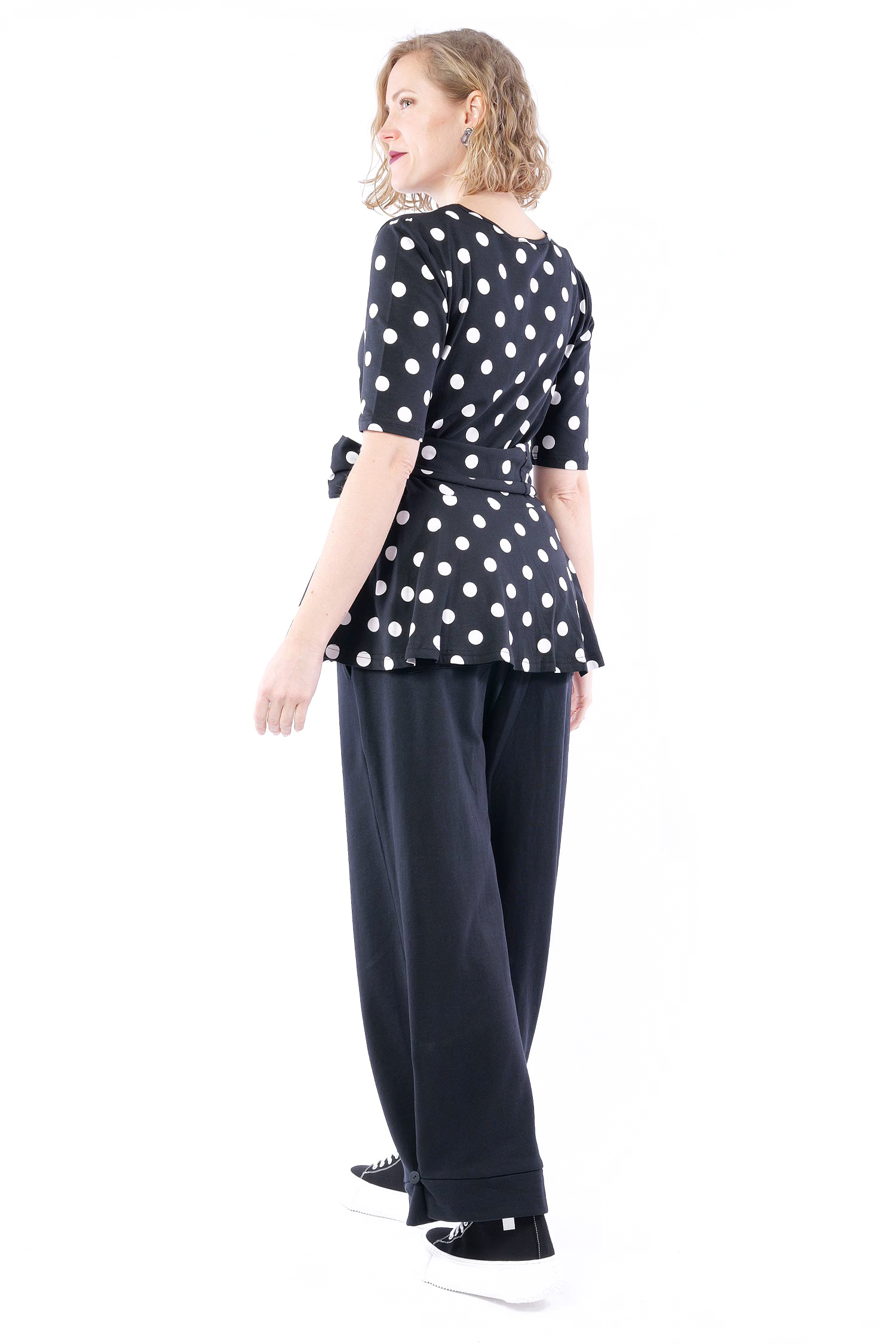 T-Shirt mit Gürtel - Black white dots - 5076
