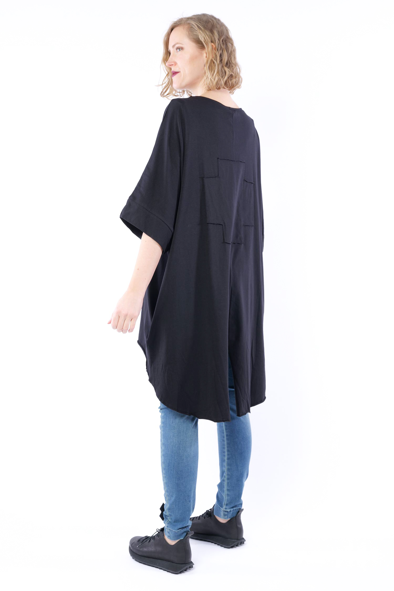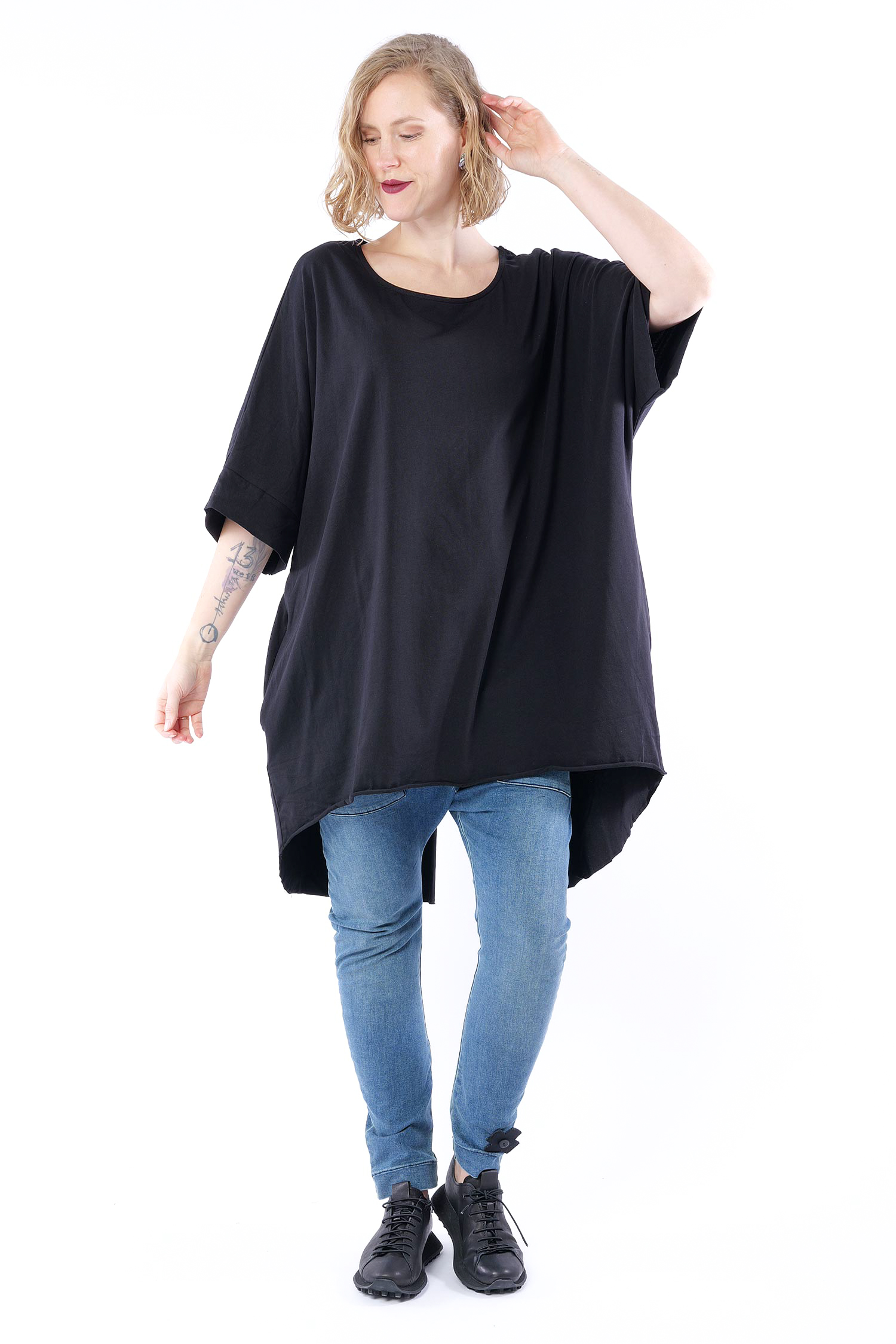 T-Shirt mit Schwalbenschwanz - Schwarz Uni - 5079