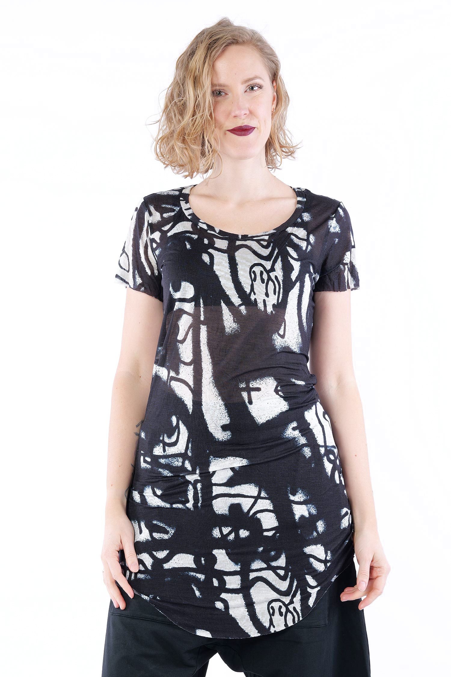 T-Shirt mit Seide - Black print - 1261620502
