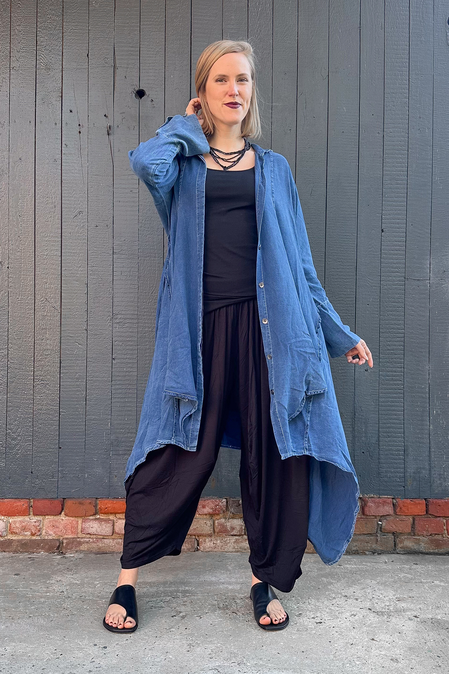 Größe 1: Bund ungedehnt = 34 cm, gedehnt = 70 cm / Schritttiefe = 40 cm / Hüfte = 67 cm / Länge = 98 cm