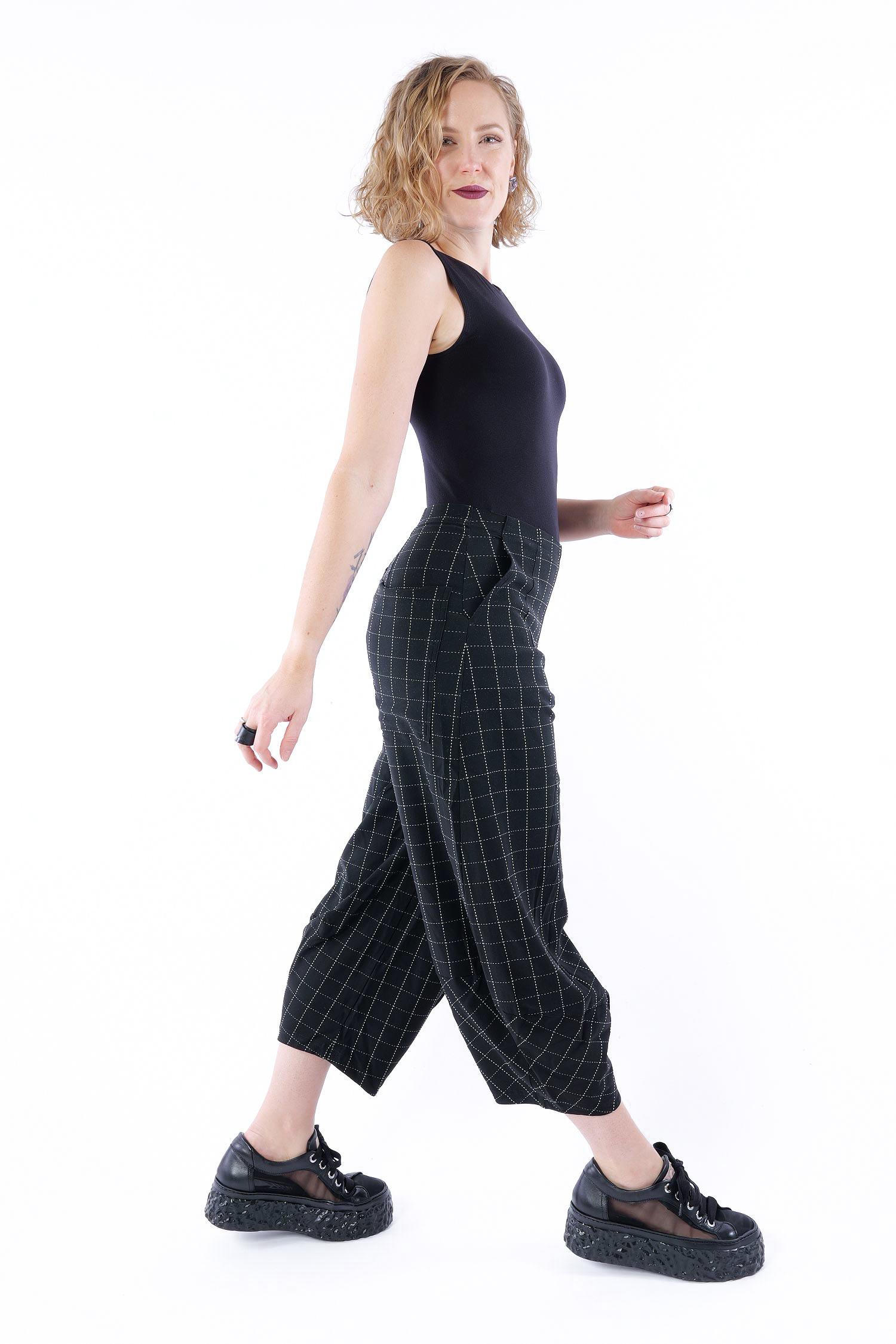 Black check = Schwarz mit weißen Nähten