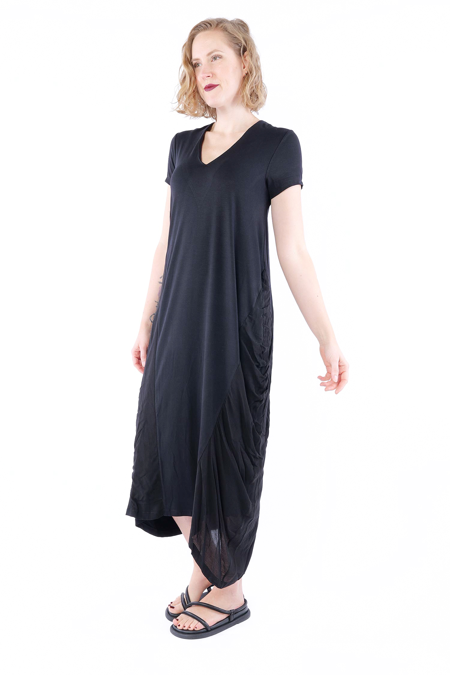 - Seitlich Viskose in Rüschung aufgesetzt