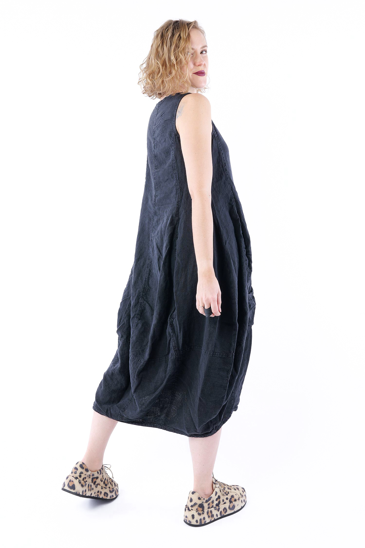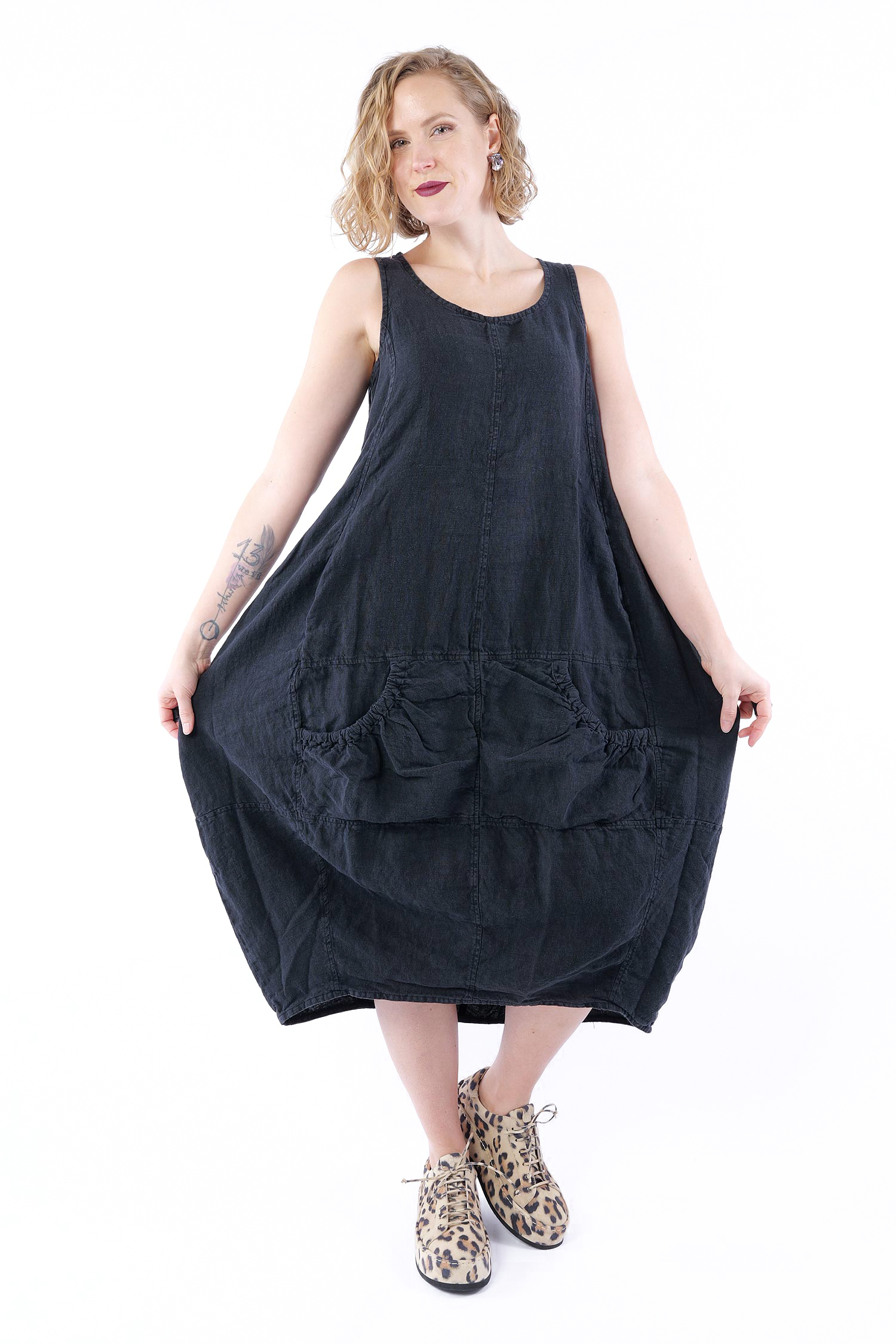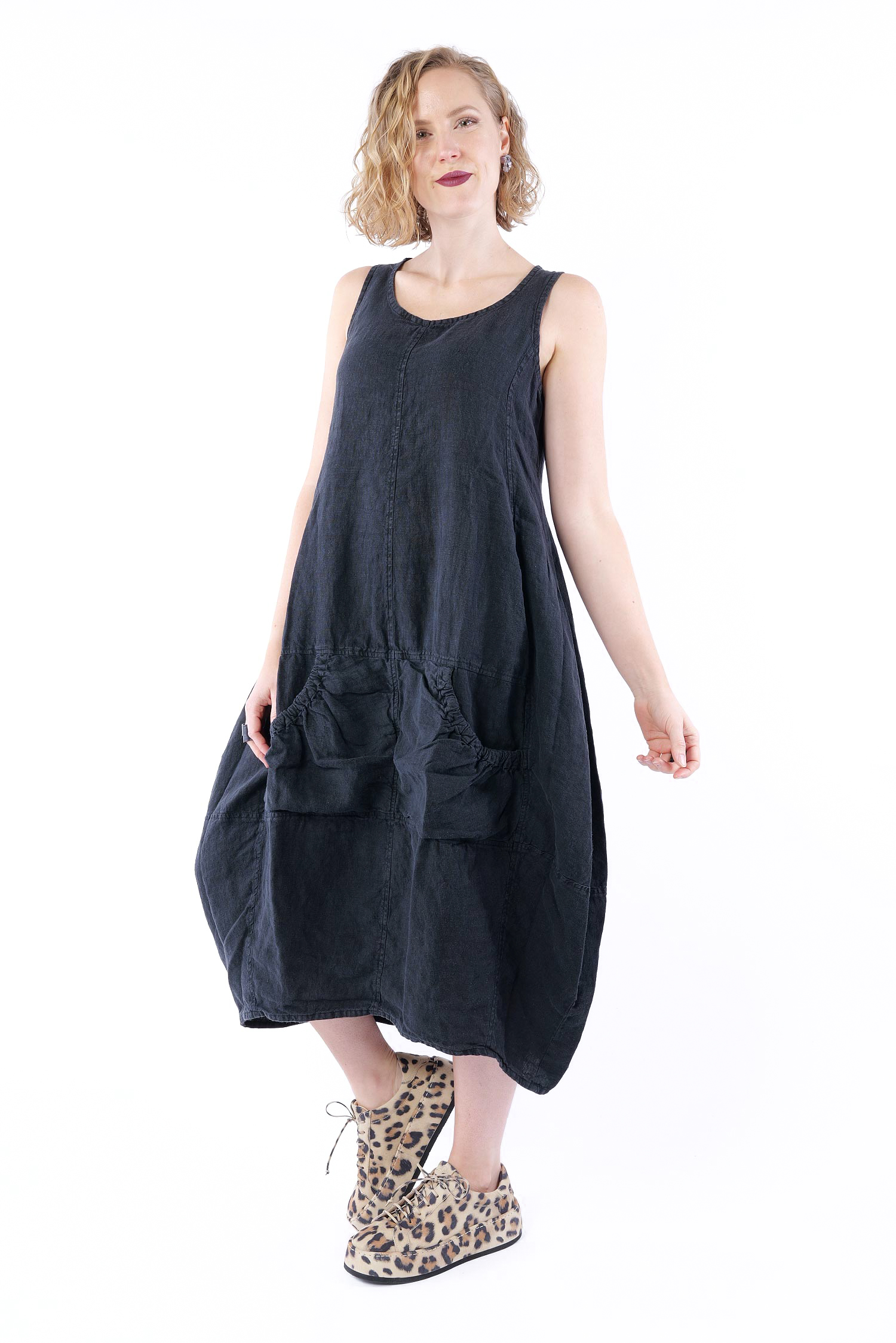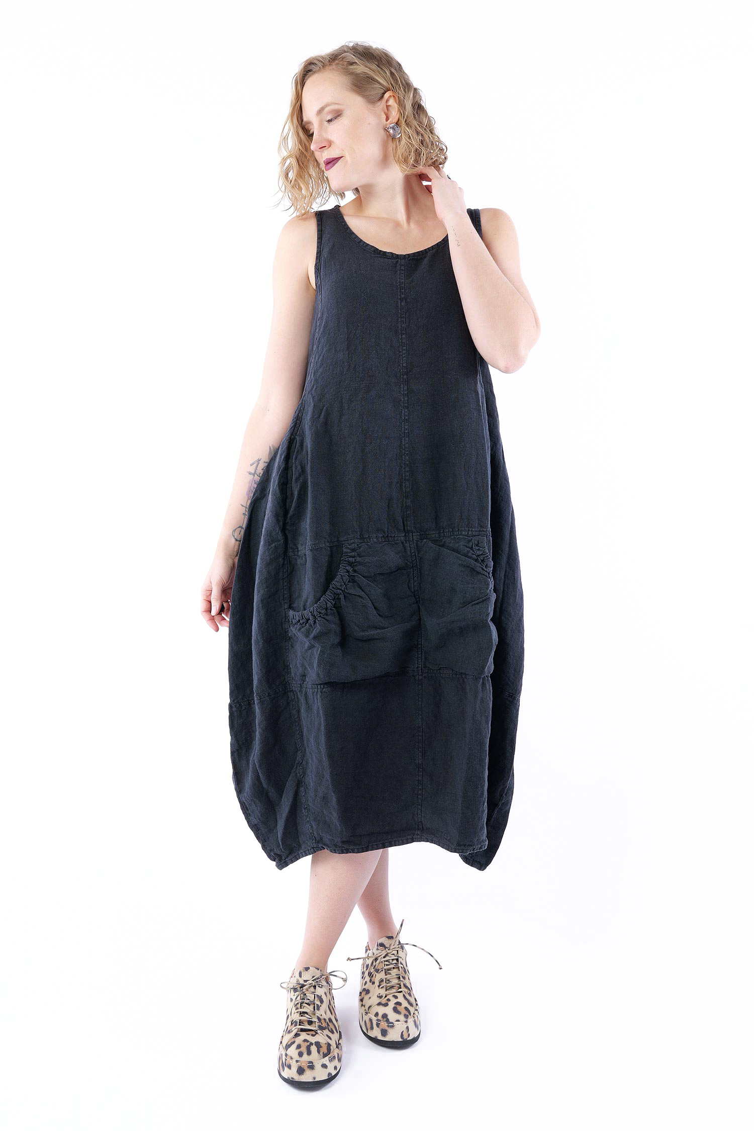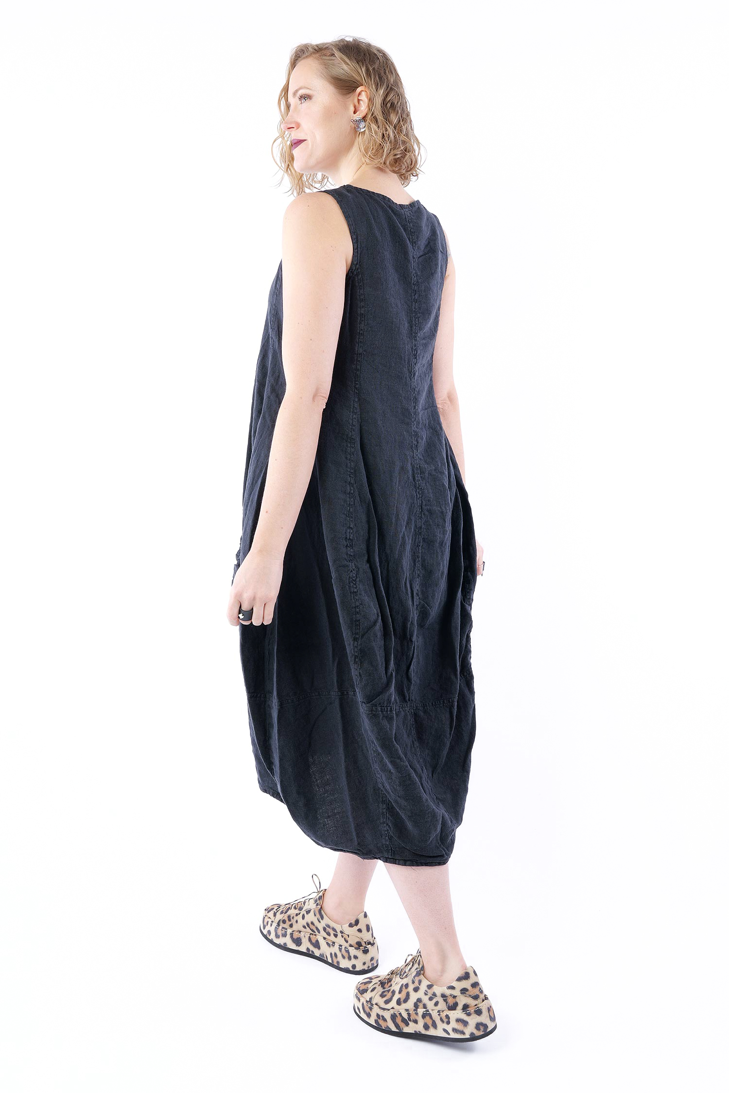 Tulpiges Leinenkleid - Schwarz - 1263540903