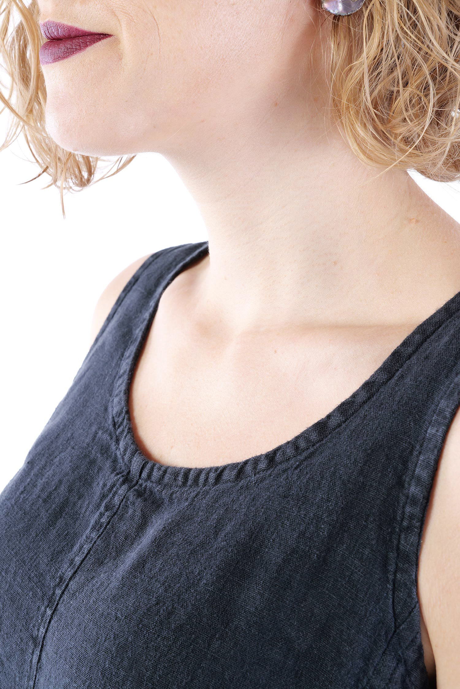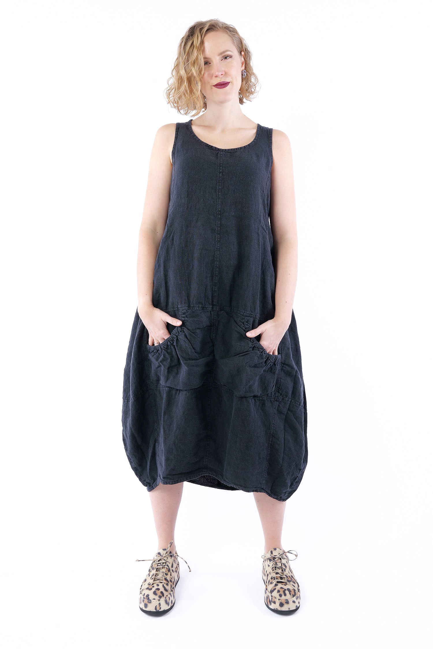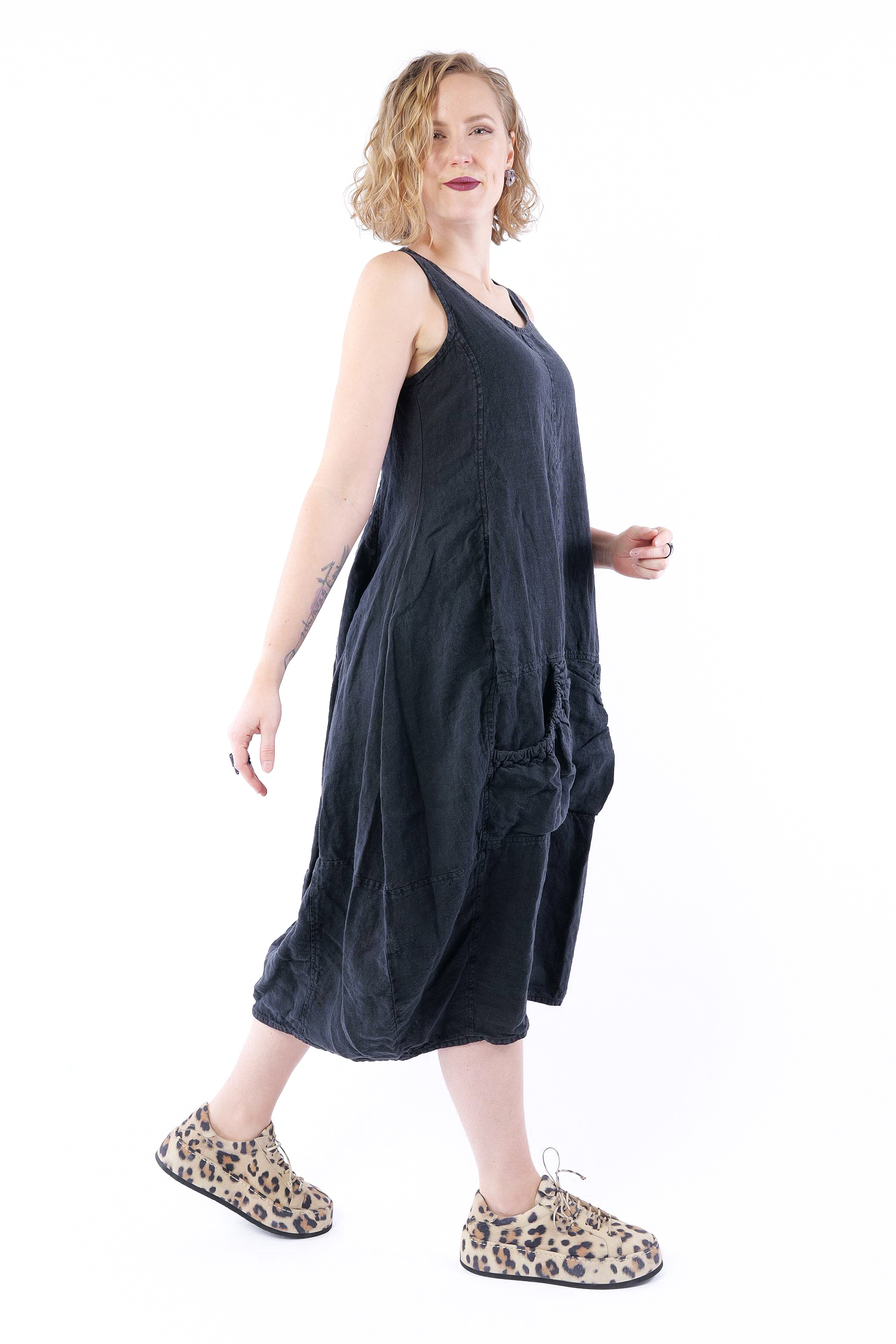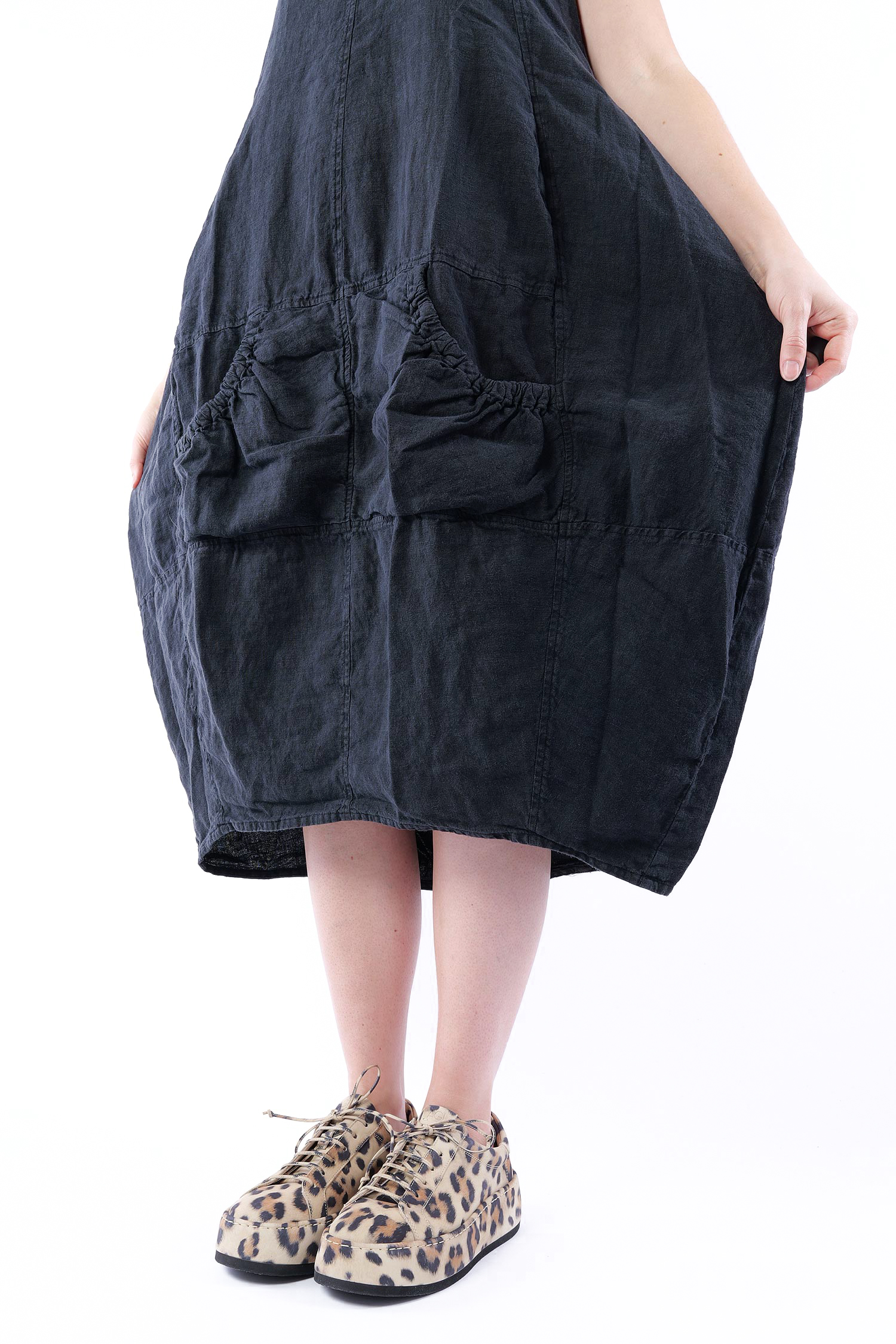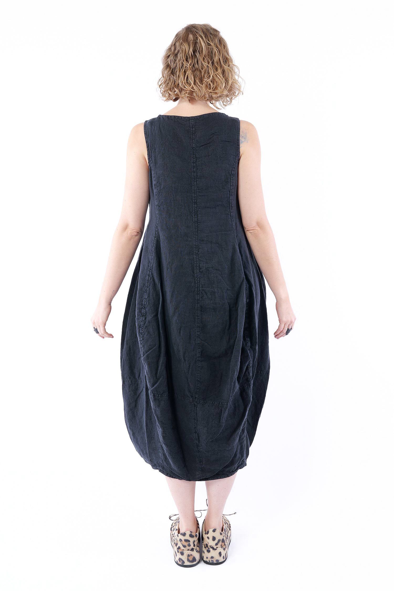 Tulpiges Leinenkleid - Schwarz - 1263540903