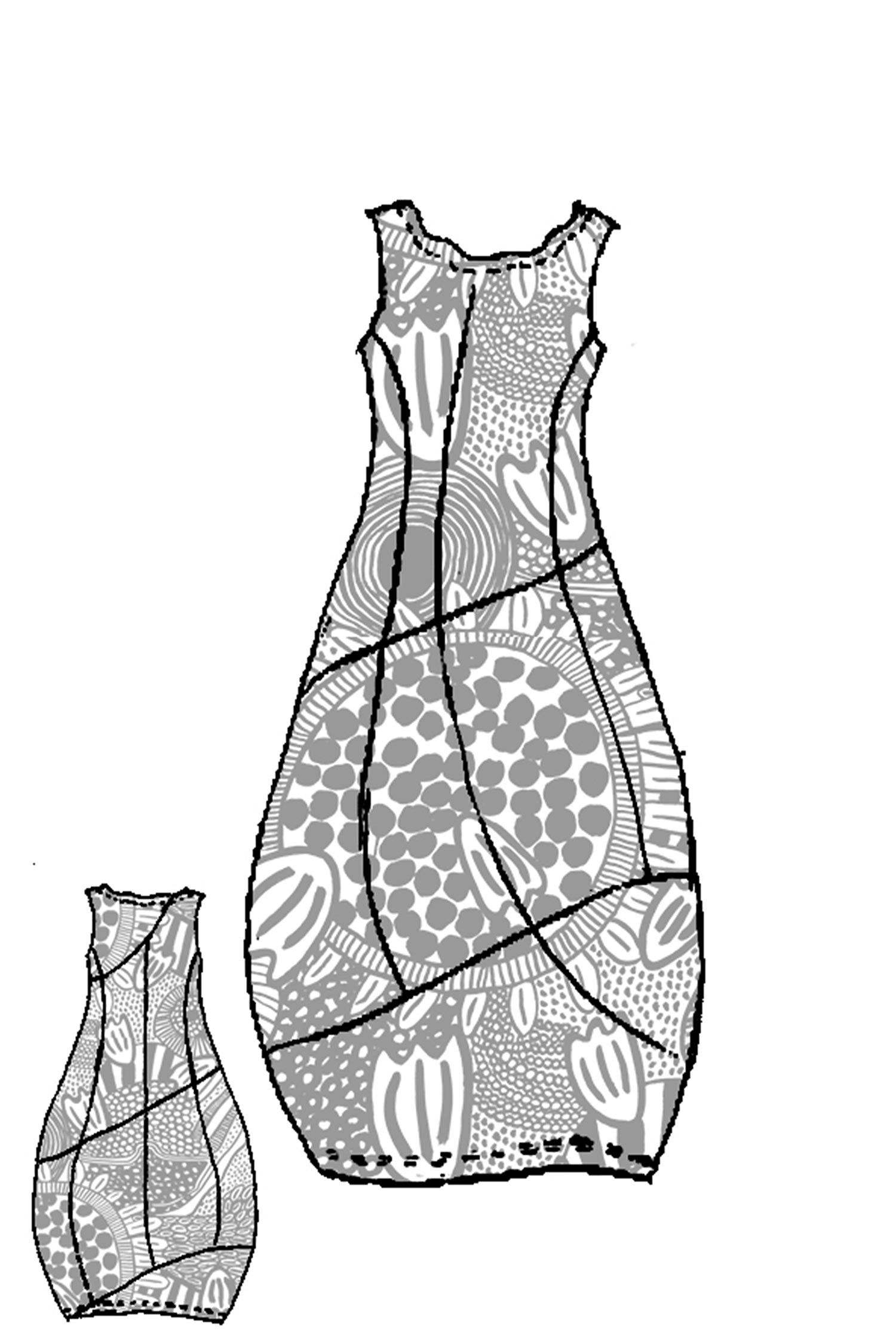 Größe XL: Brust = 57 cm / Taille = 54 cm / Länge = 121 cm