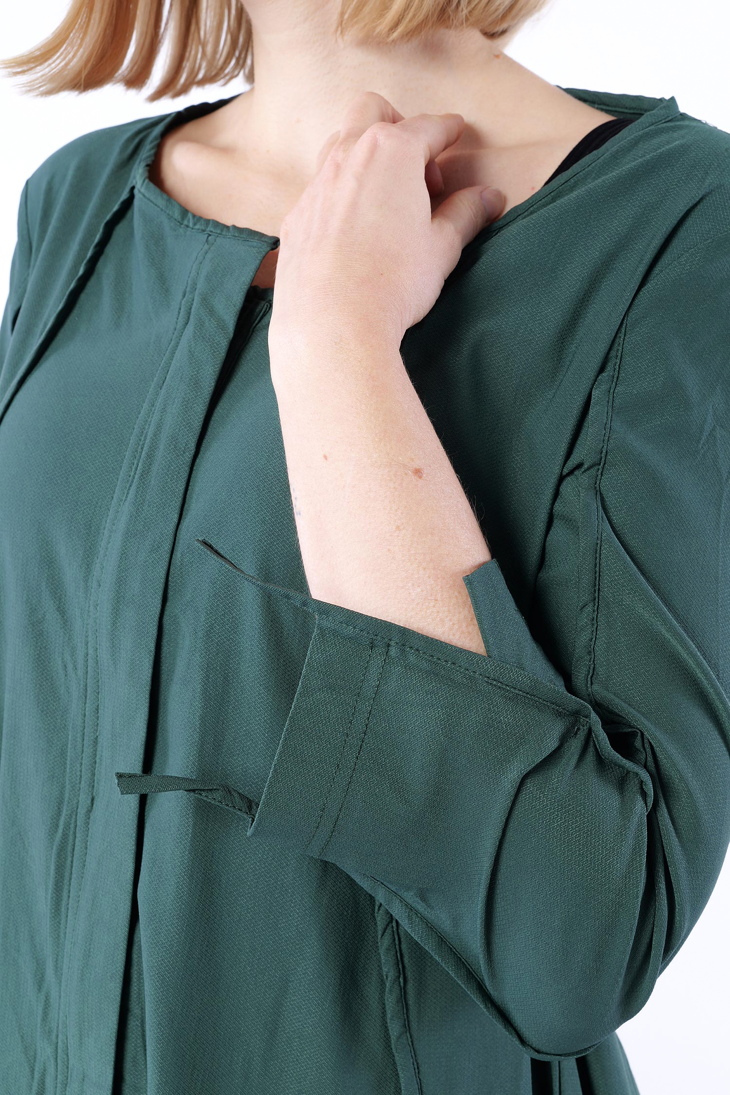 - ¾ Ärmel mit Schlitz und Zierbändern