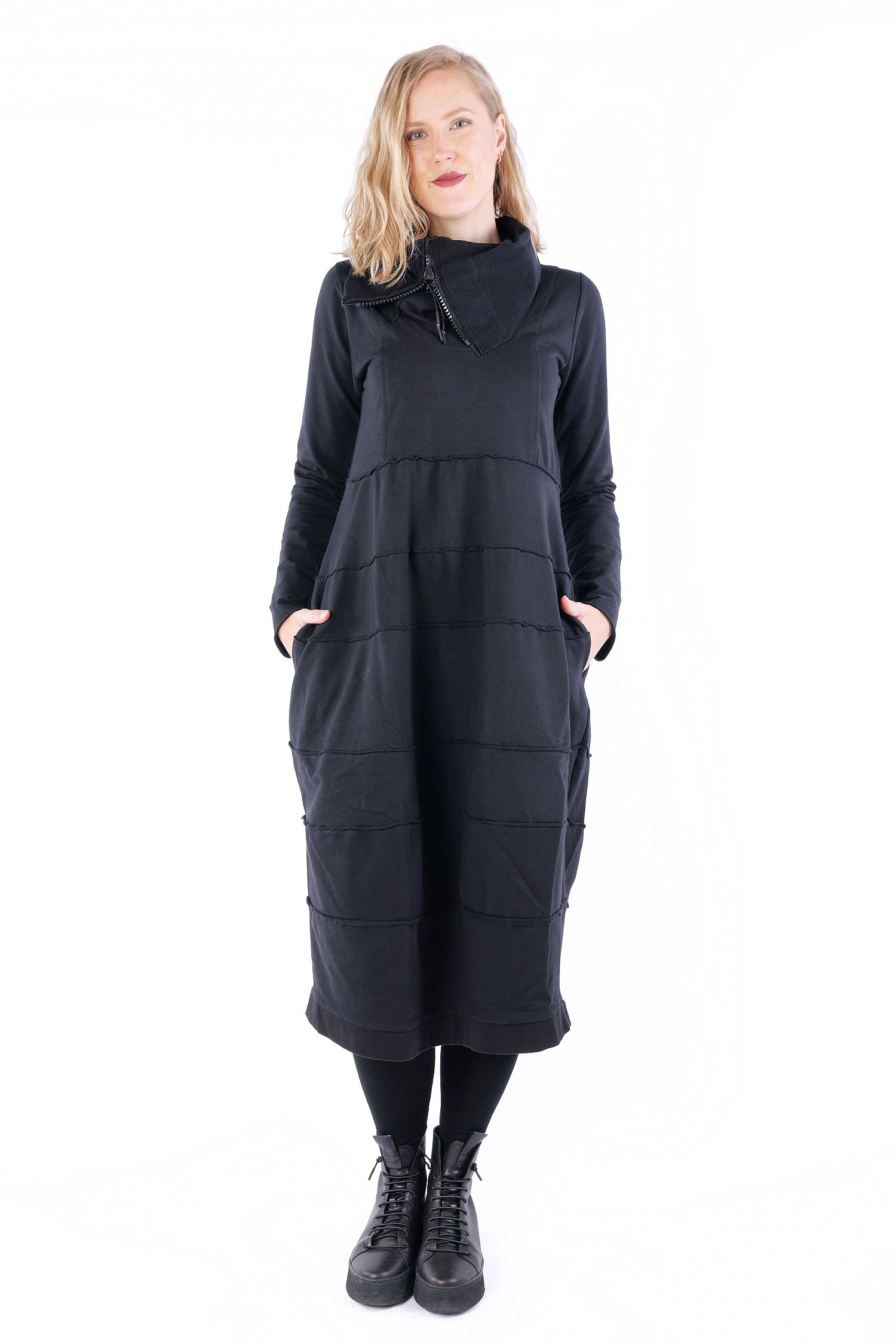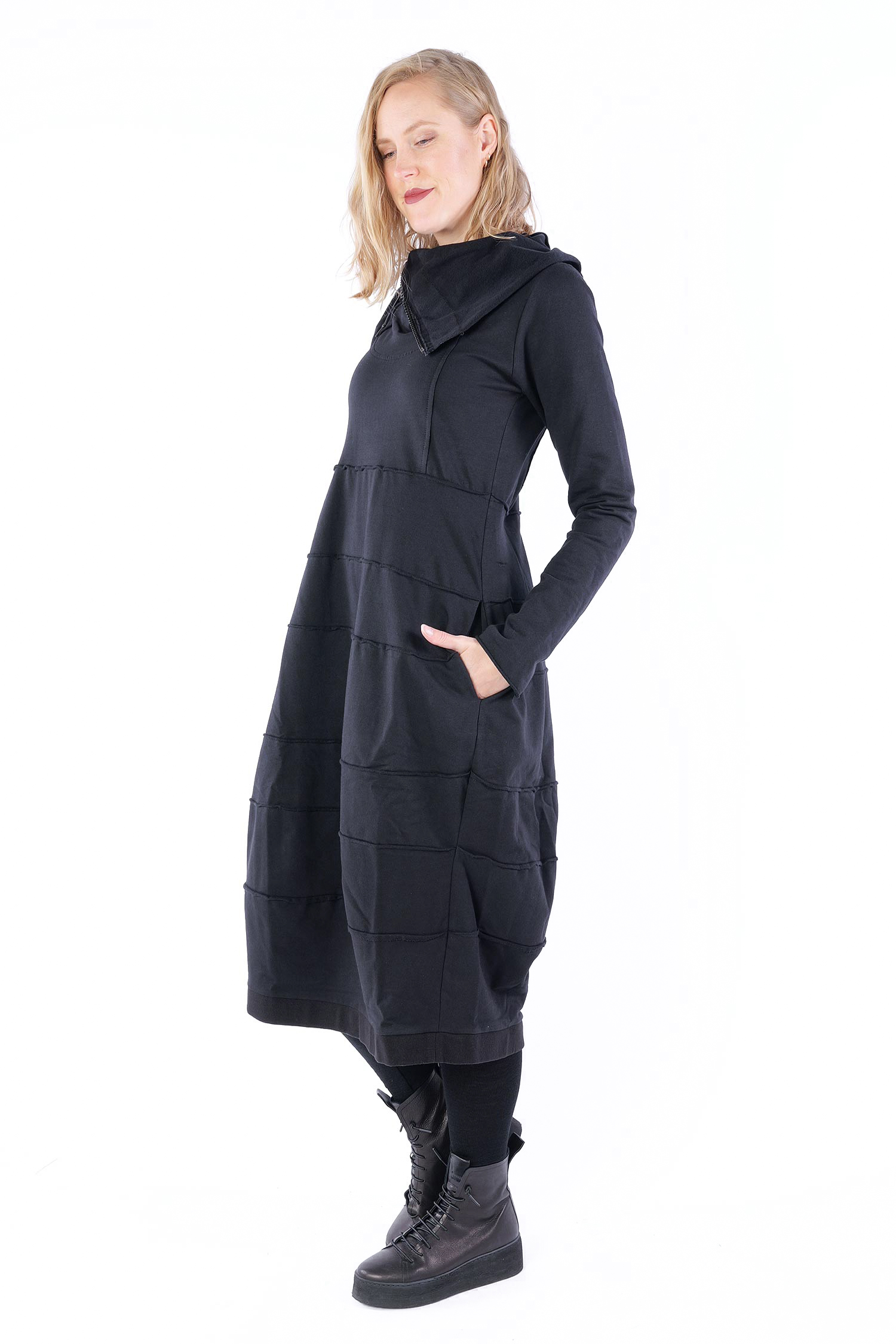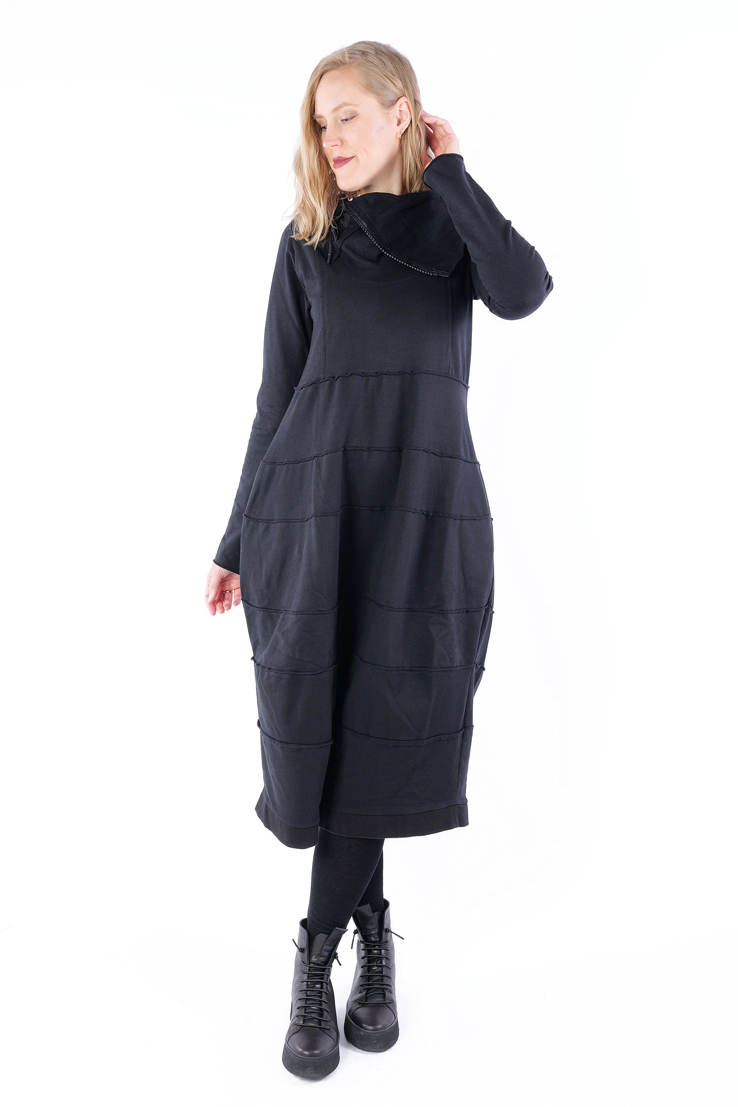 Tulpiges Sweatkleid - Schwarz - 25540