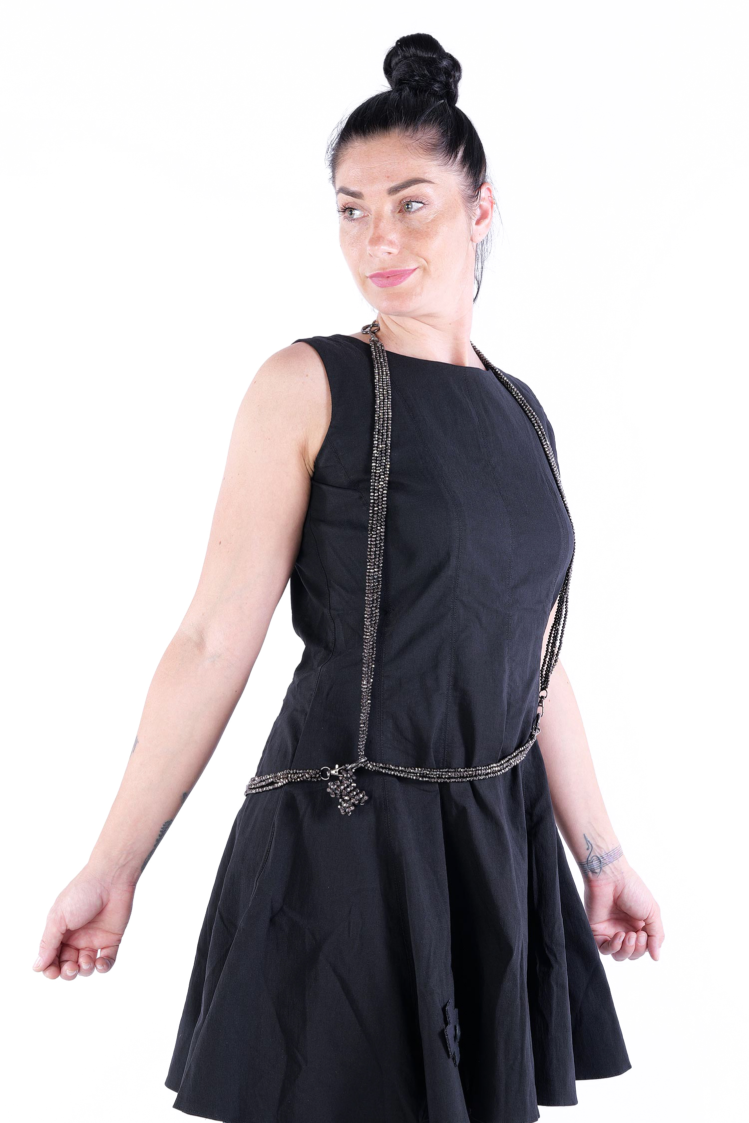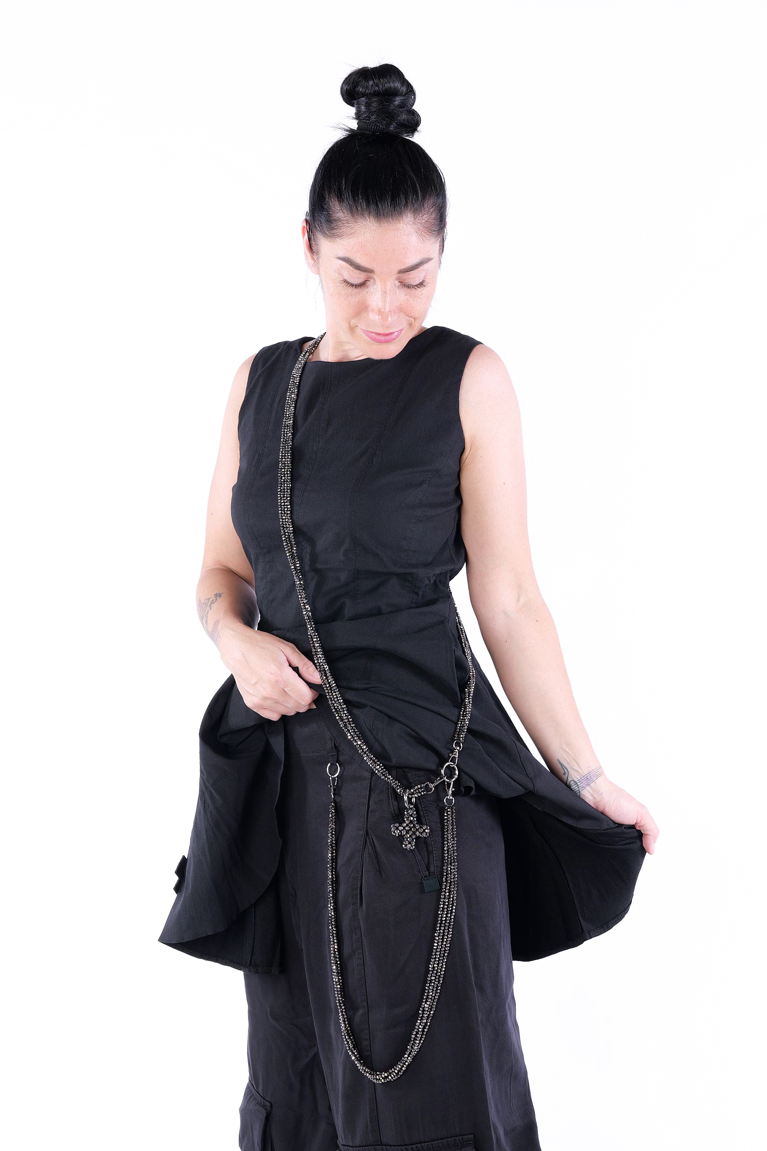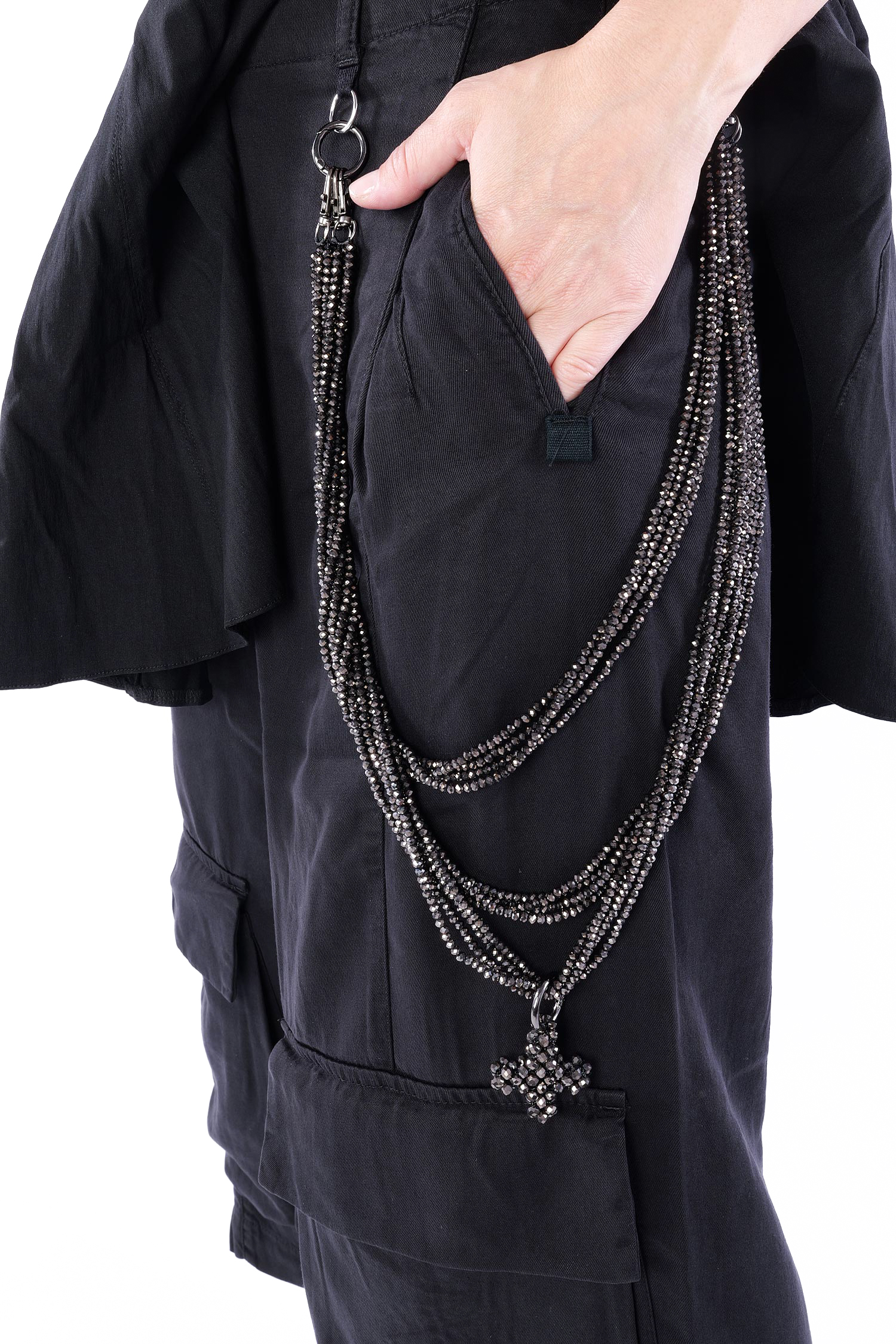 - Plus, ebenfalls mit Verschluss abnehmbar und separat tragbar - Je vier Stränge mit kleinen facettierten Glasperlen