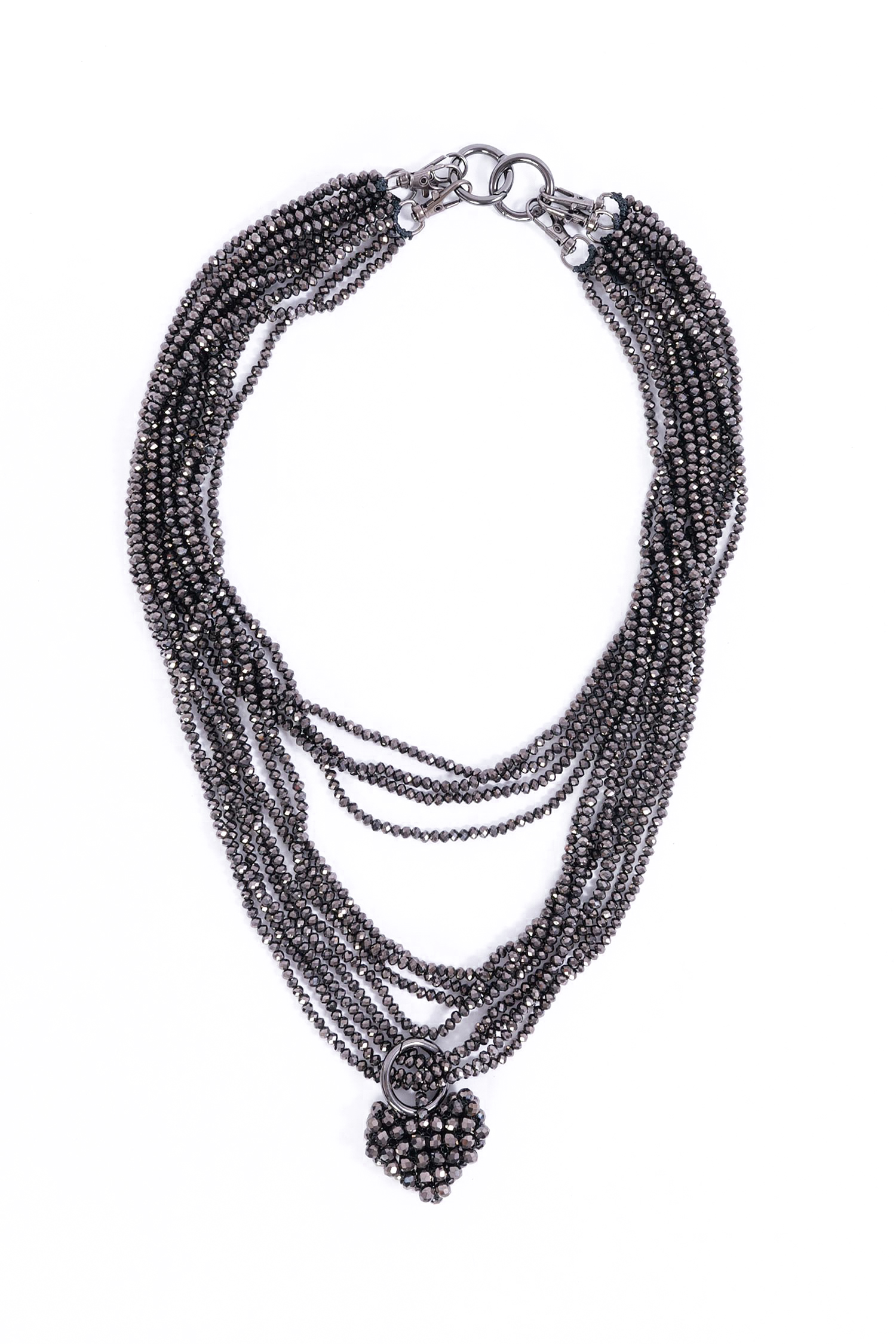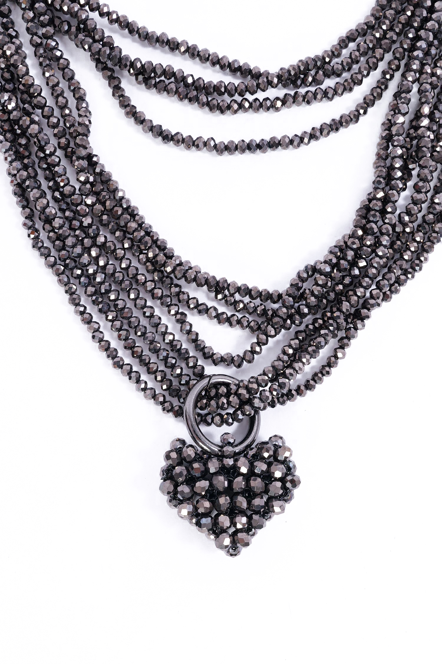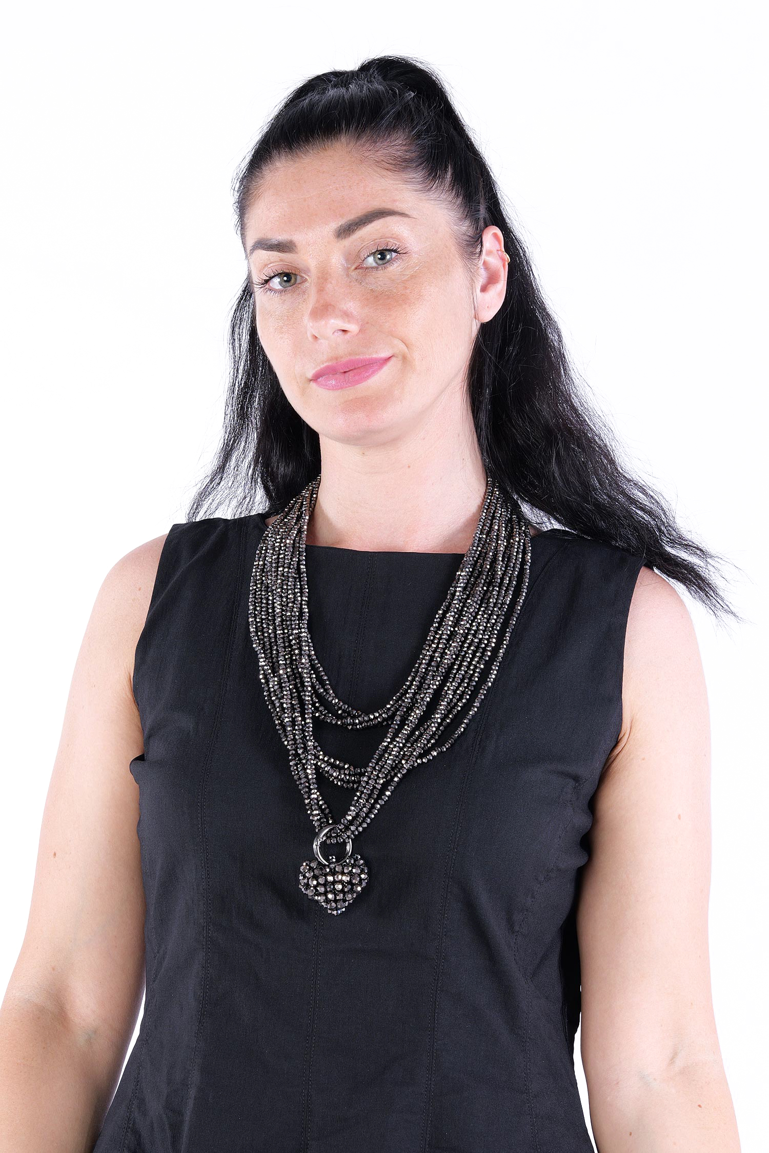 - Herz, ebenfalls mit Verschluss abnehmbar und separat tragbar - Je vier Stränge mit kleinen facettierten Glasperlen