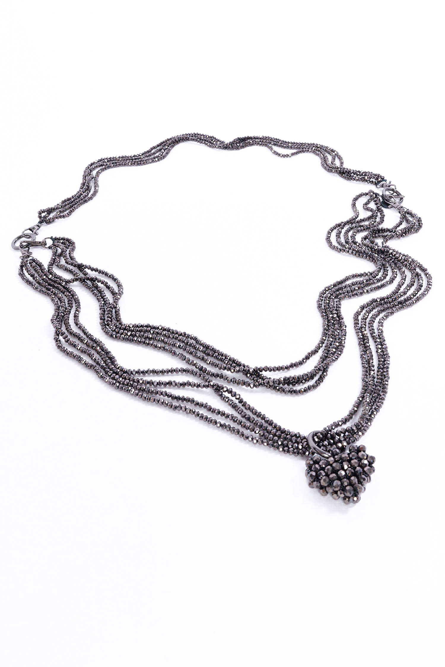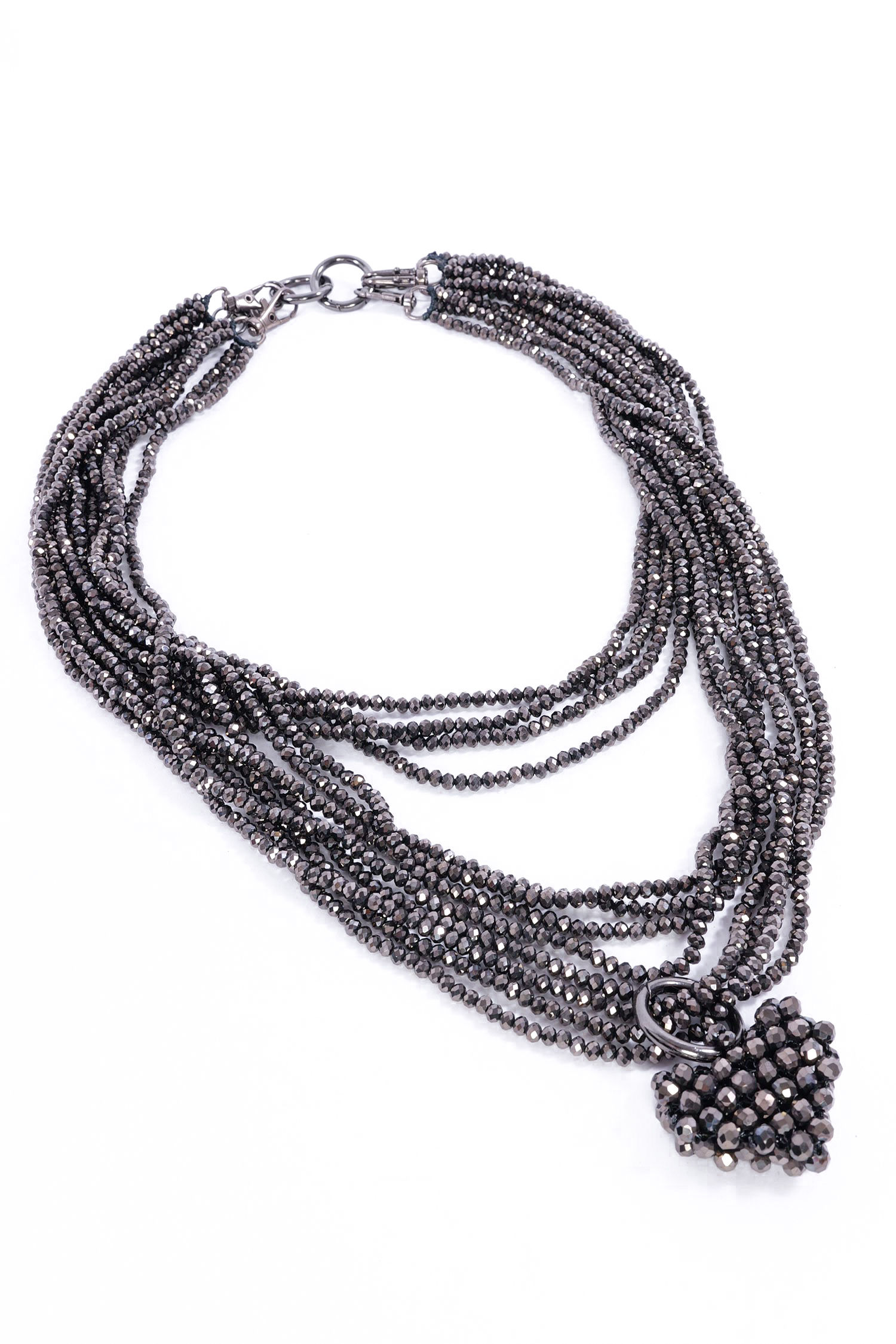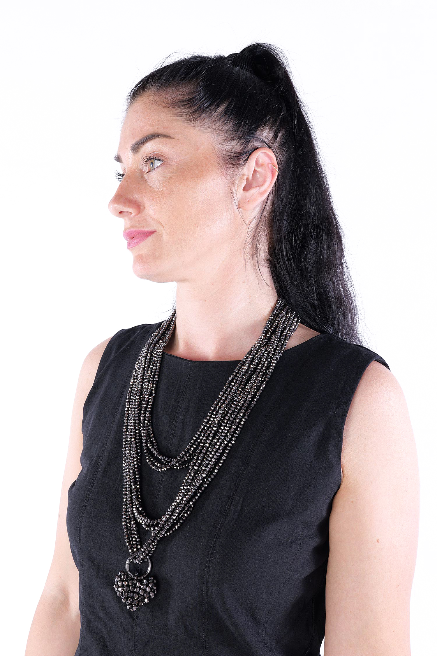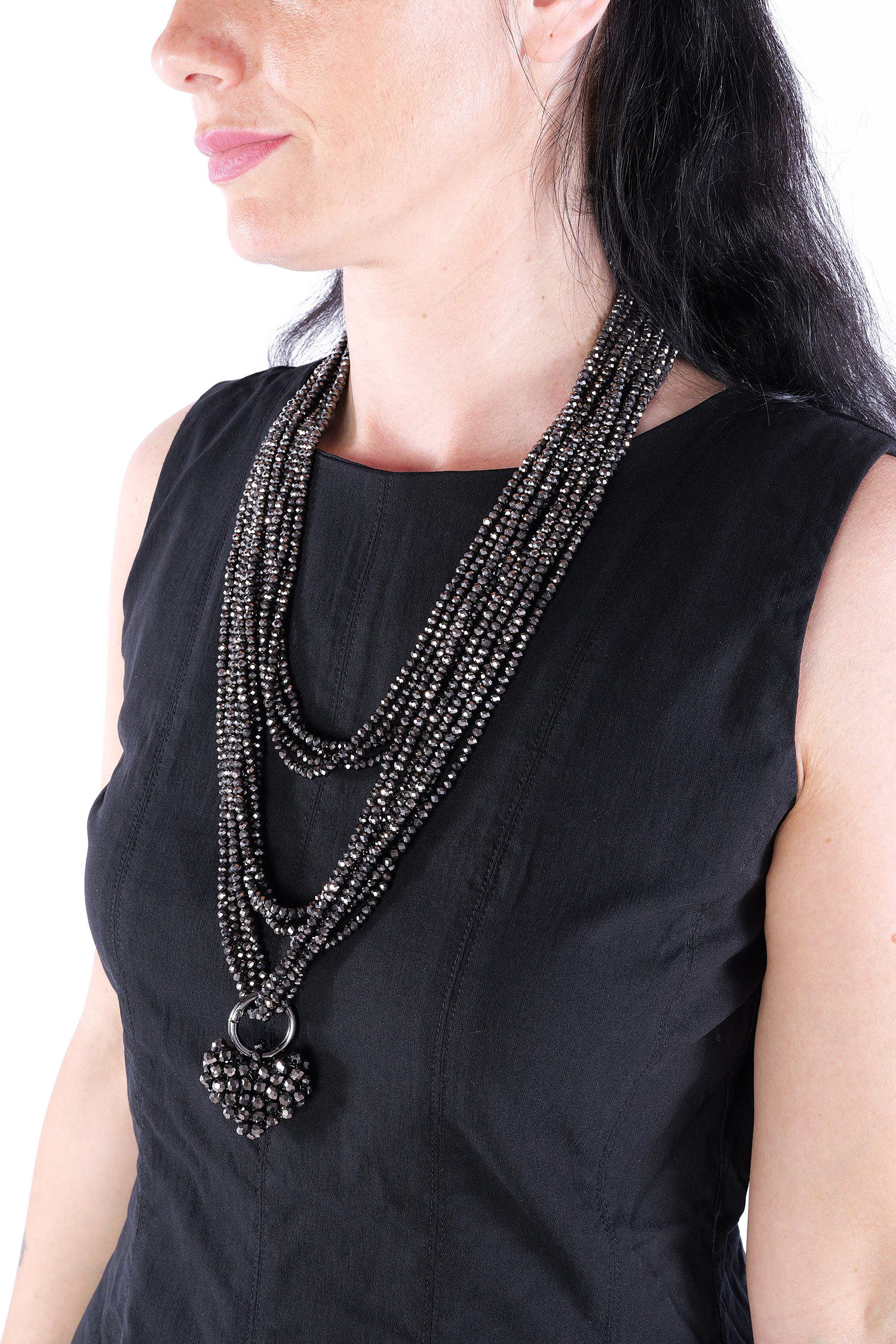 - Herz, ebenfalls mit Verschluss abnehmbar und separat tragbar - Je vier Stränge mit kleinen facettierten Glasperlen