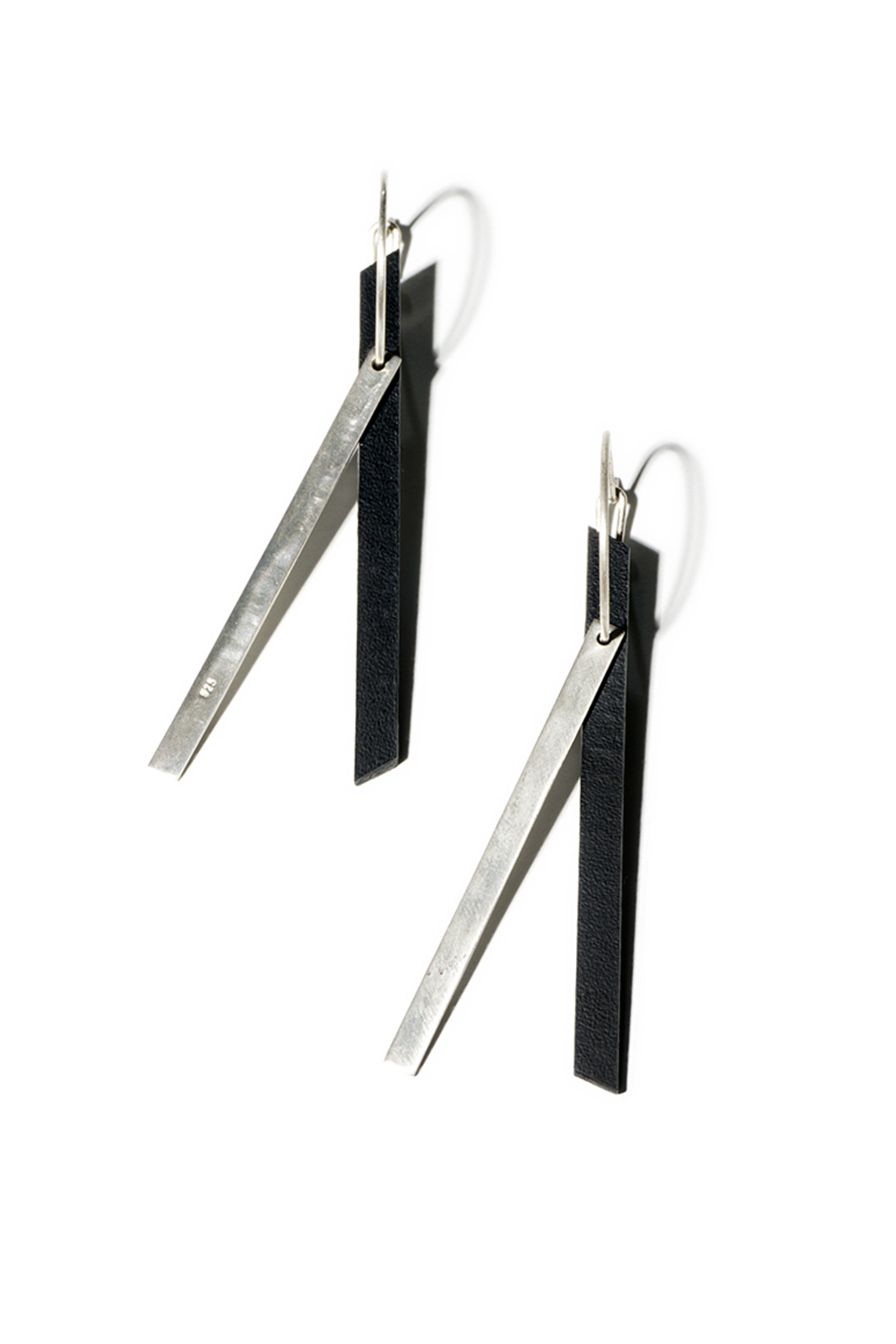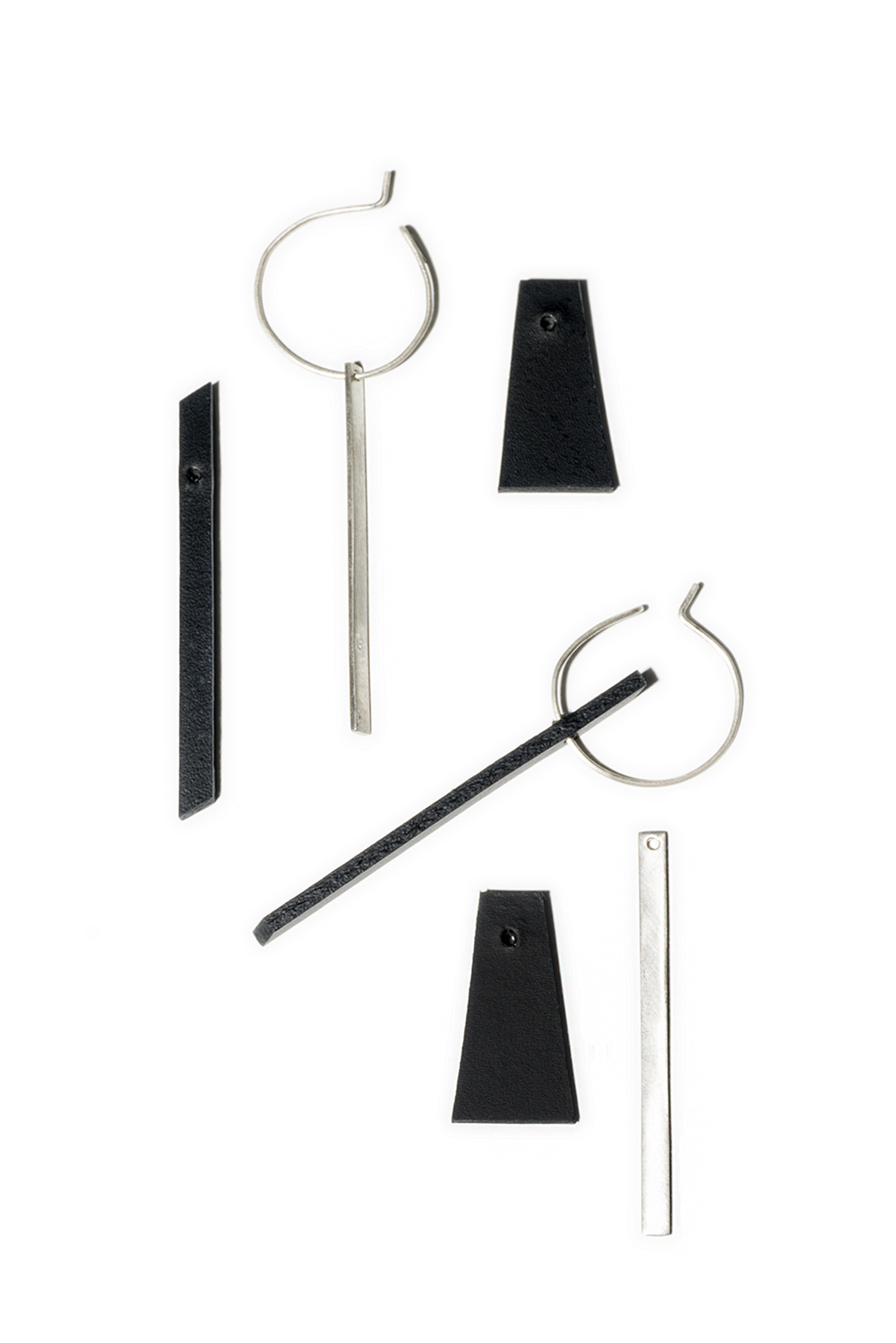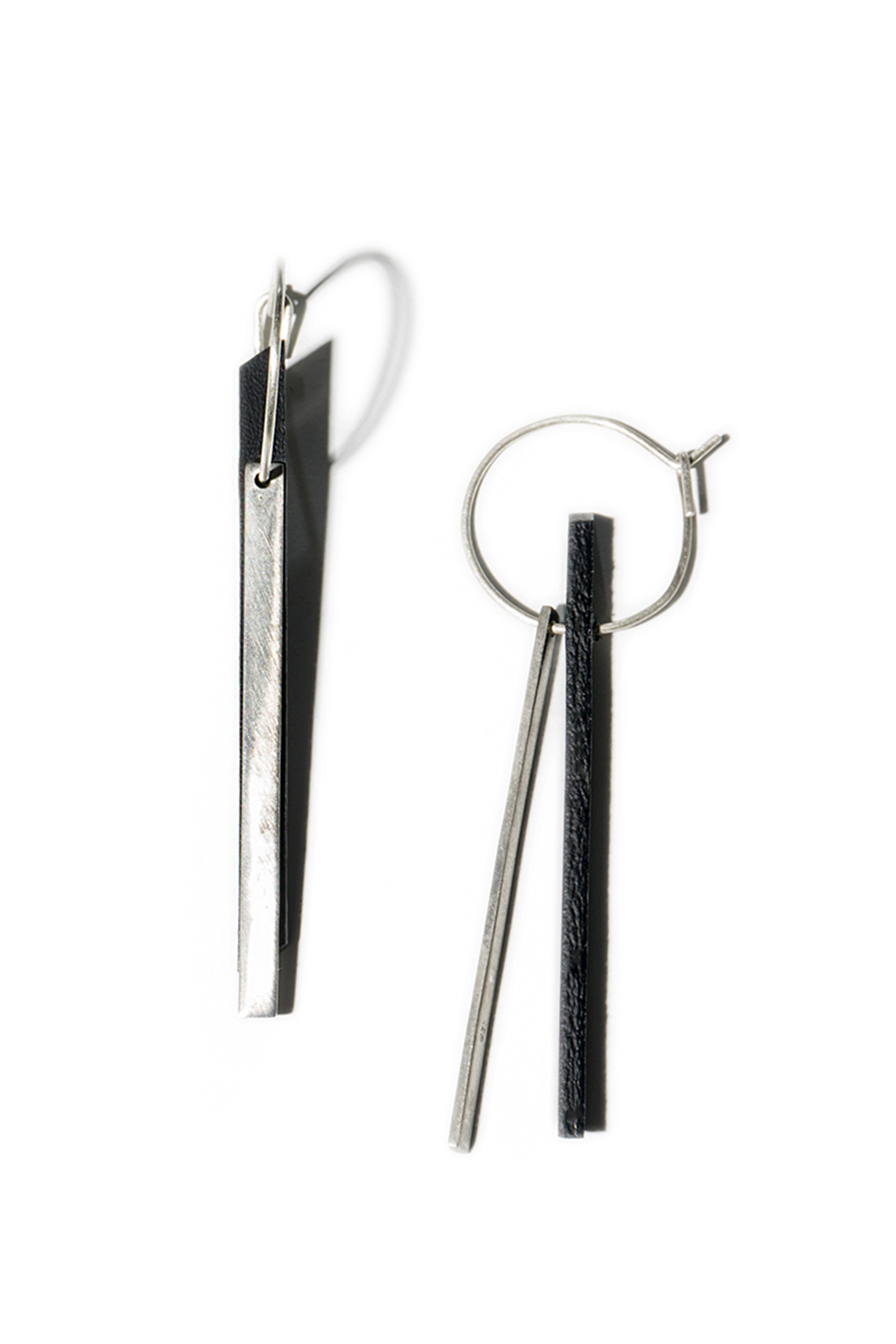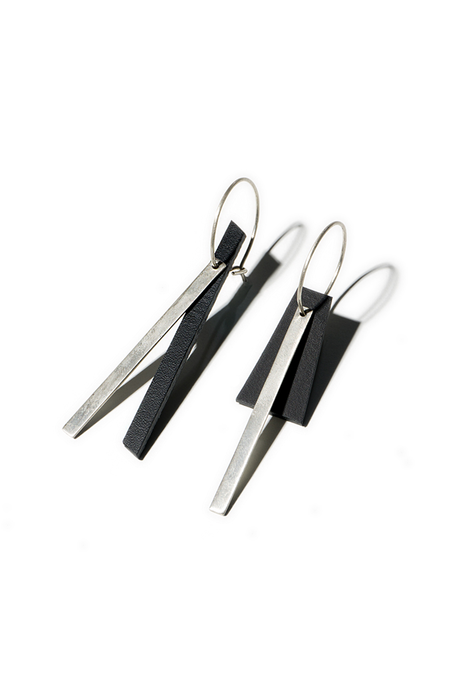 Wandelbare Ohrringe mit Leder- und Silberstäben von Aumorfia.