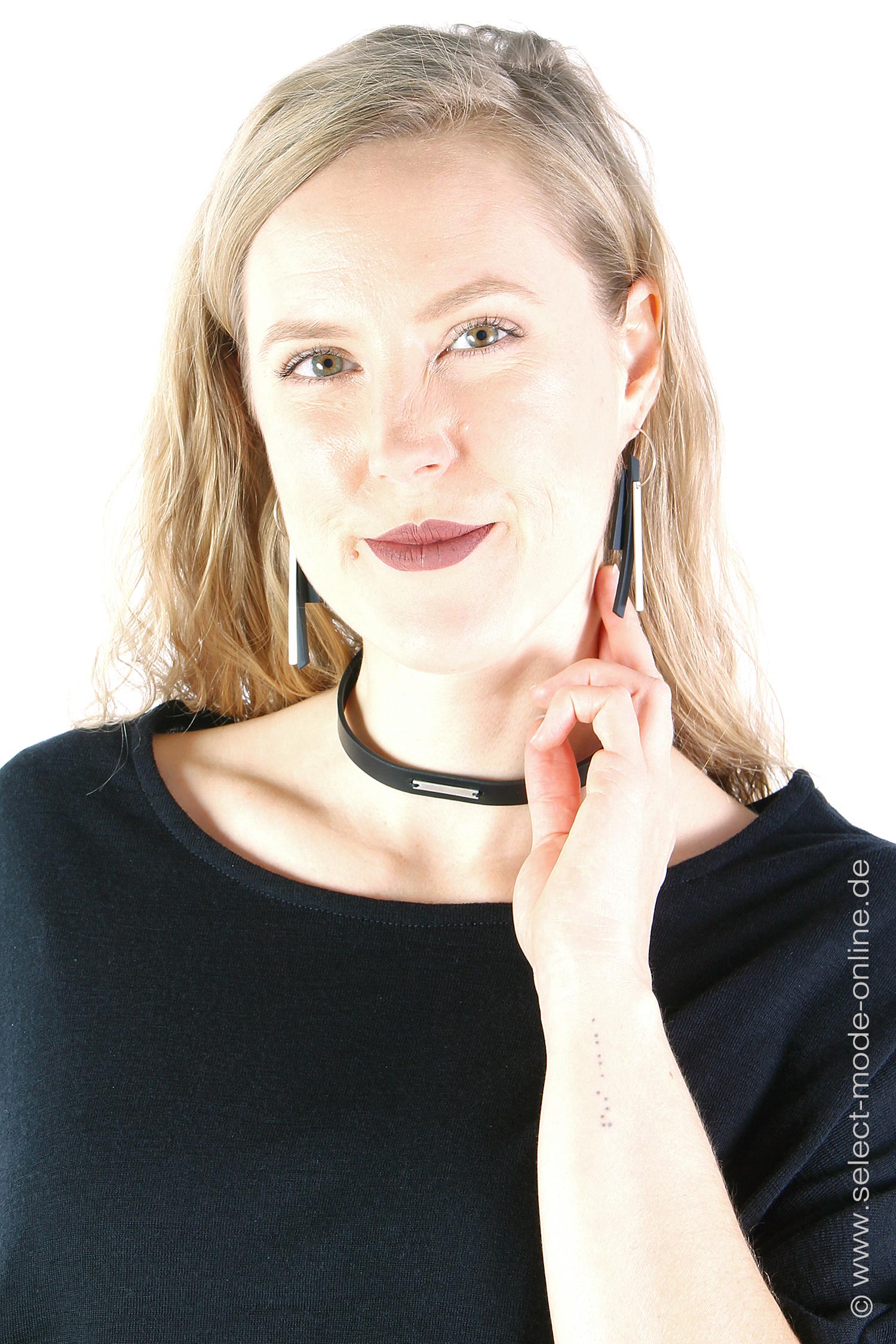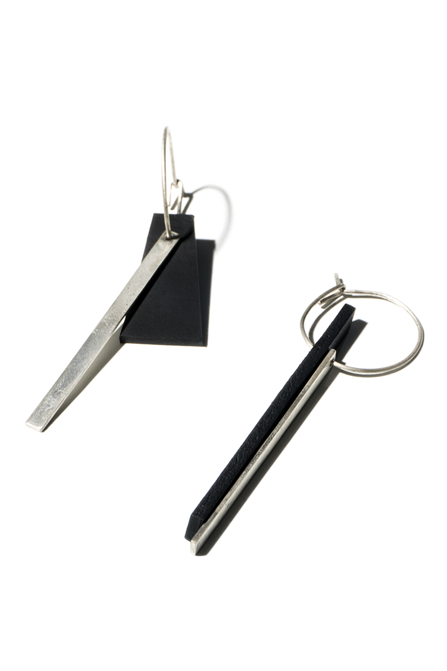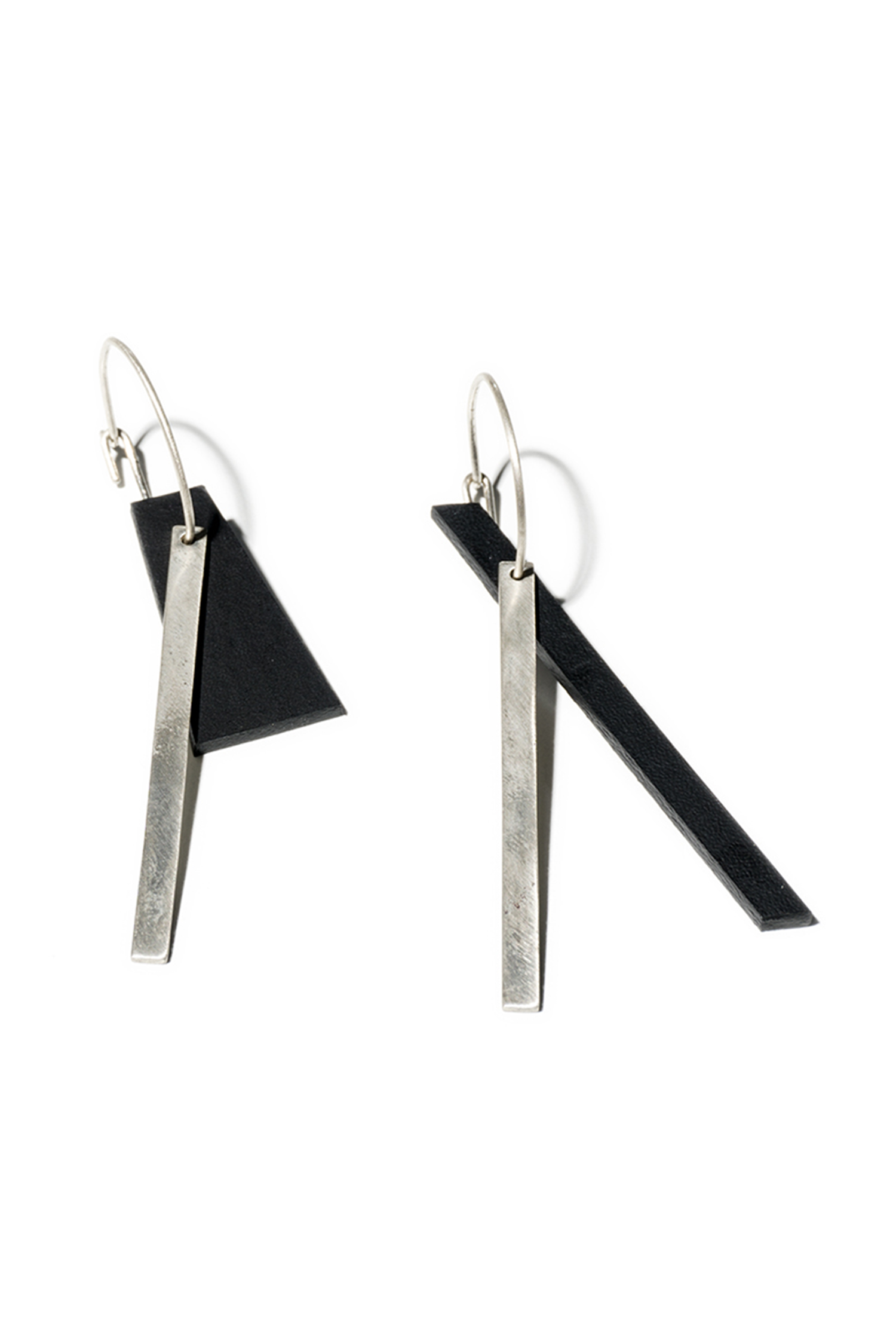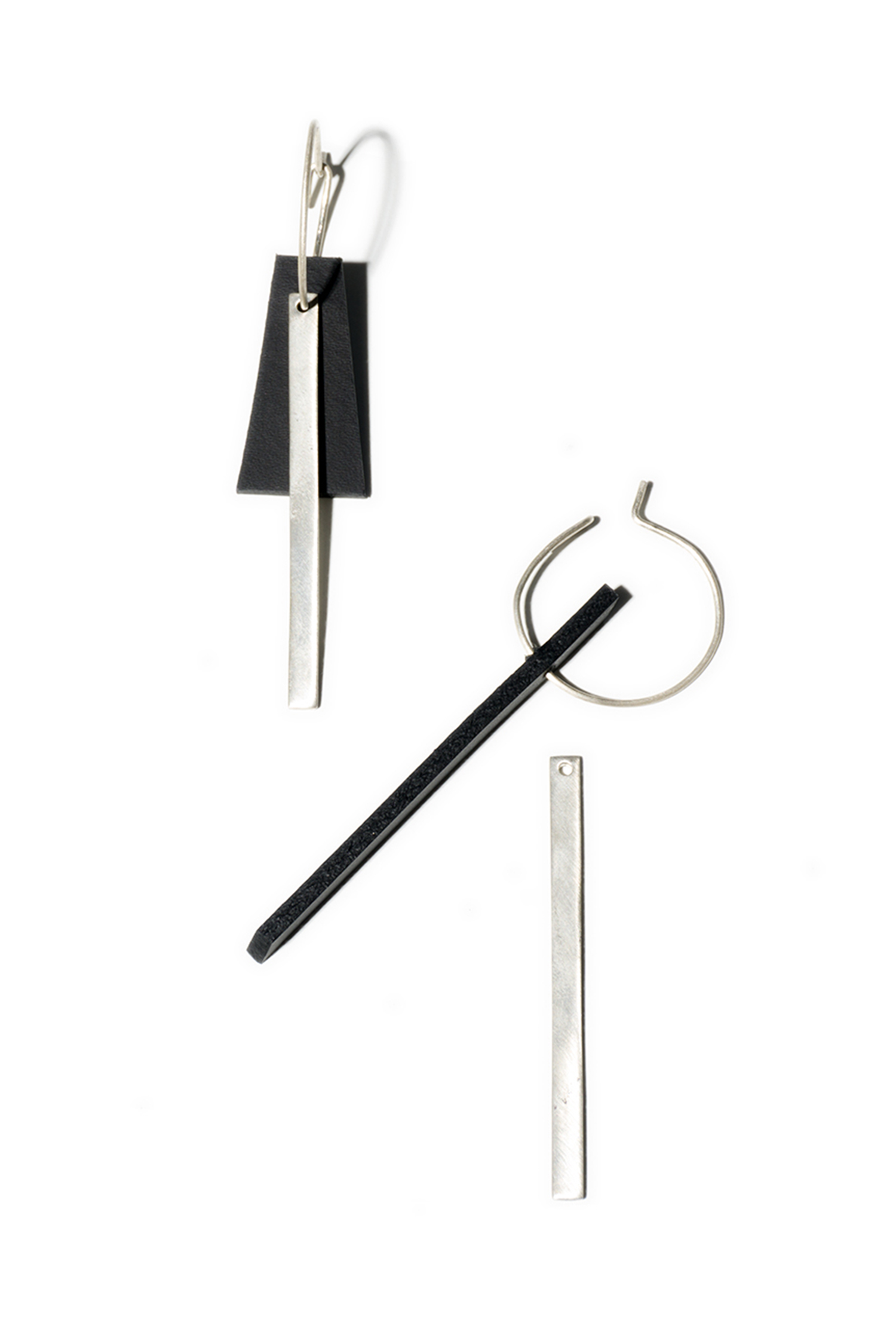 Wandelbare Ohrringe mit Leder- und Silberstäben von Aumorfia.
