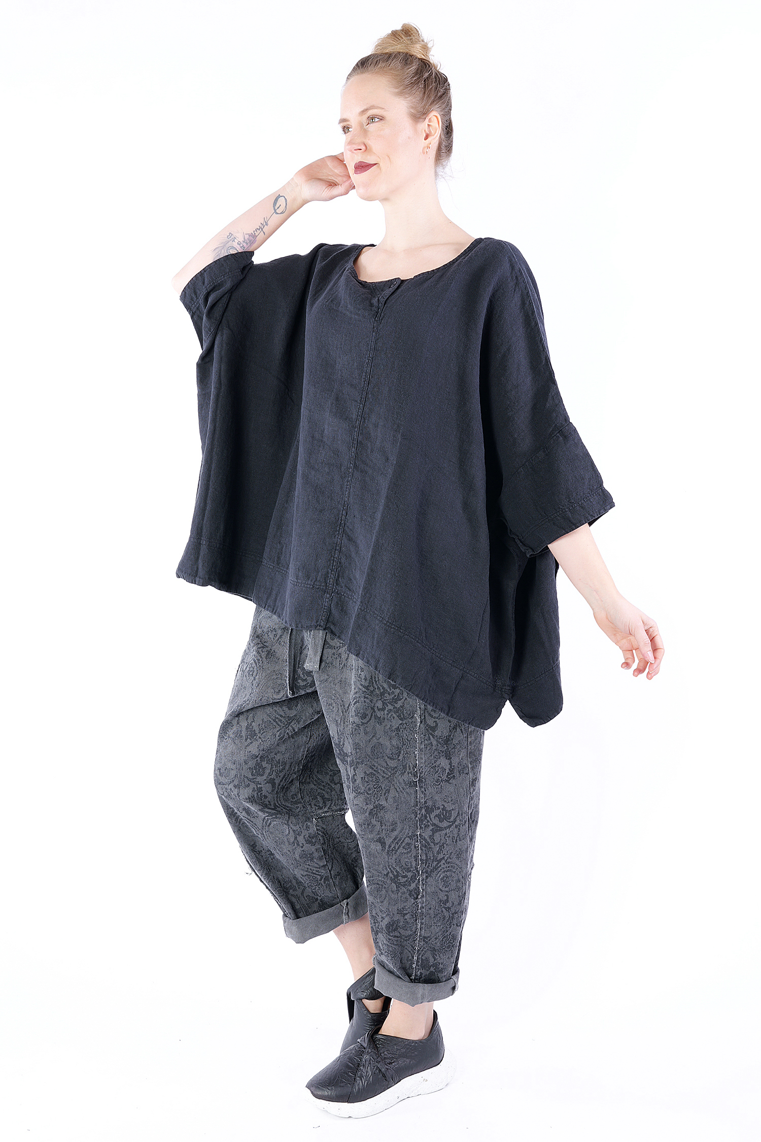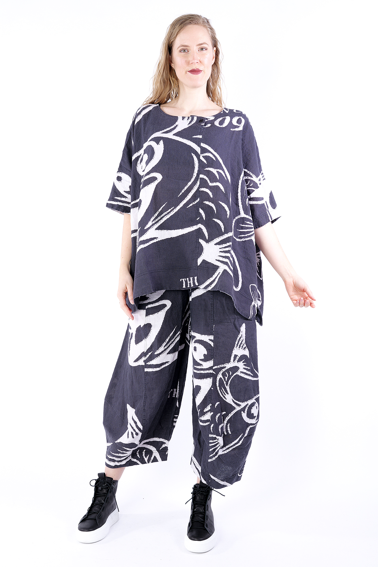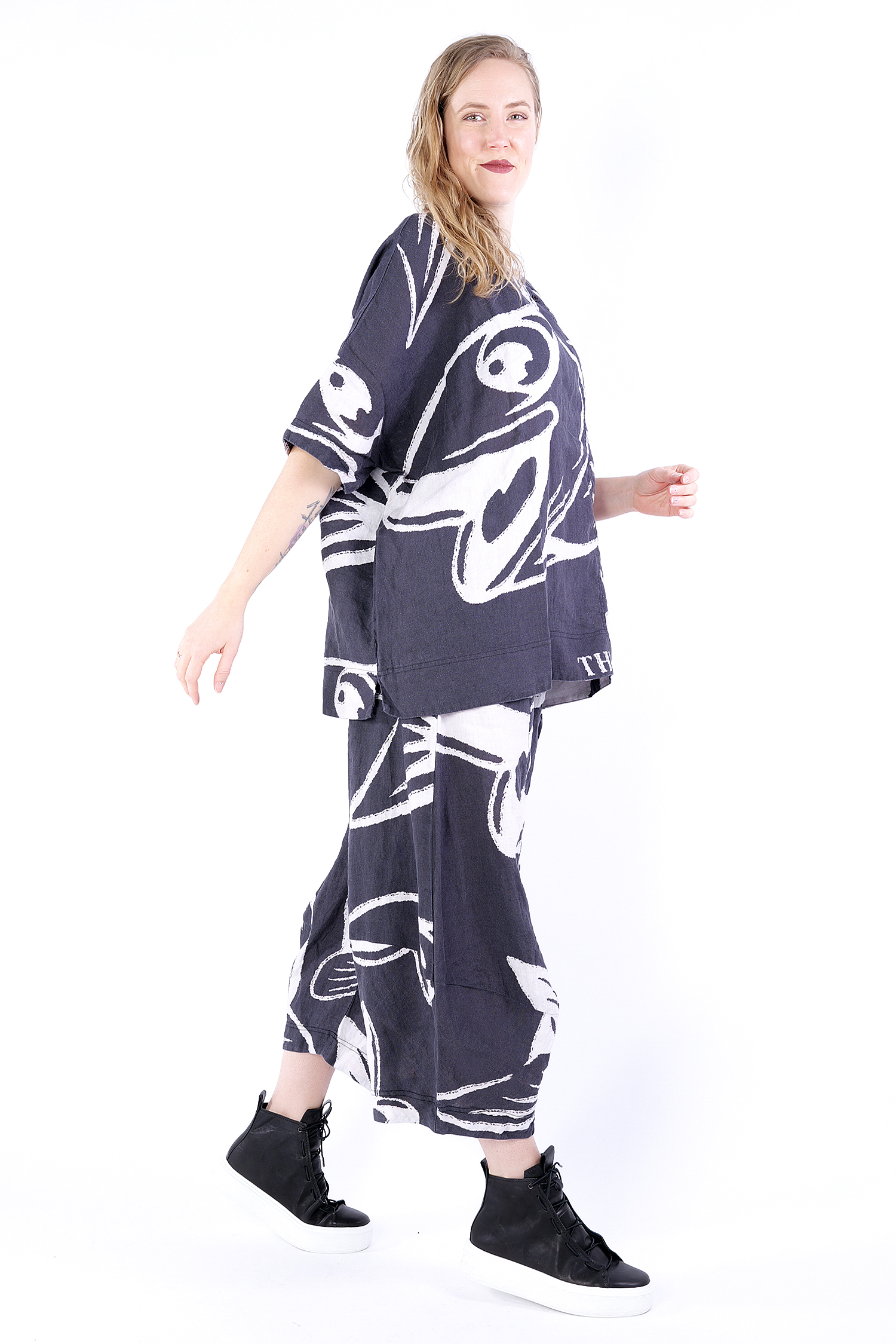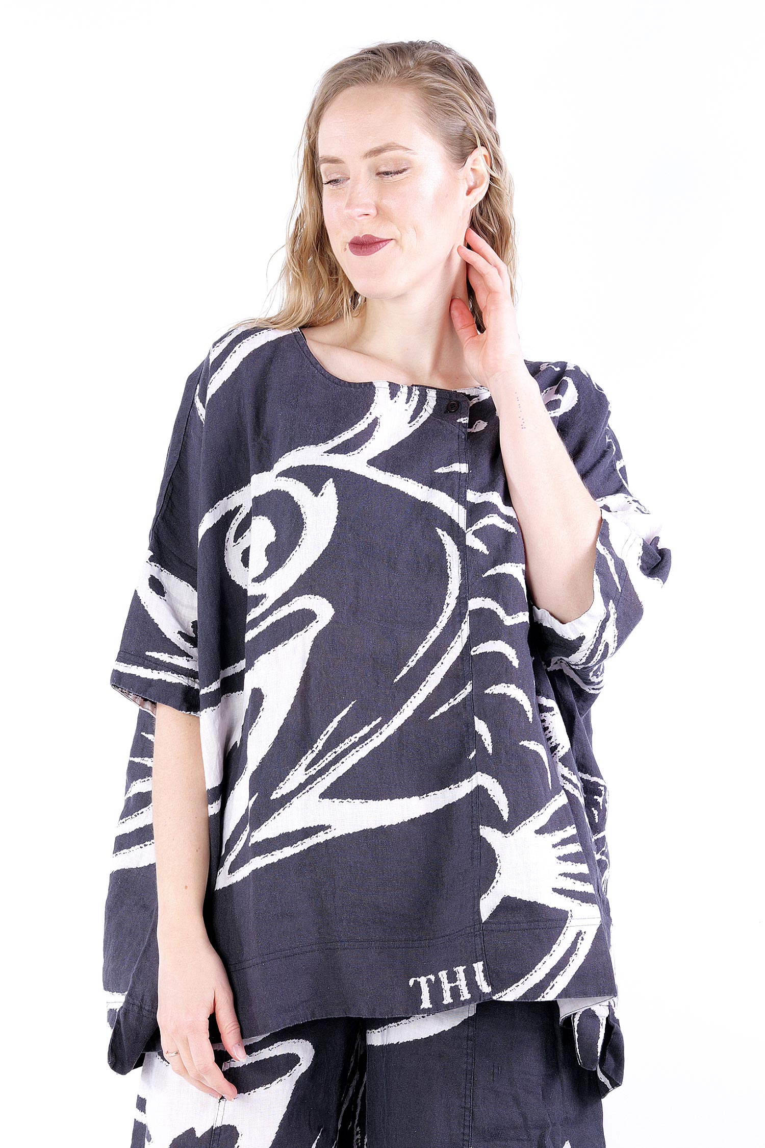 Weite Leinen Tunika mit Alloverprint von Rundholz Black Label.