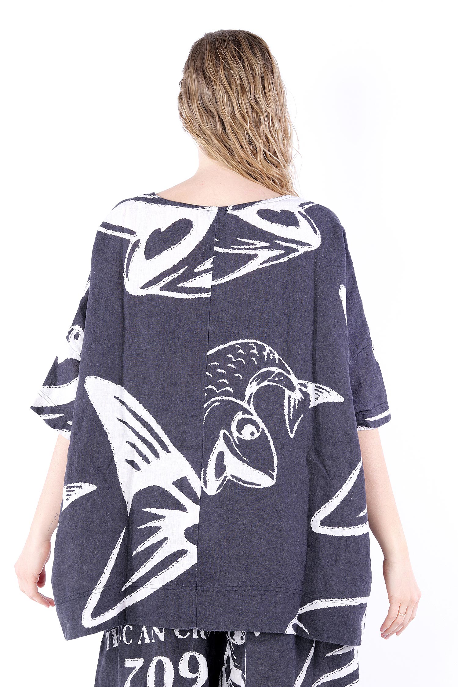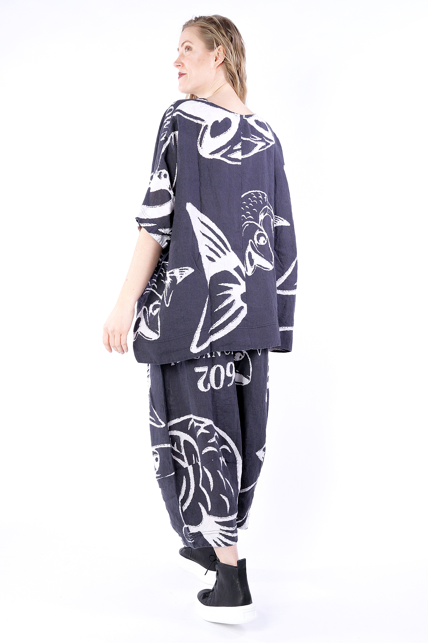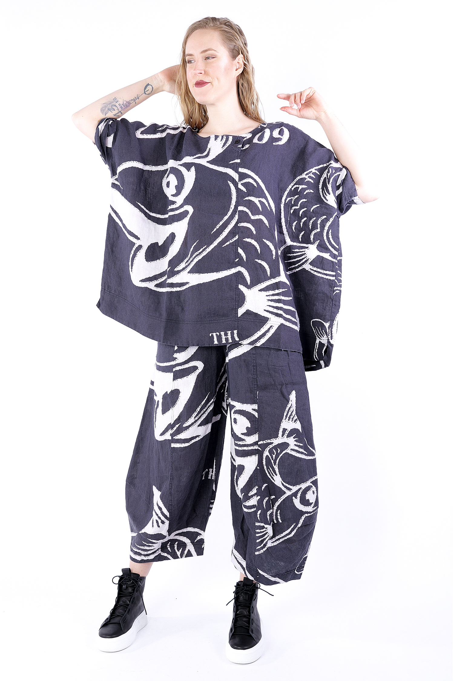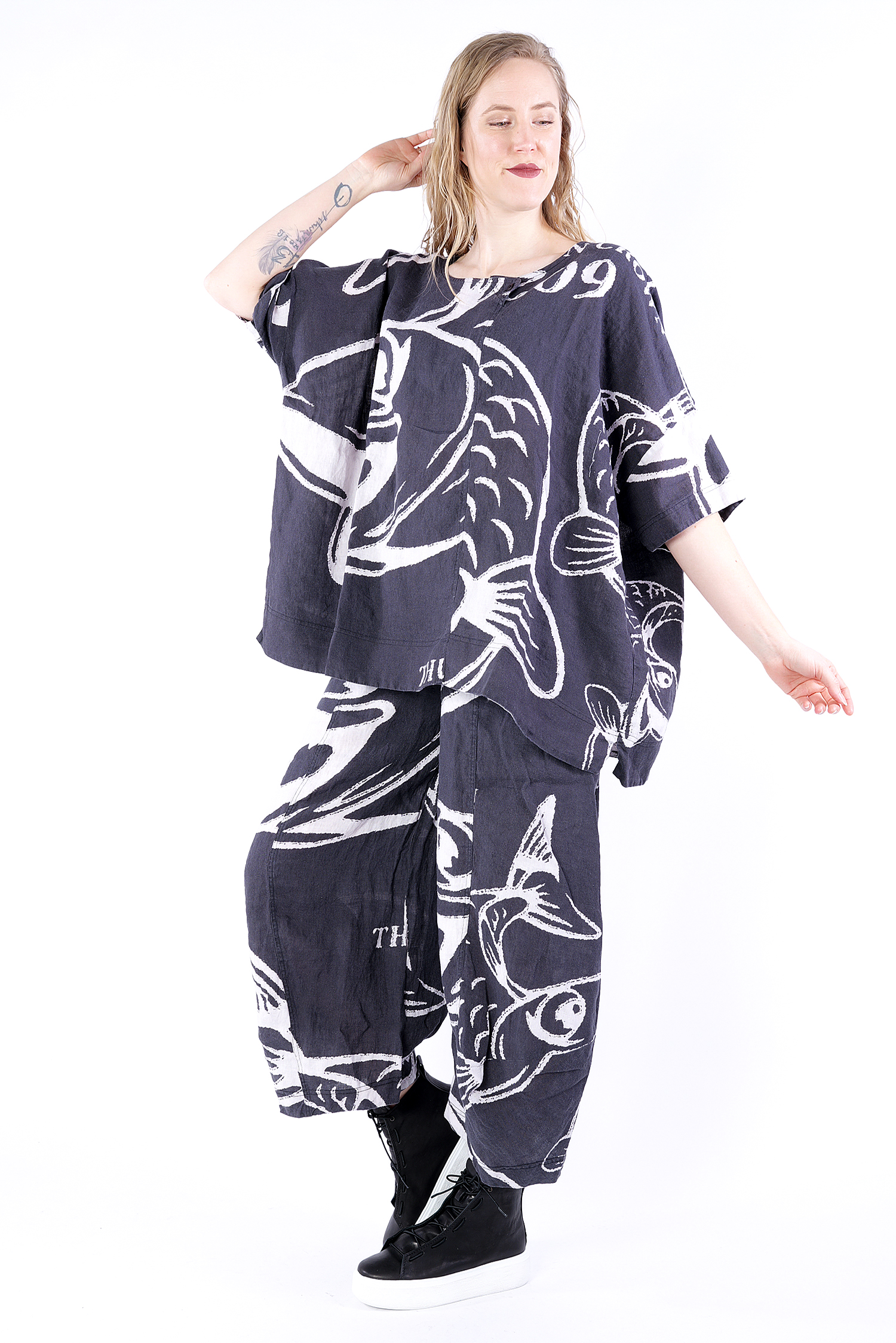 Weite Leinen Tunika mit Alloverprint von Rundholz Black Label.