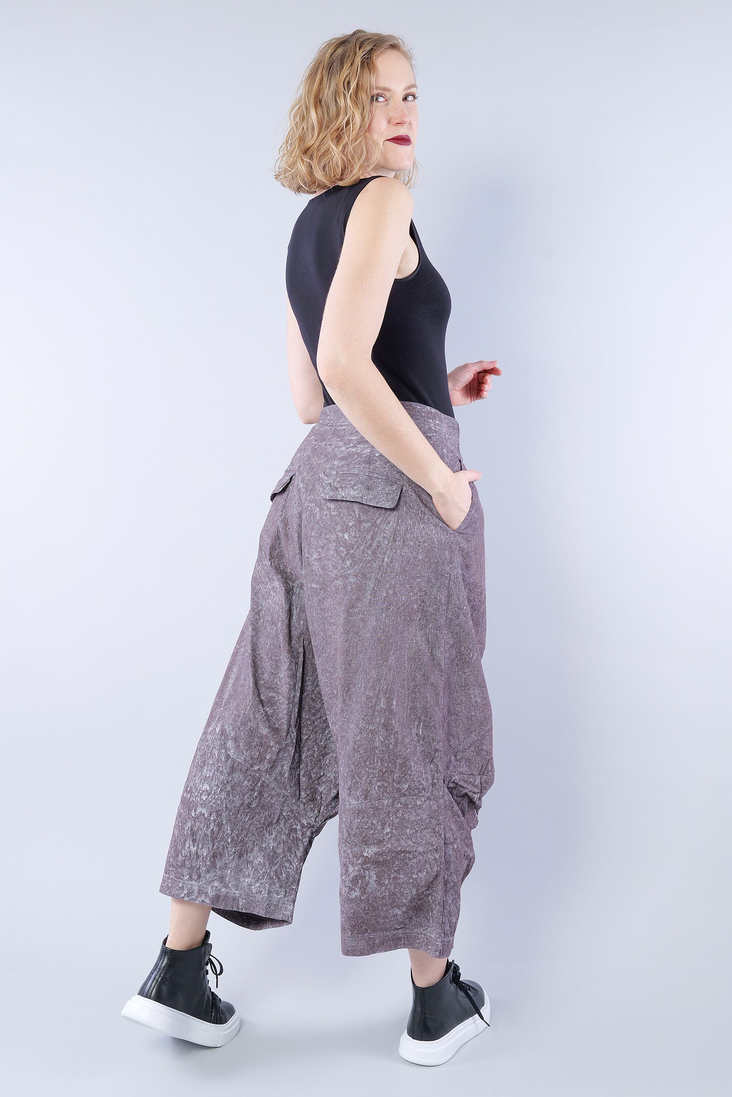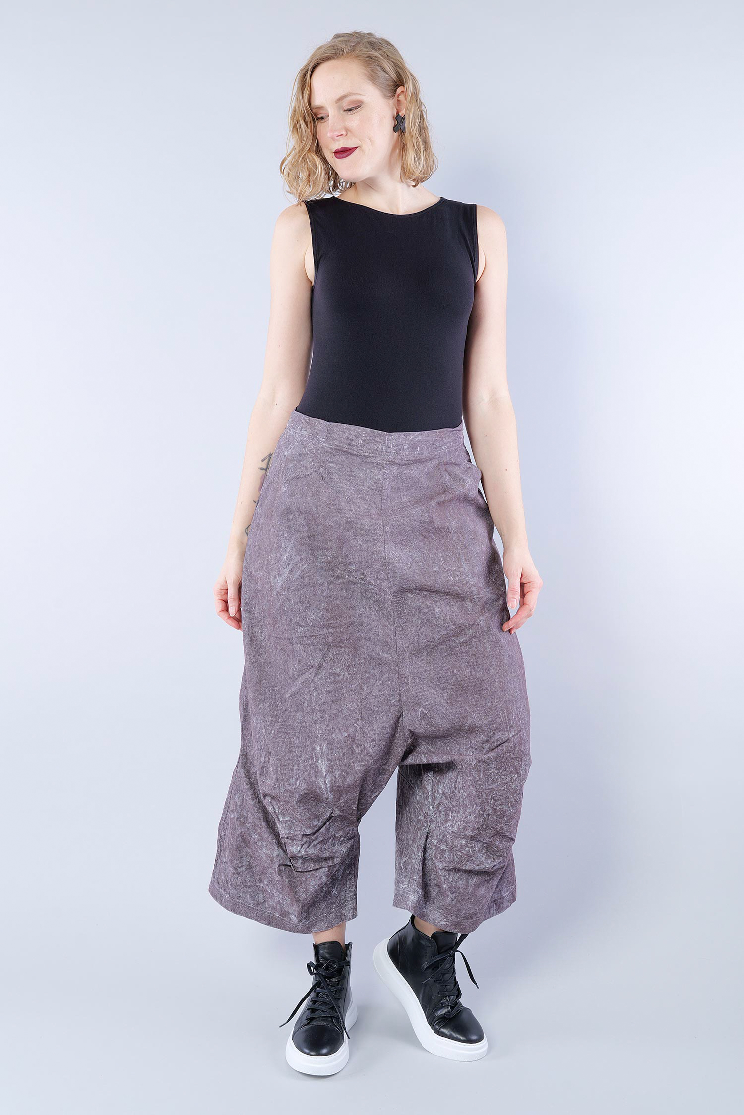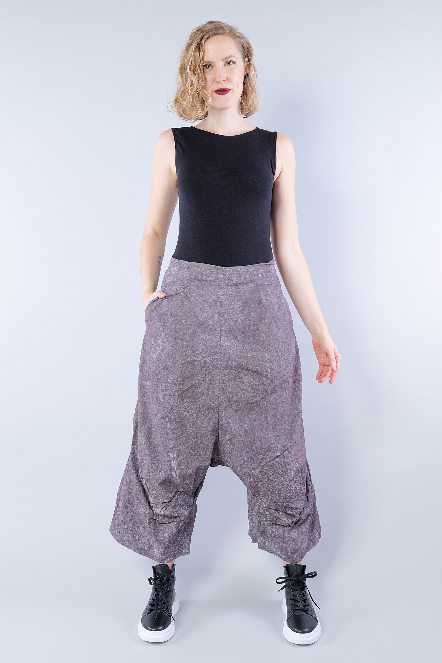 Stretchhose mit weitem Bein und tiefem Schritt von Rundholz Dip.