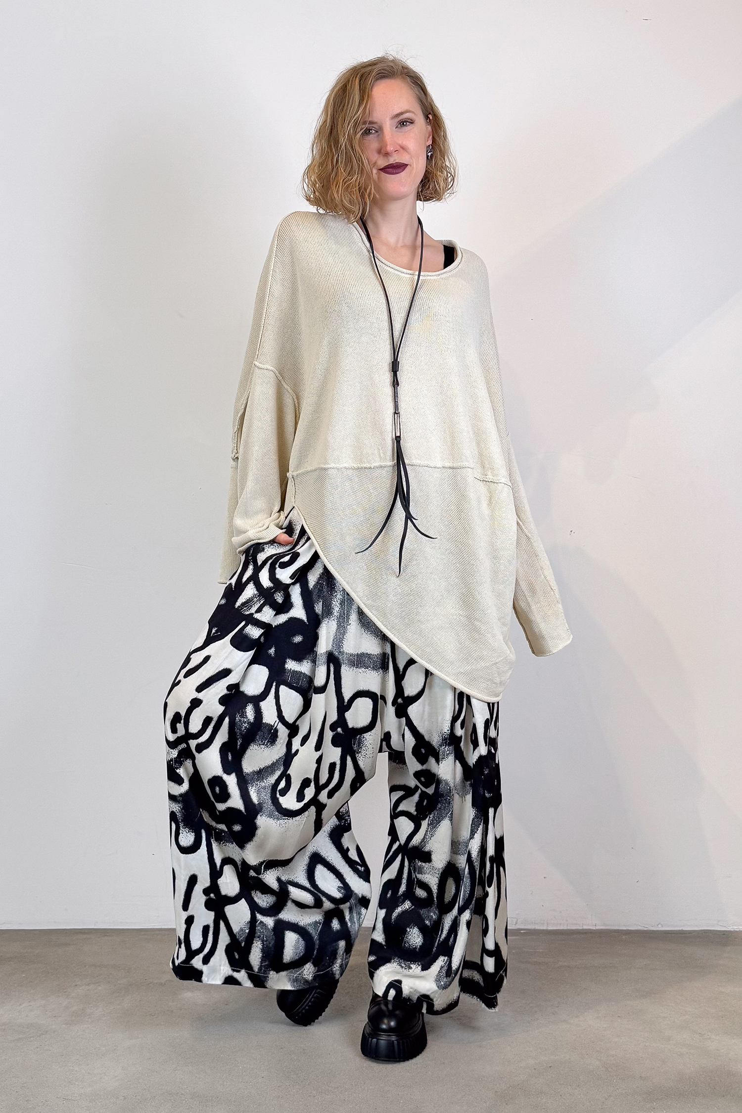 Größe L: Bund ungedehnt = 46 cm, gedehnt = 56 cm / Schritttiefe = 59 cm / Hüfte = 60 cm / Länge = 98 cm