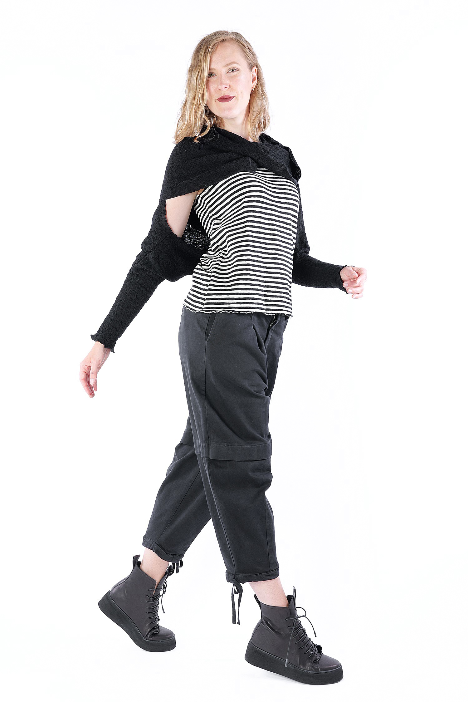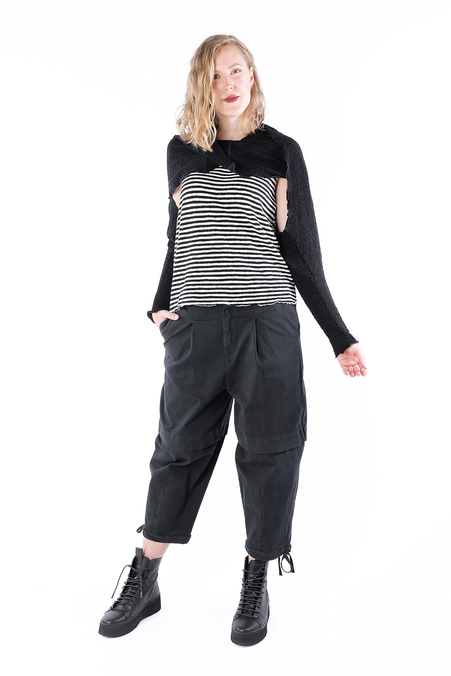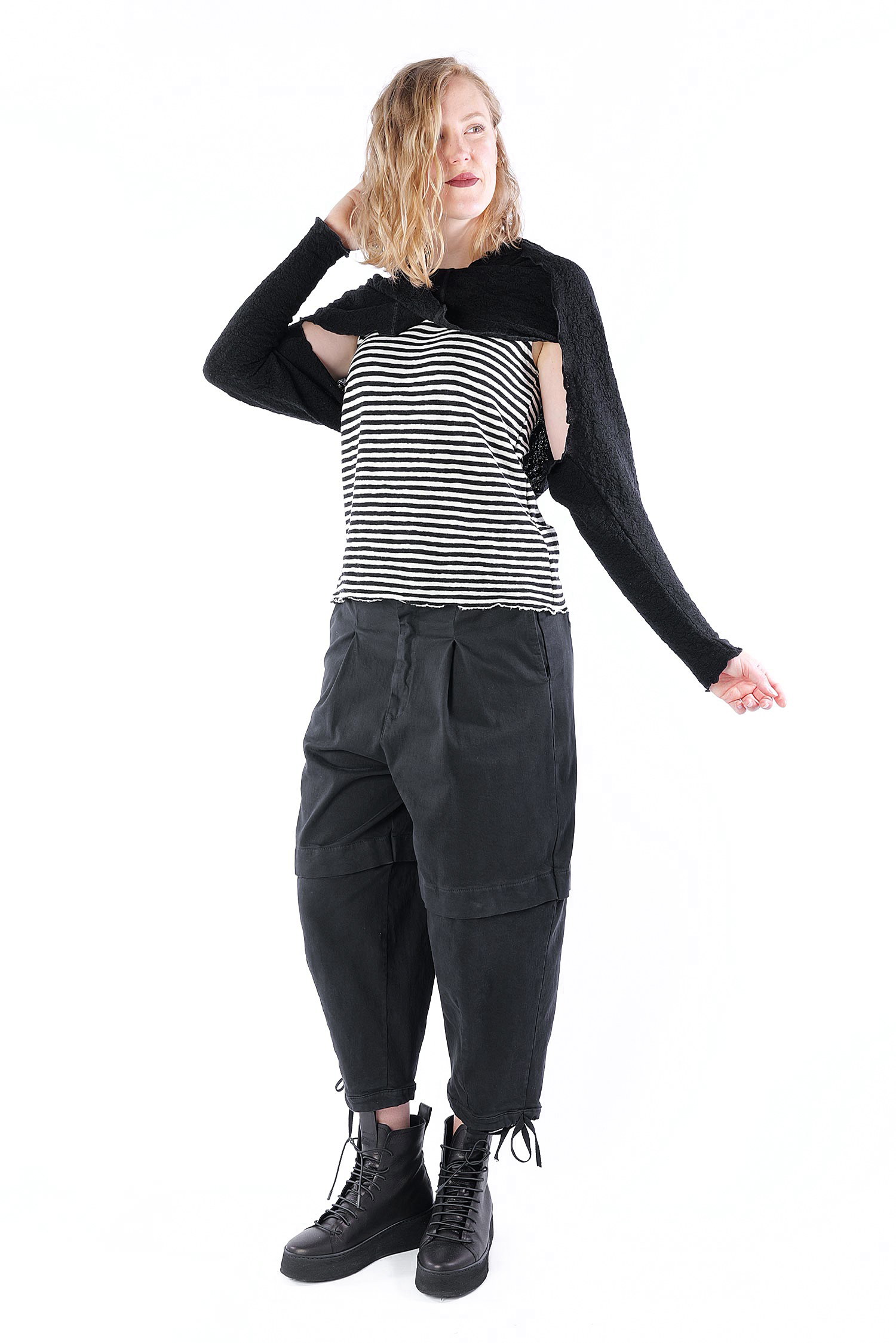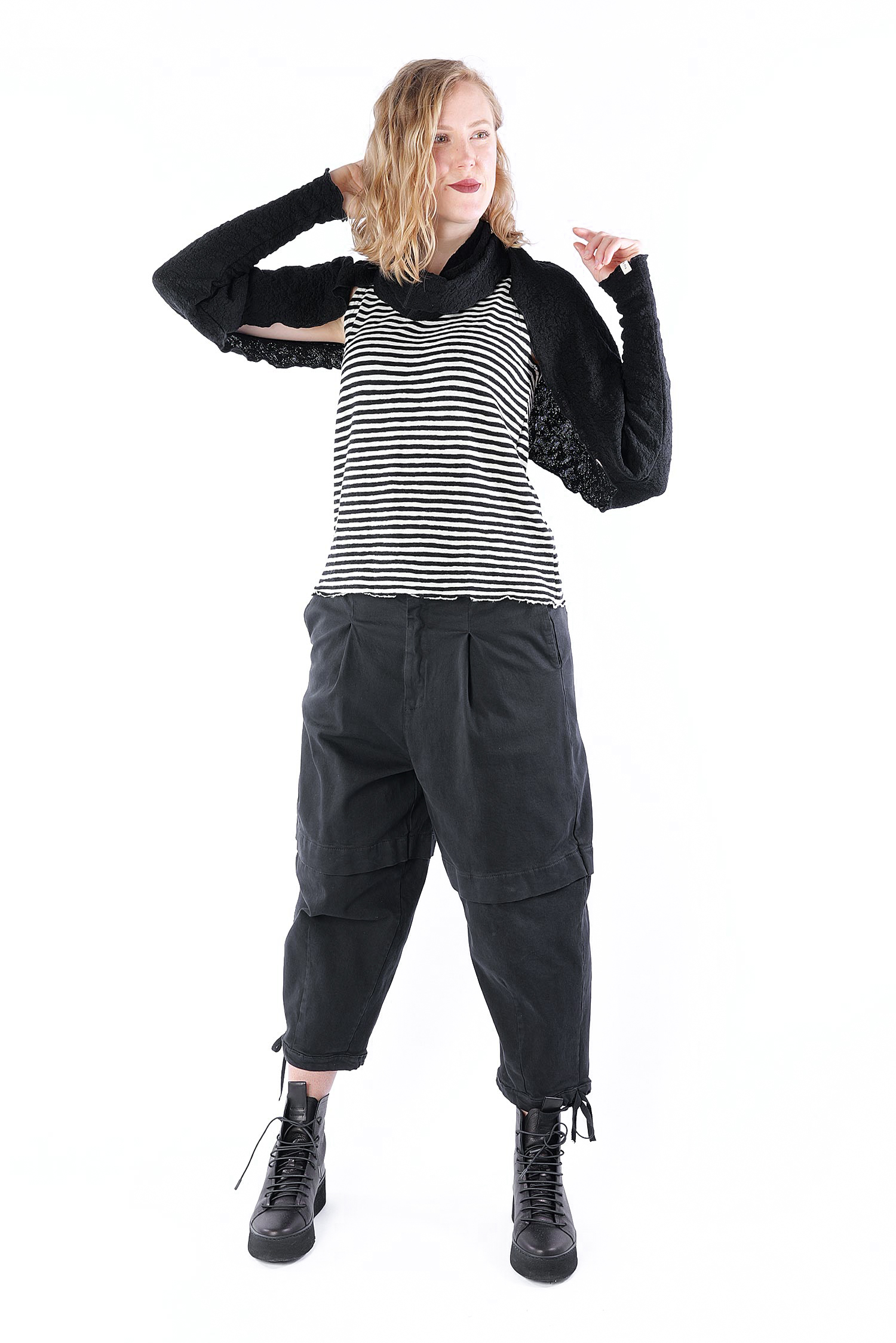 Kurzer Schurwolle Pullover - Schwarz - 2253890718