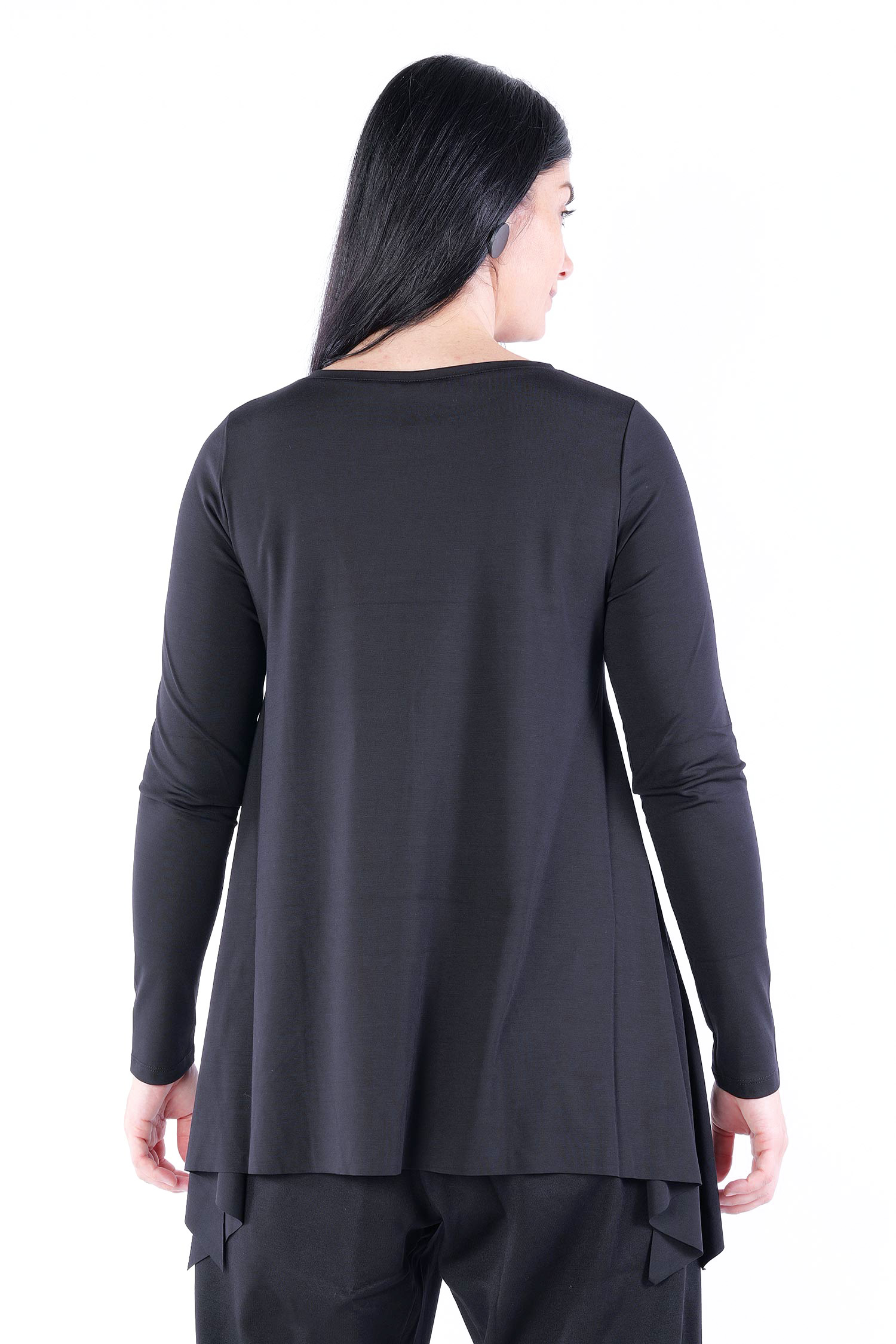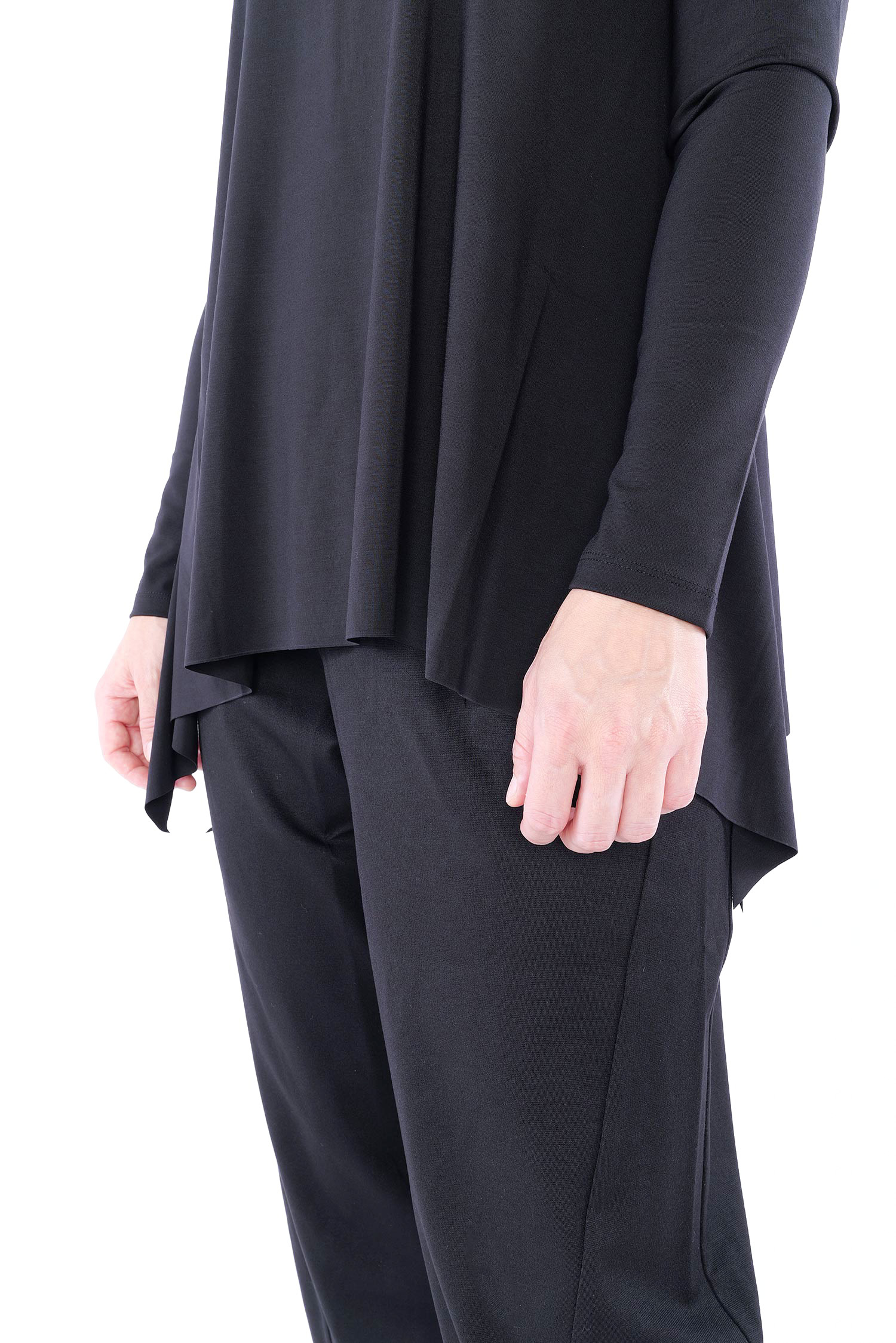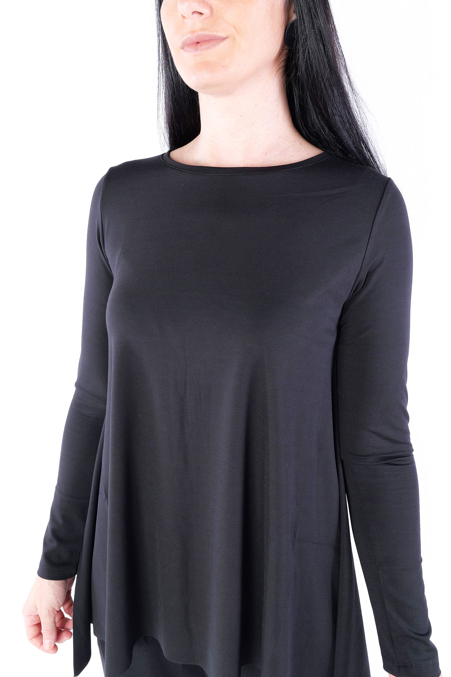 Details: - Very smooth jersey with cool feel - Round neck - Cut at the side - Long sleeves - Open edges and hem - A-line