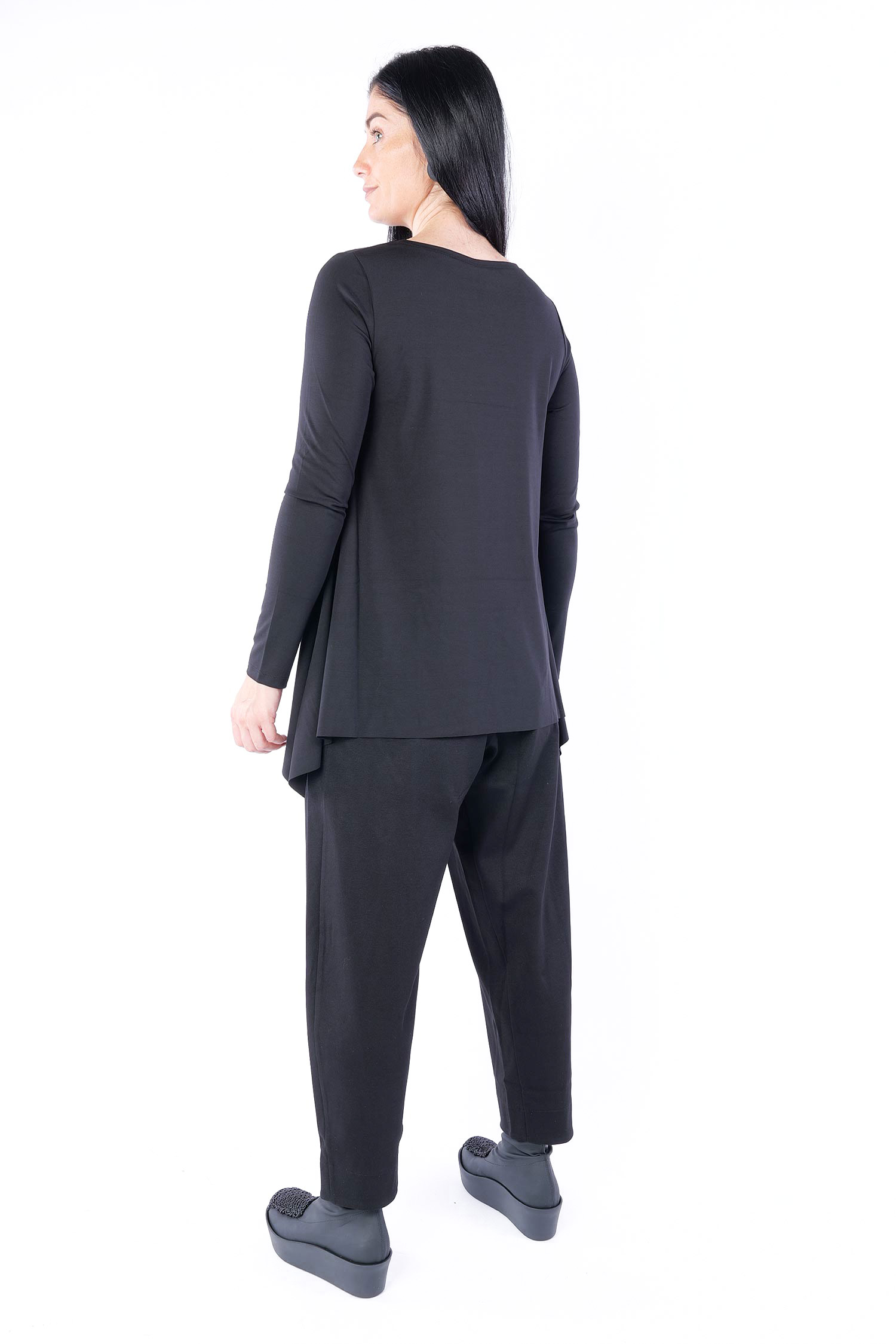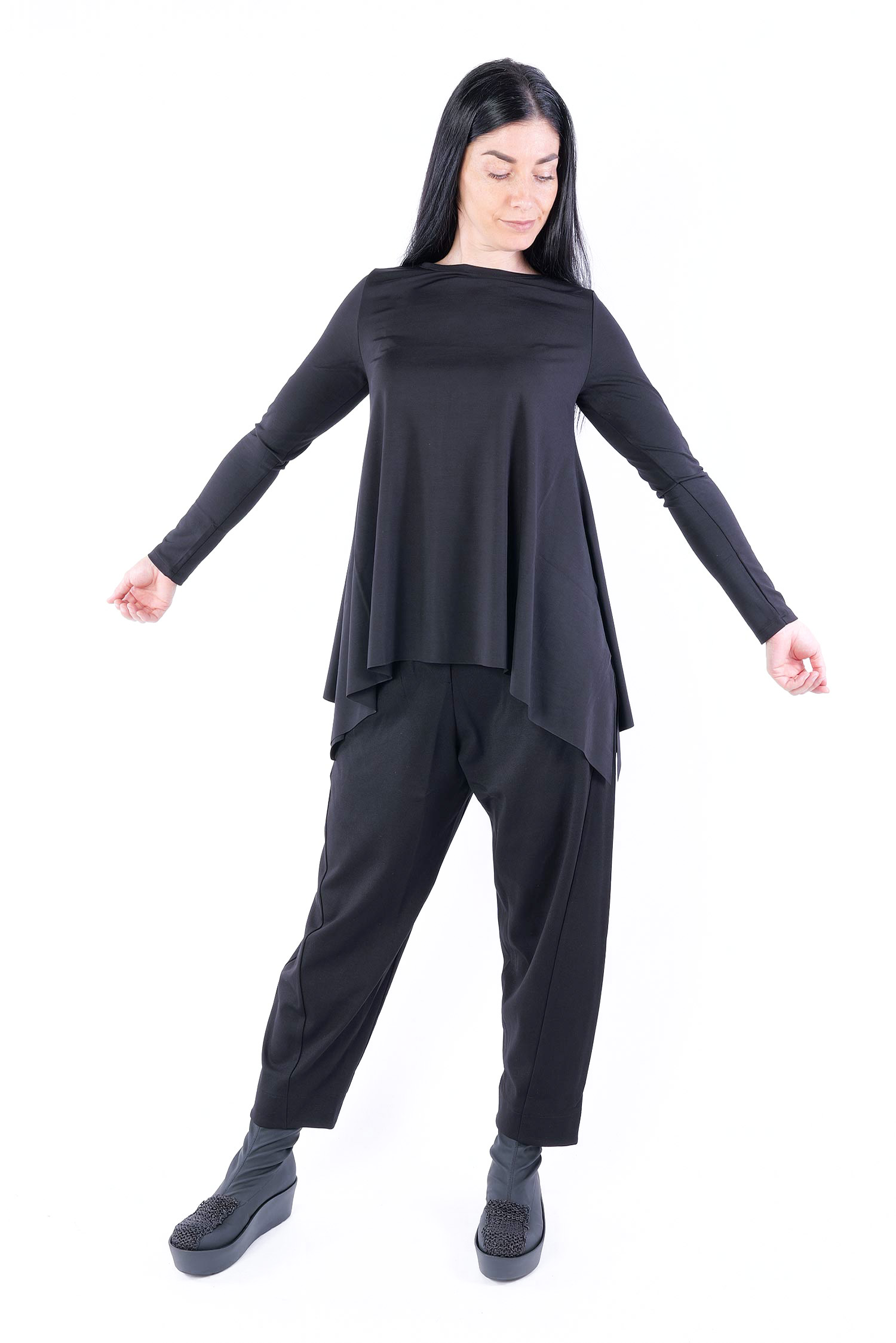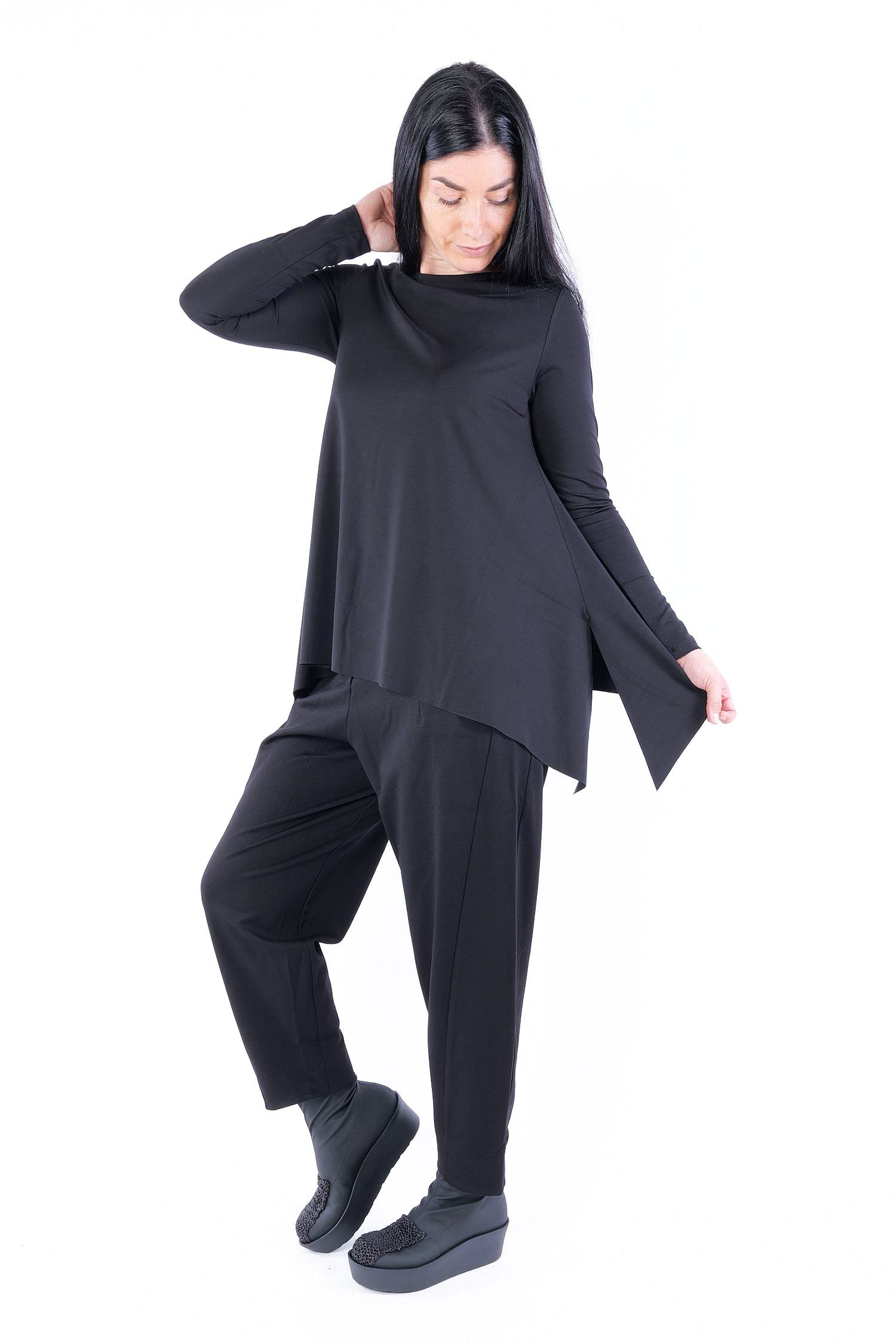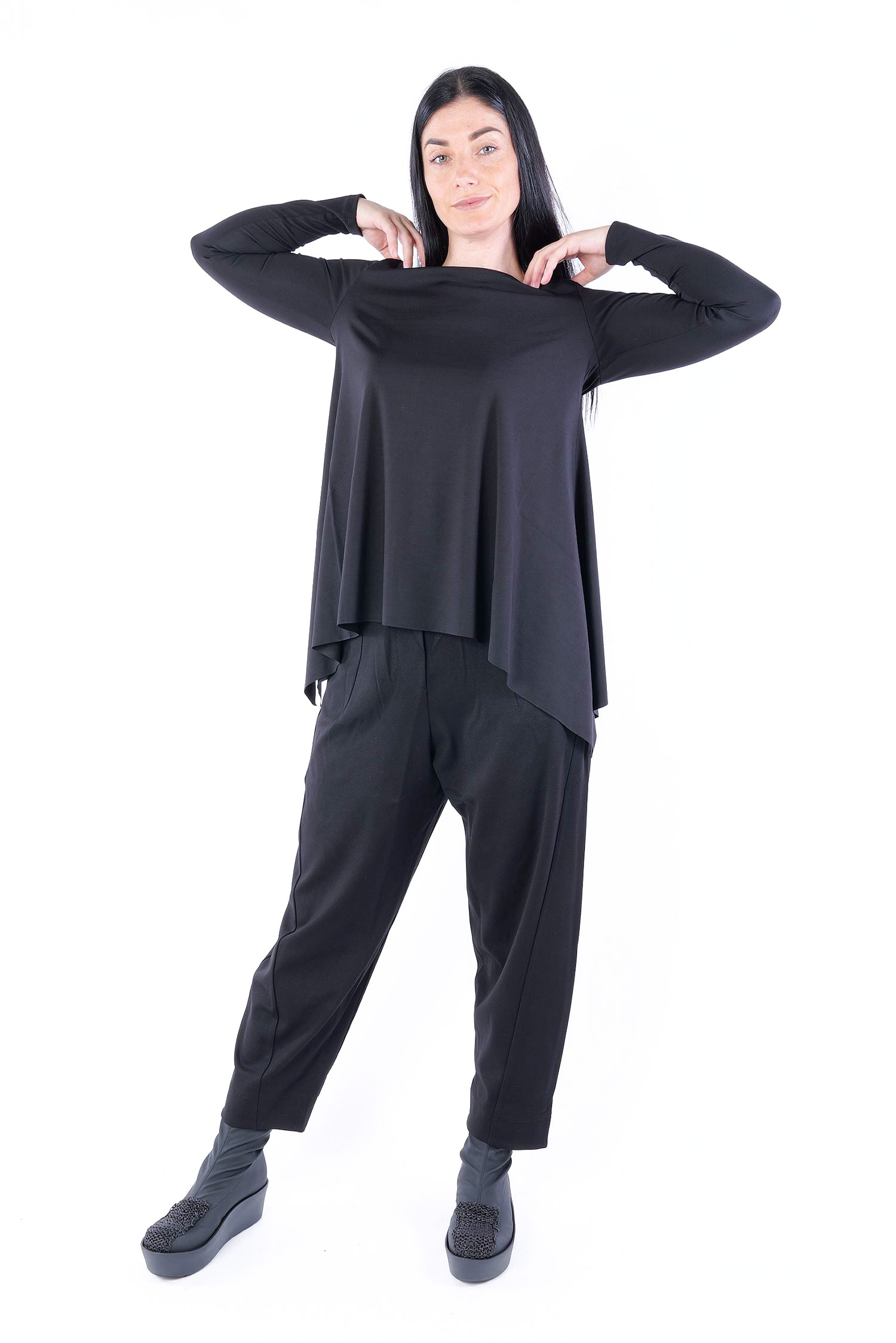 Details: - Very smooth jersey with cool feel - Round neck - Cut at the side - Long sleeves - Open edges and hem - A-line