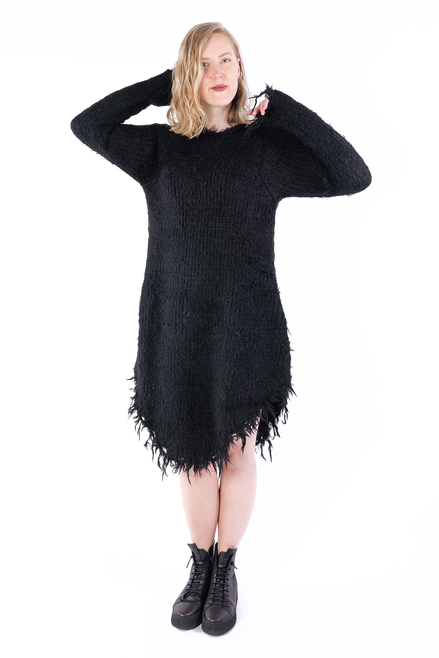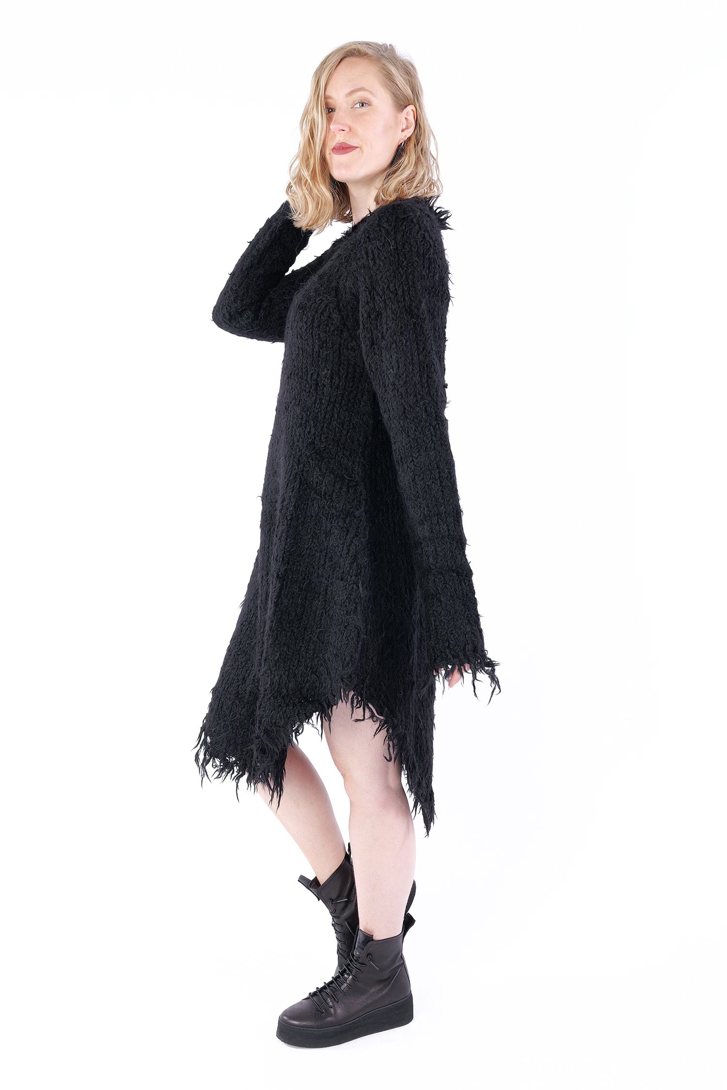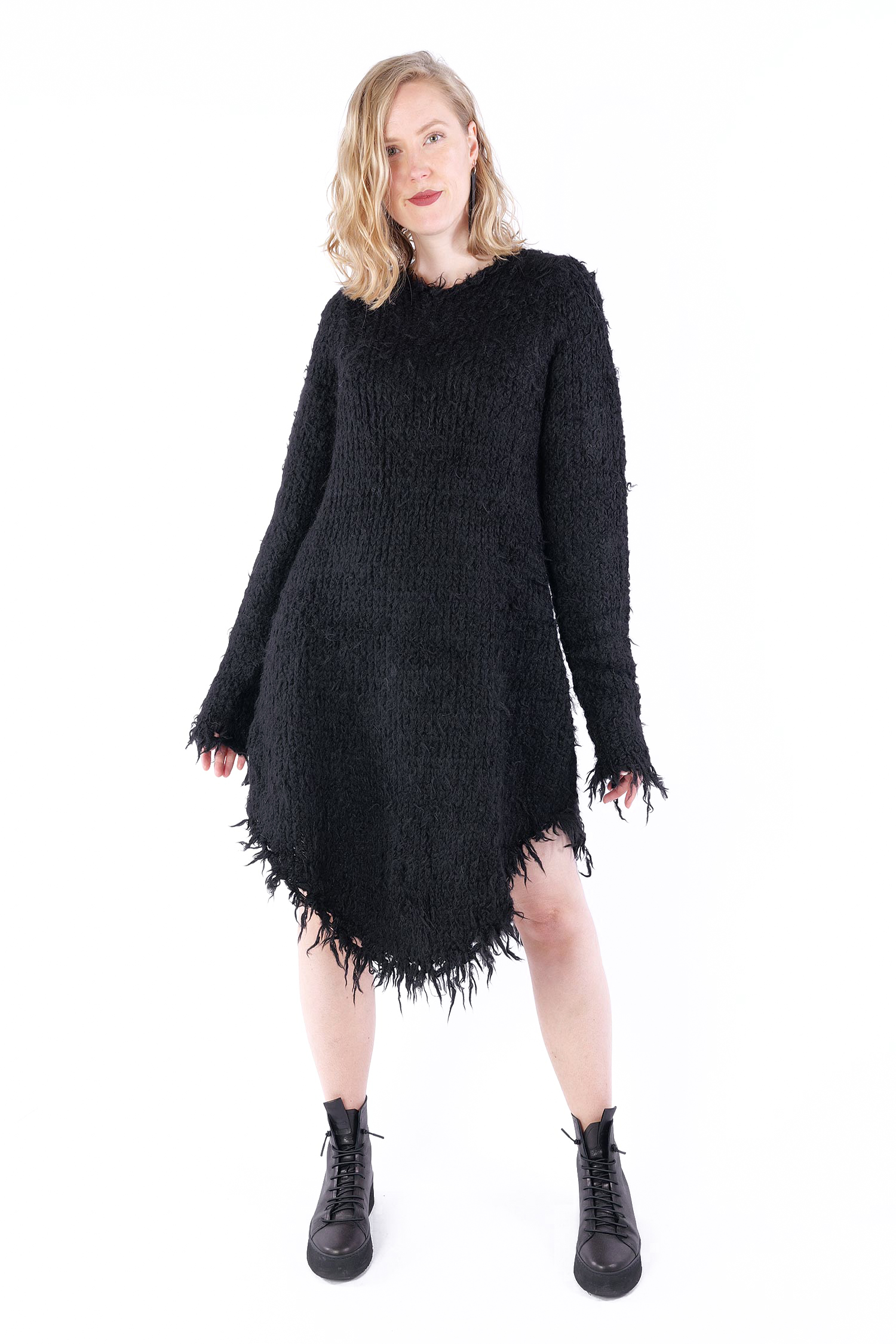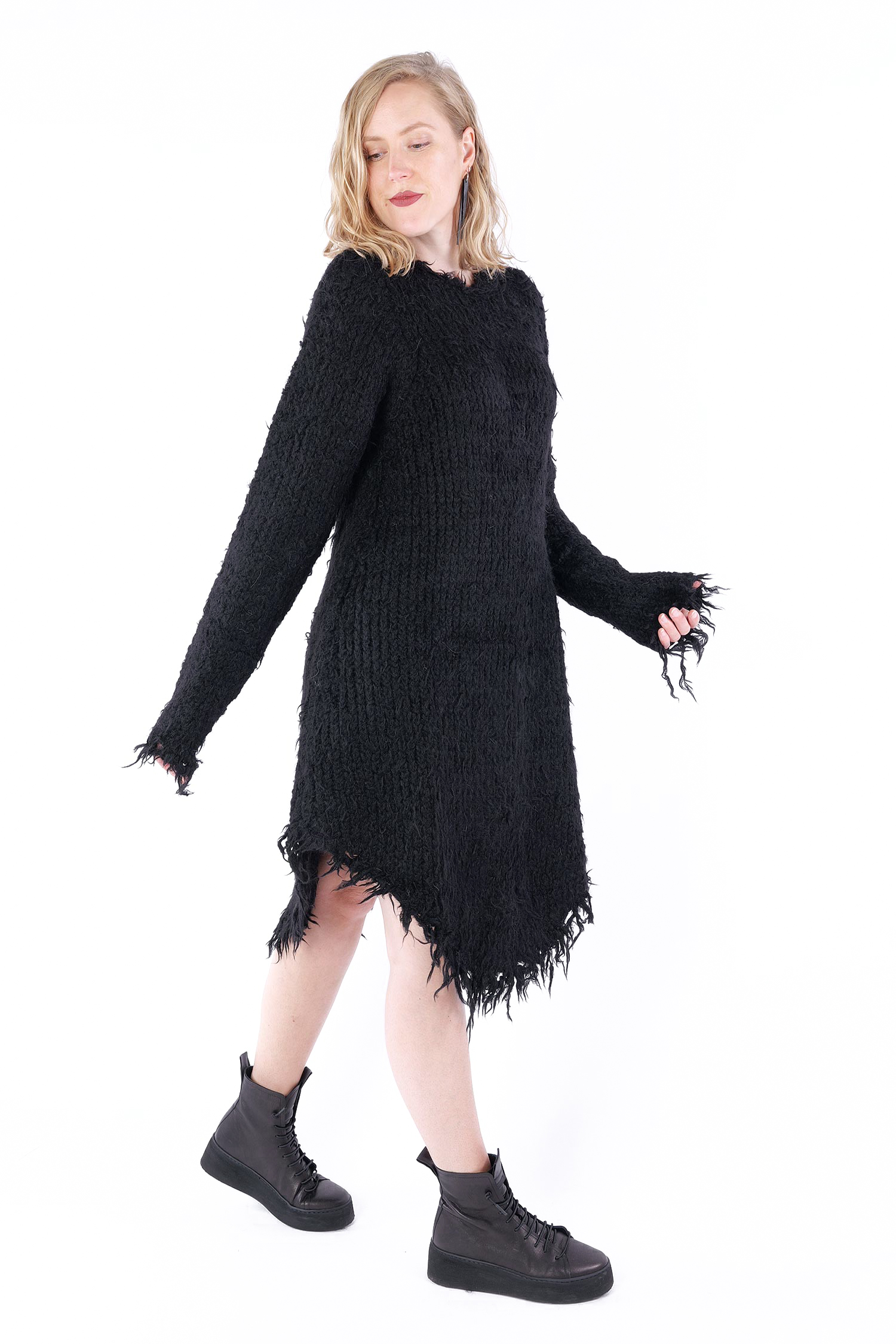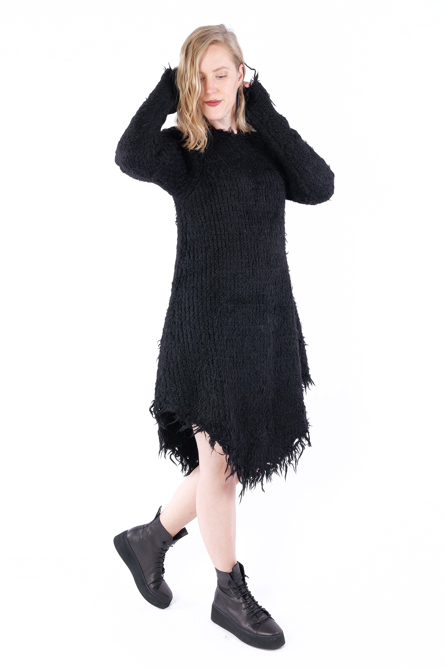 Chunky knit dress with asymmetrical hem by Rundholz.