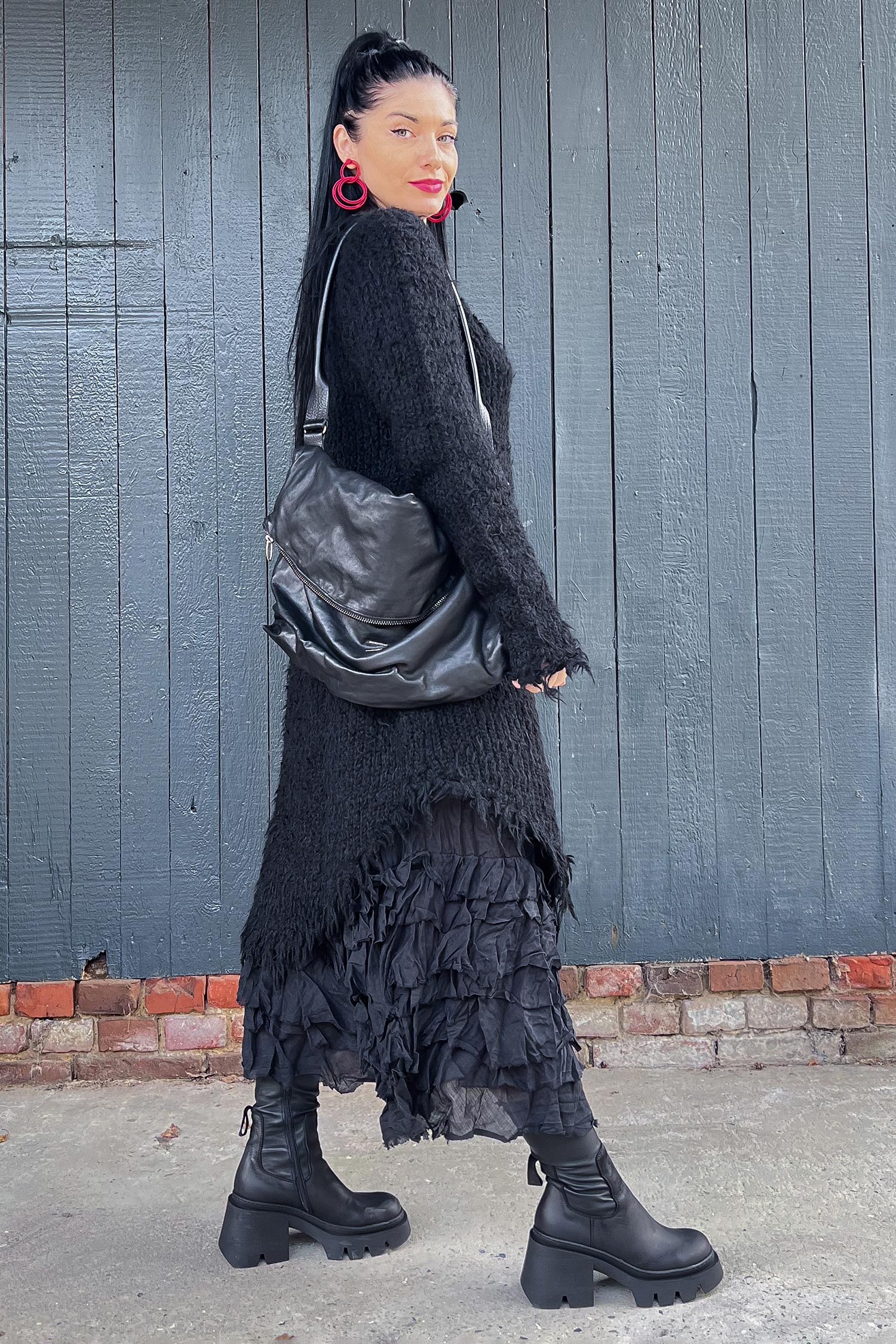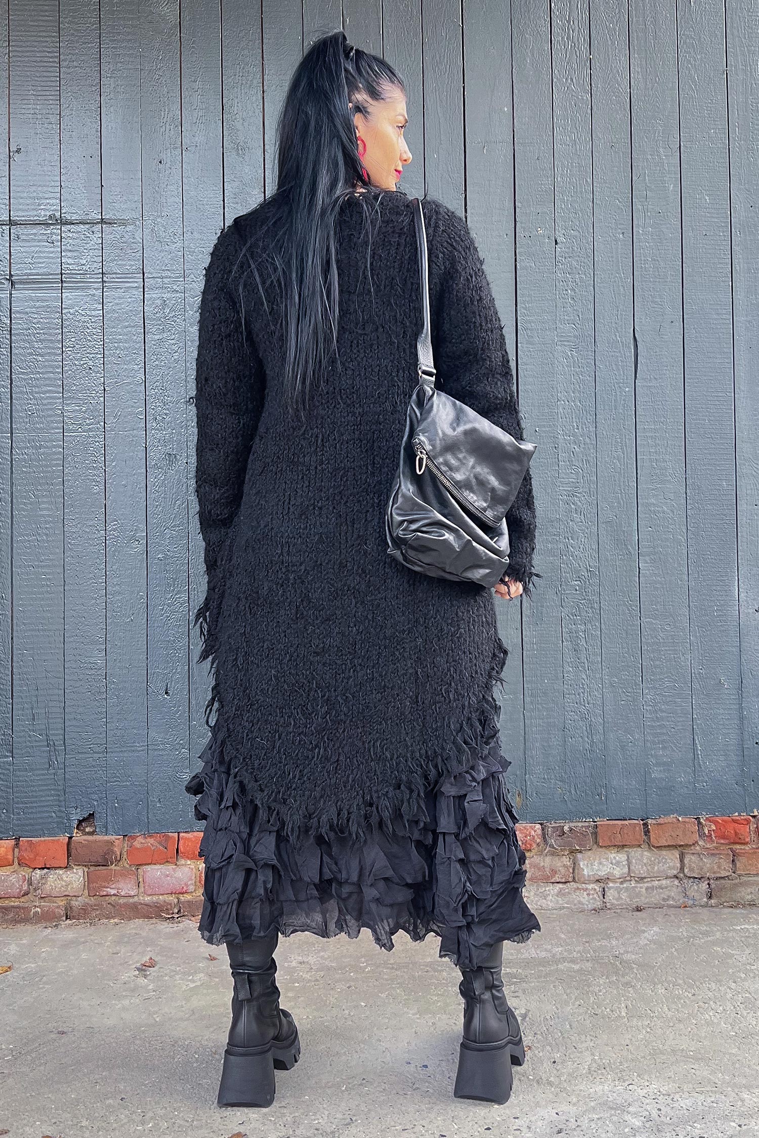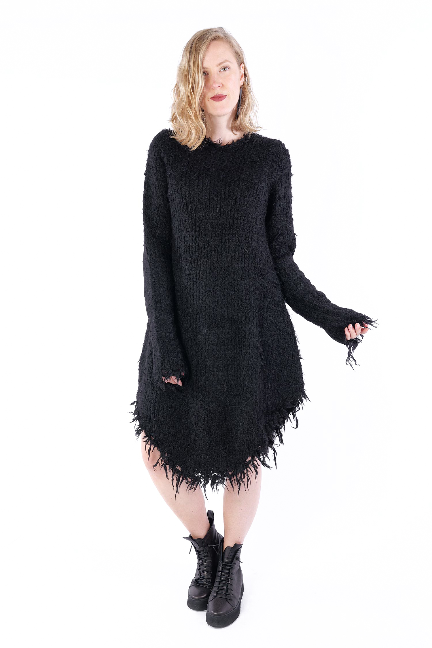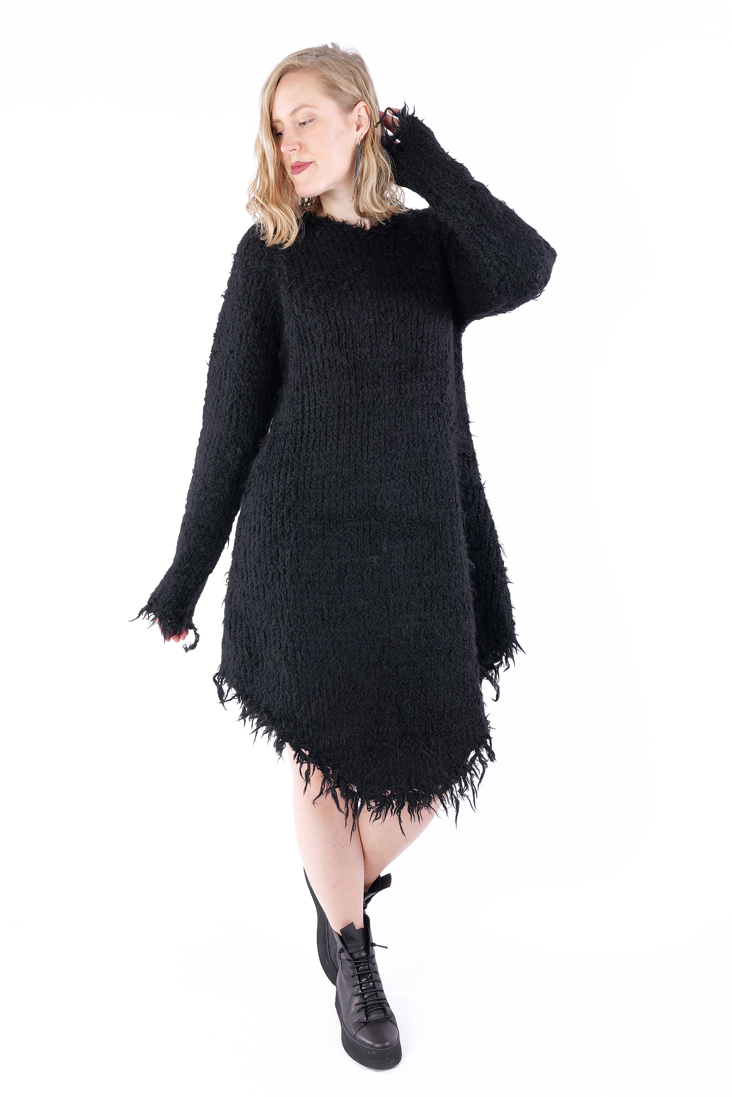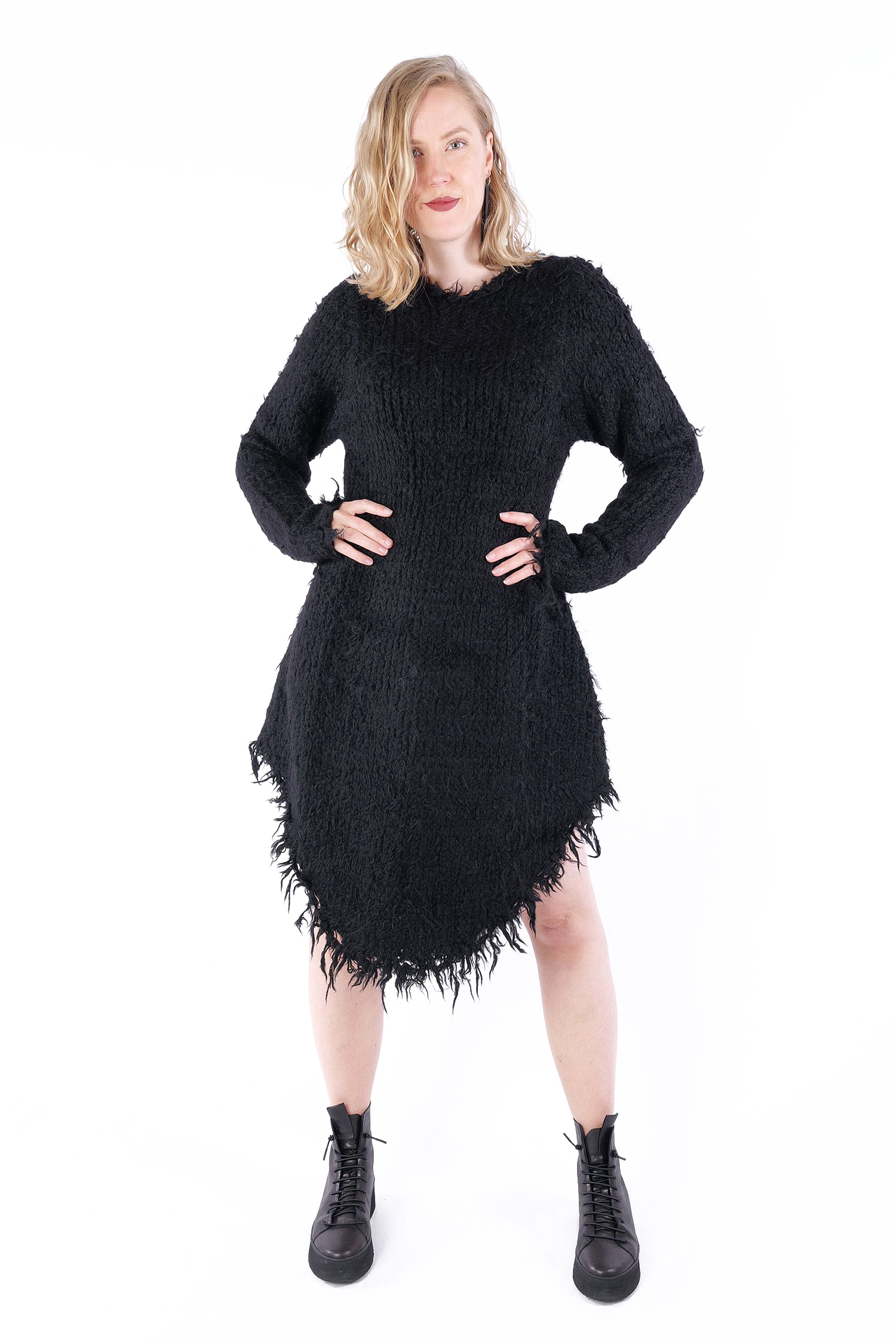 Chunky knit dress with asymmetrical hem by Rundholz.