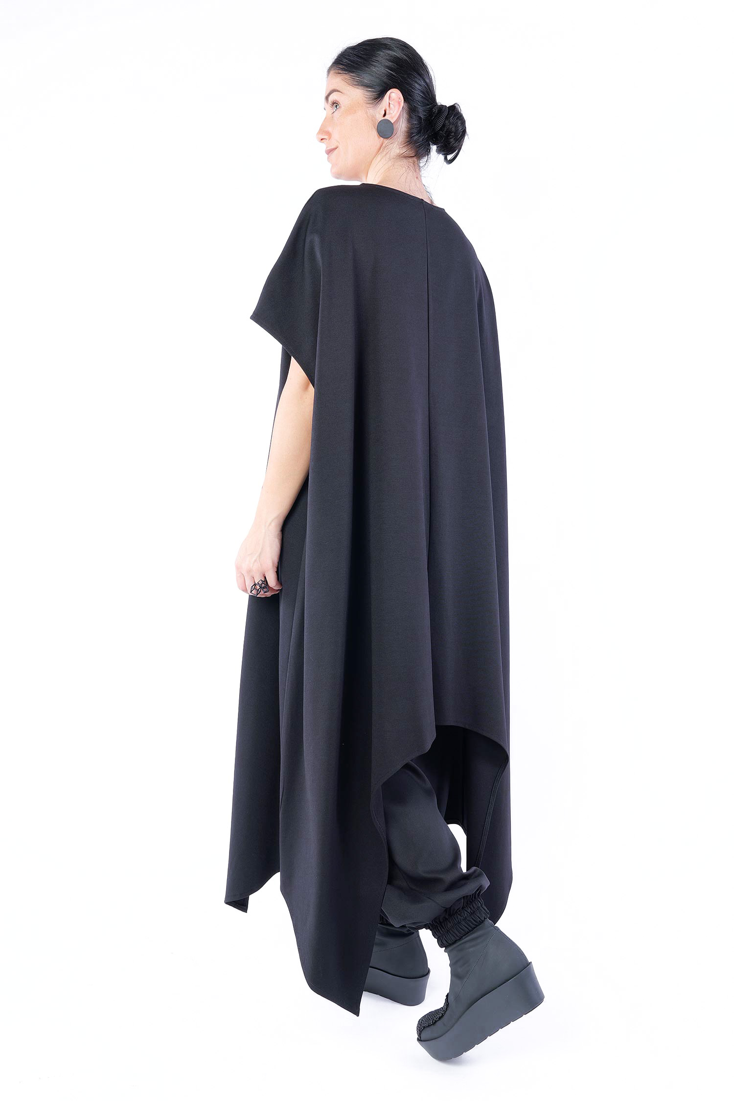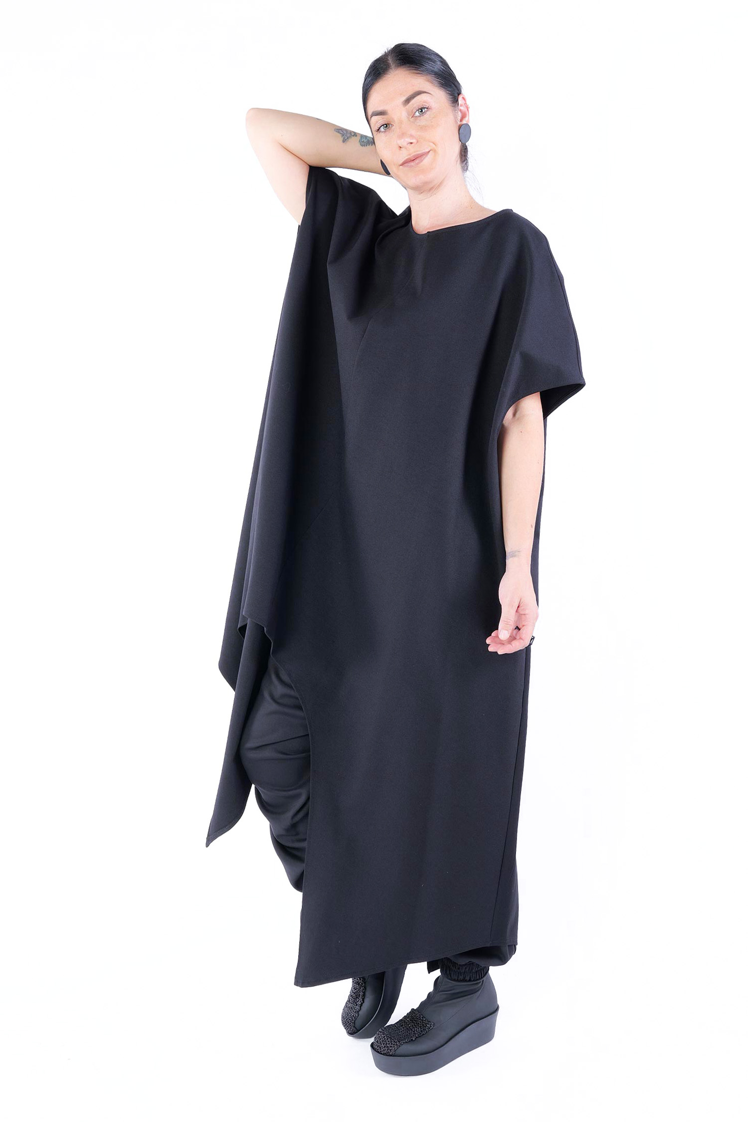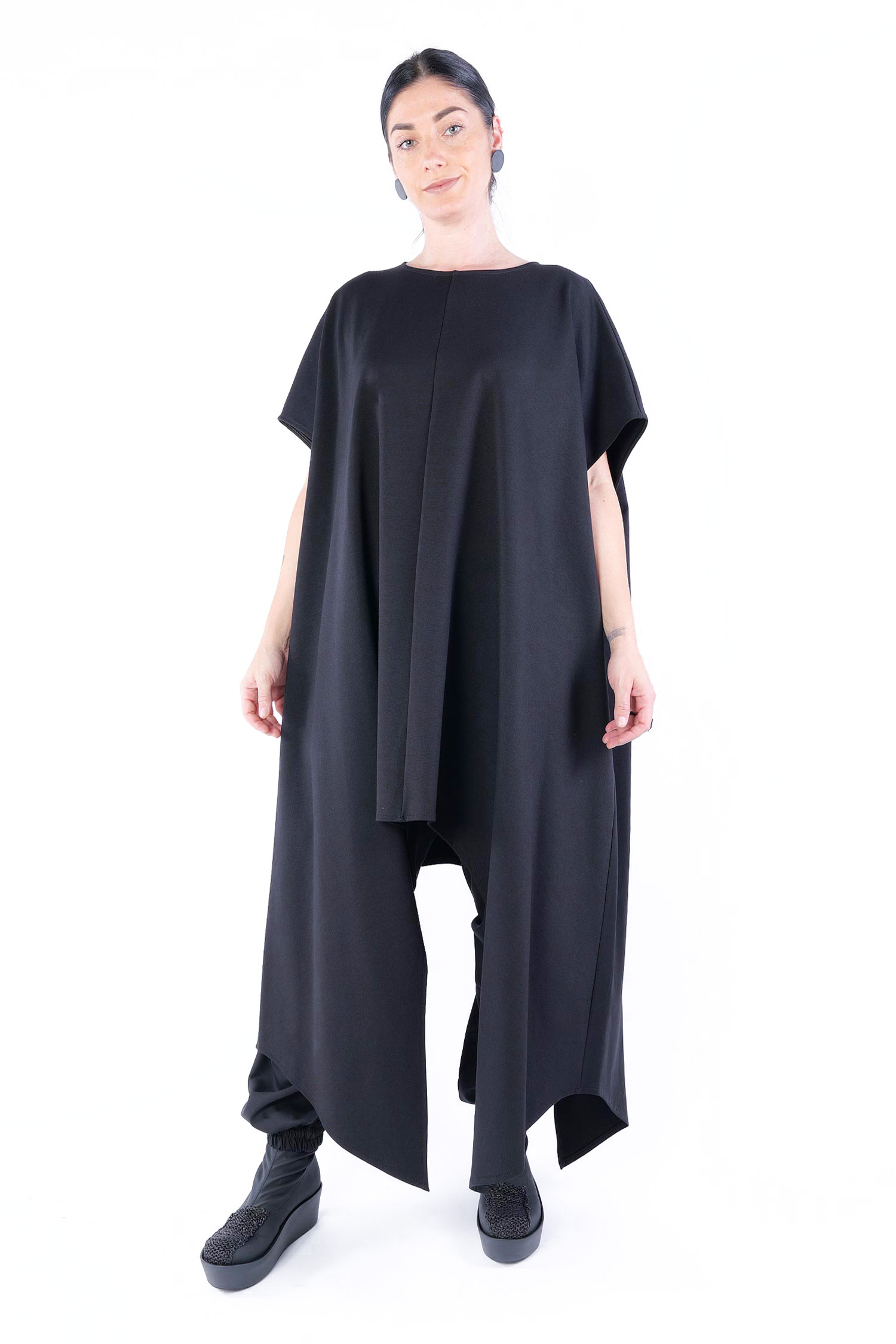 Details: - Asymmetrical cut, longer at the side - Short sleeves, therefor extended shoulder - Oversize cut - Round neck - Decorative seam at central front and back side - Trimmed edges - Thicker and smooth sweat material
