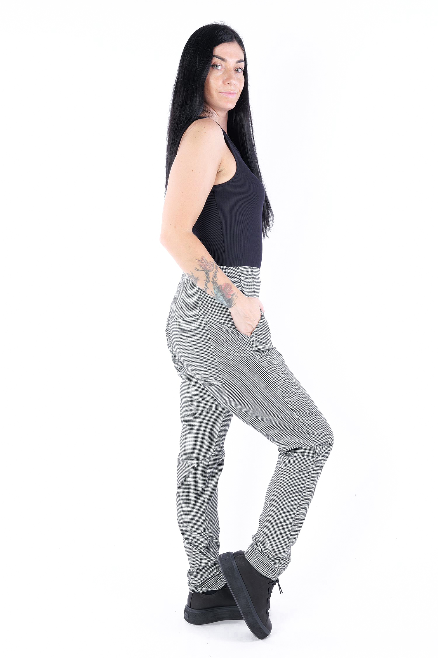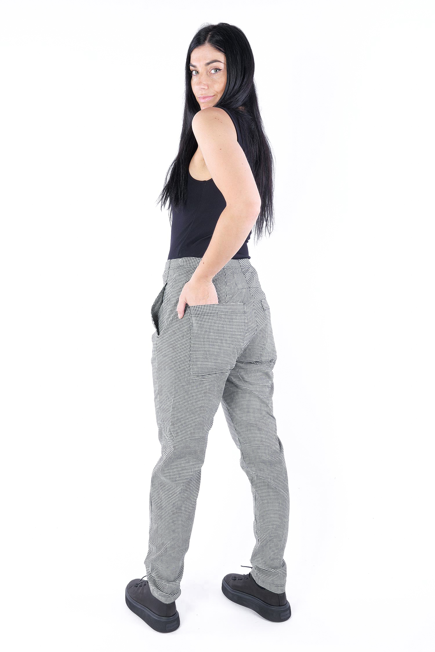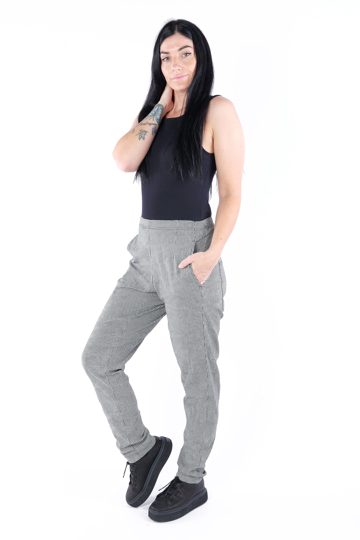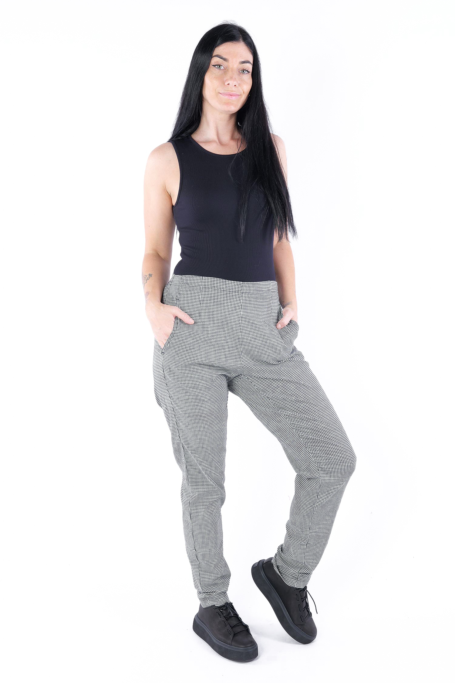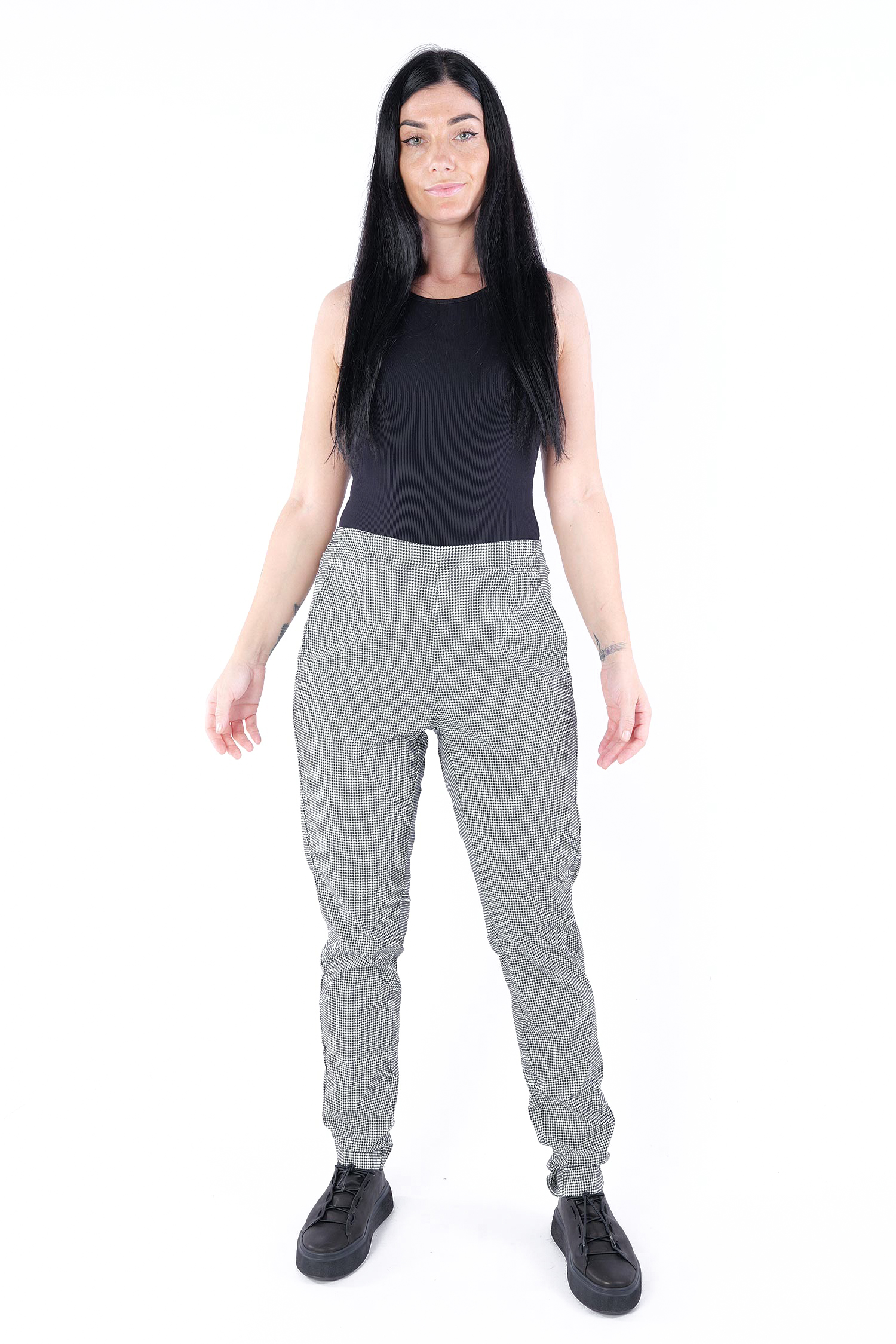 Casual stretch pants - Black offwhite check - 2253440134