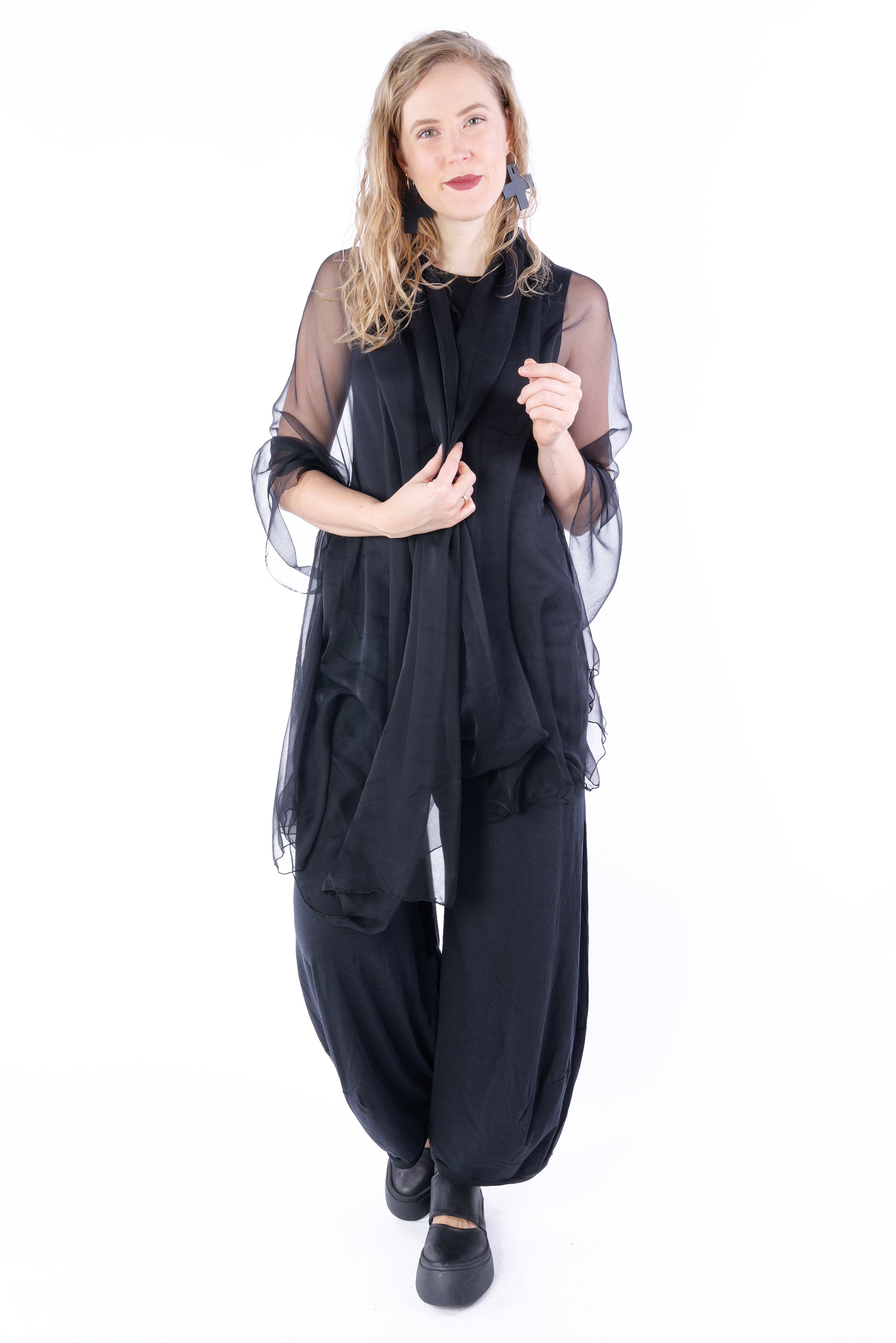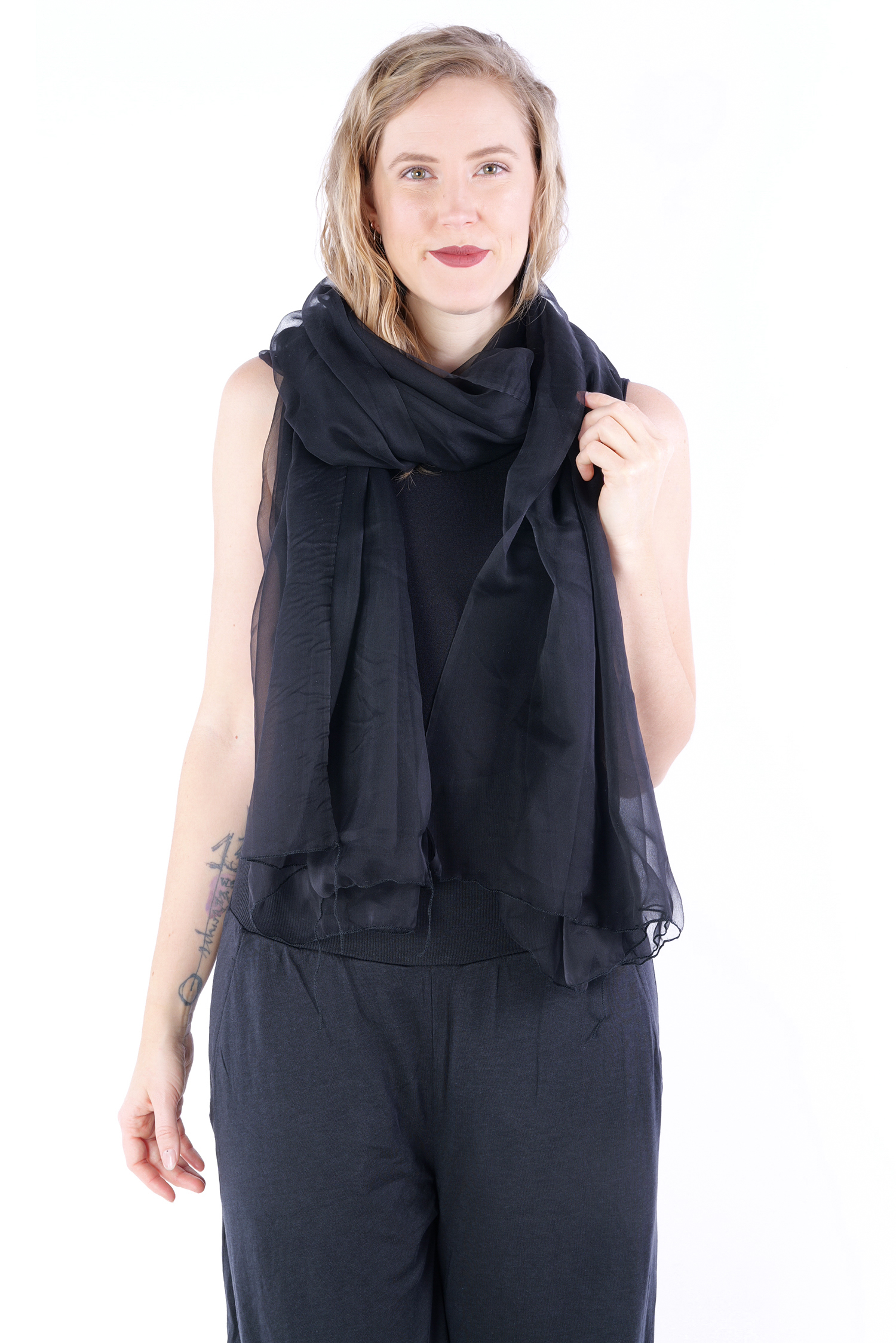 Crinkled silk scarf 90x90 - black - Dasypoda