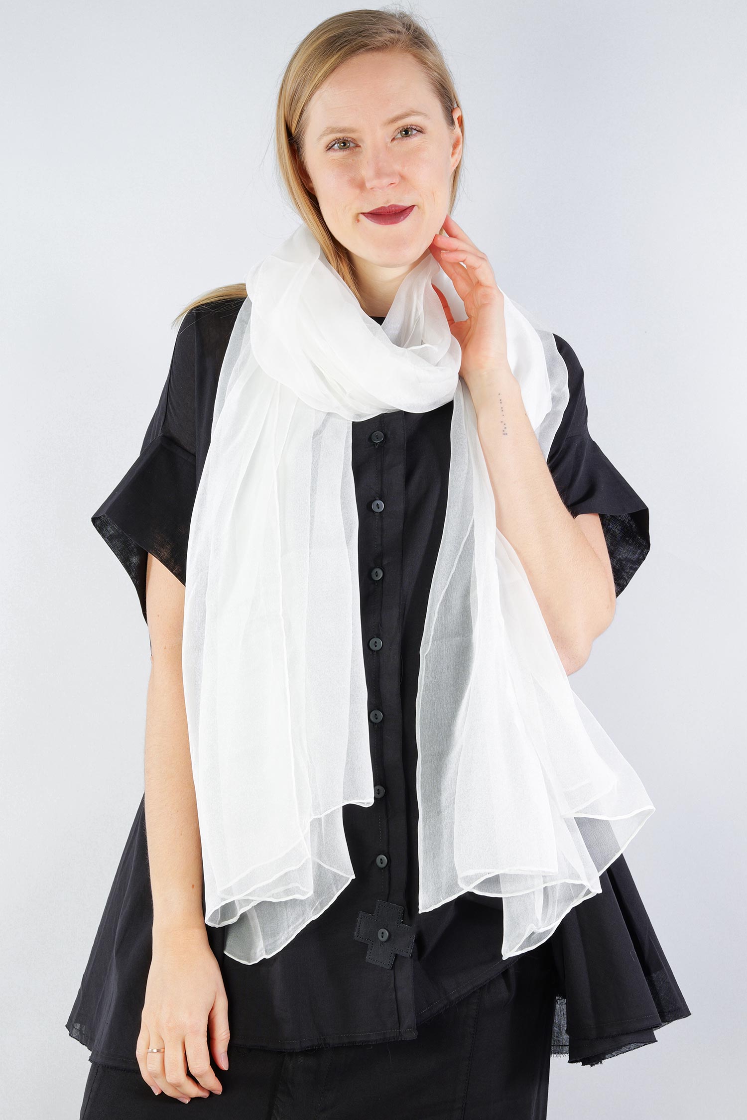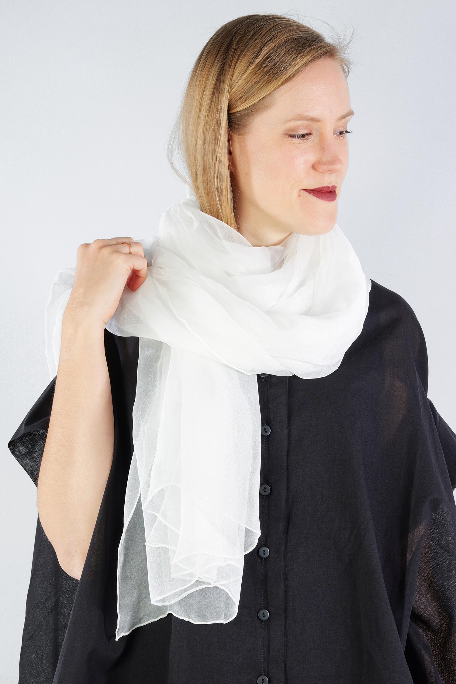 Chiffon silk scarf 220x110 - white - Plumipes
