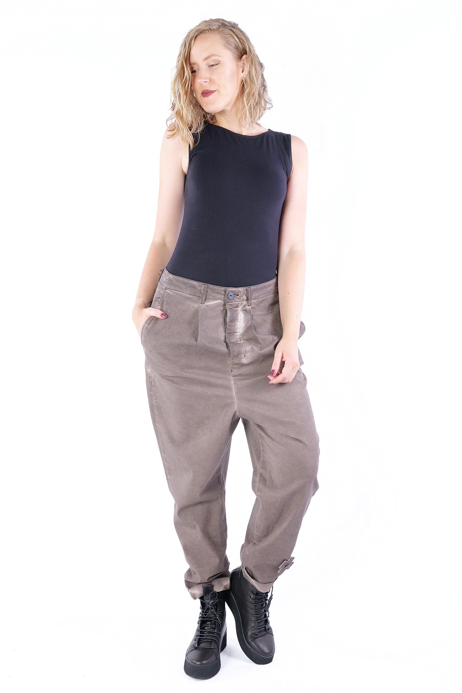 Our selection of trousers appeals to avant-garde individualists. Strong women with strong personalities wear the pants here. For every occasion and for every outfit you want to put together, we have low-crotch pants, harem pants, stretch pants made of super stretch, casual pants, skirt pants, culottes, Marlene pants and many more.
