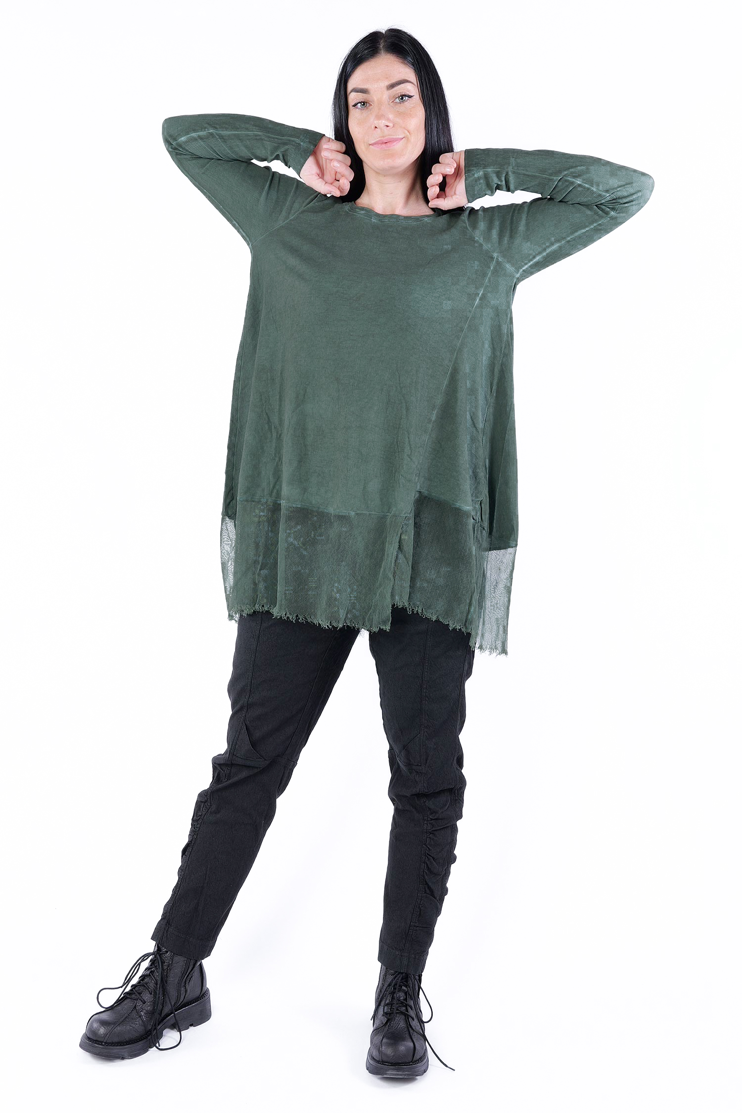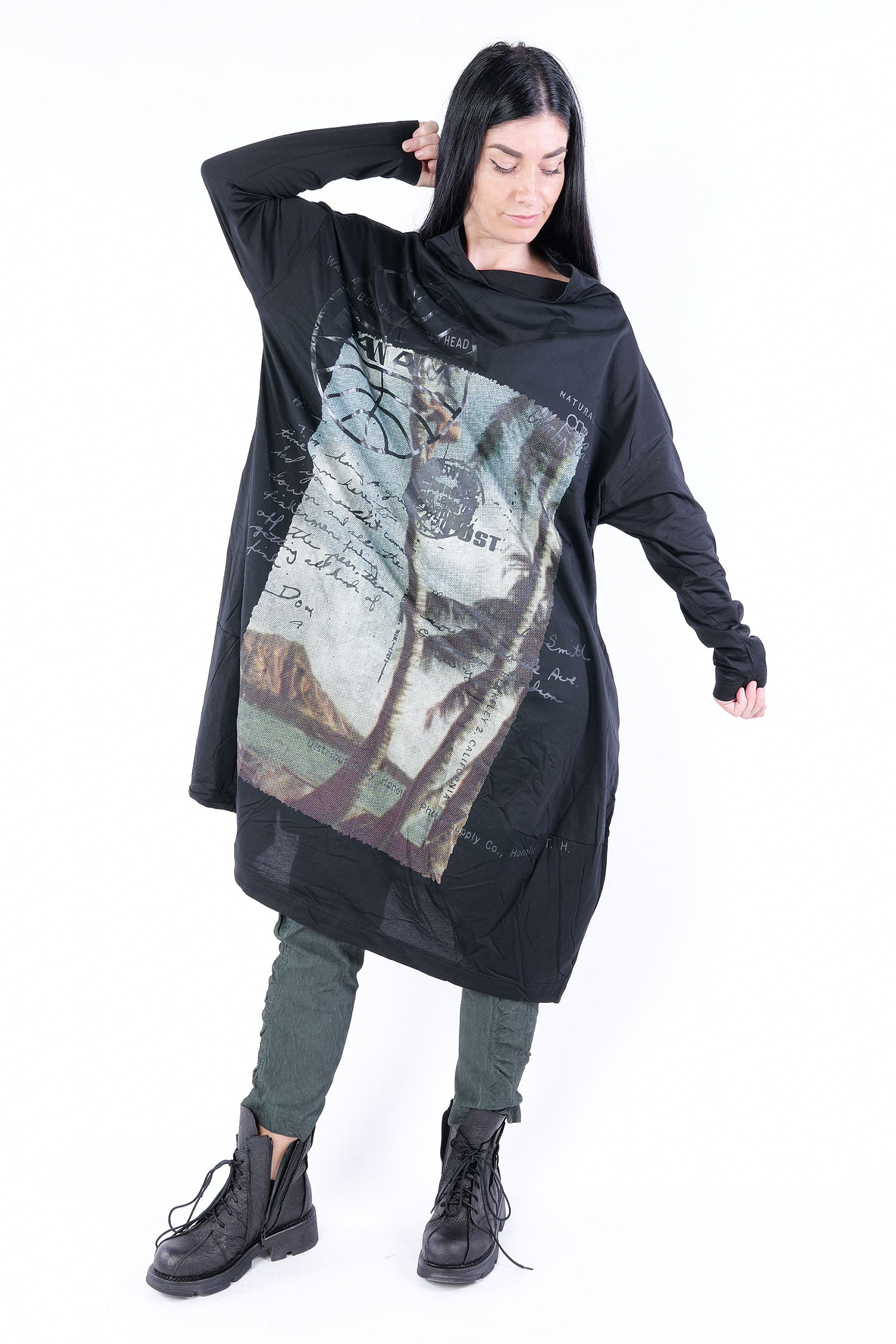 The concept of the tunic as a piece of clothing has been around for as long as humans have been wearing clothes. The fact that the tunic is still very popular today speaks for its versatility and comfort. Selected fabrics, great prints and extravagant designs make our tunics absolute favorite pieces. The difference between a tunic and a dress is fluid in some models, especially in the more classic designs. In our tunic category you will find tops with oversize cuts in predominantly hip to knee length. Tulip cuts from PLÜ Pluslavie or a stretch tunic or knitted tunic from Rundholz. Oversize, onesize and sleeveless dresses with and without print. With elegant styles, boxy cuts and a flowing A-line, the fashion classic is light and airy and can be worn alone or in an exciting combination.