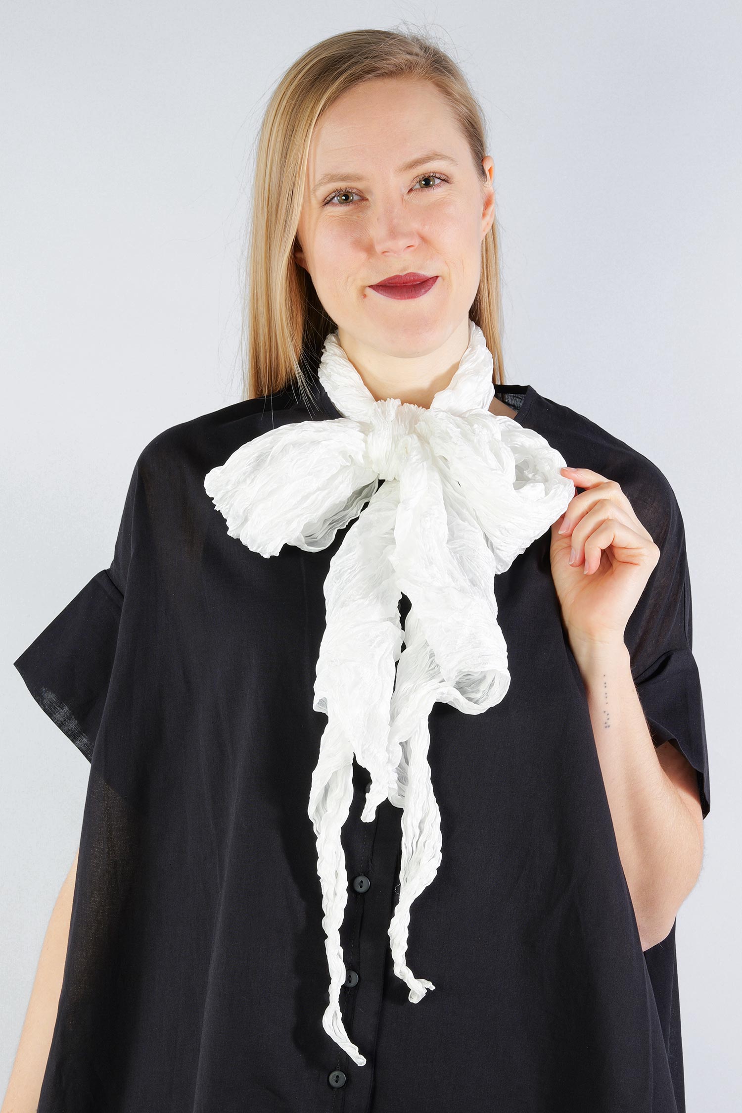 To achieve a crinkled look, twist the scarf like a cord and let it dry