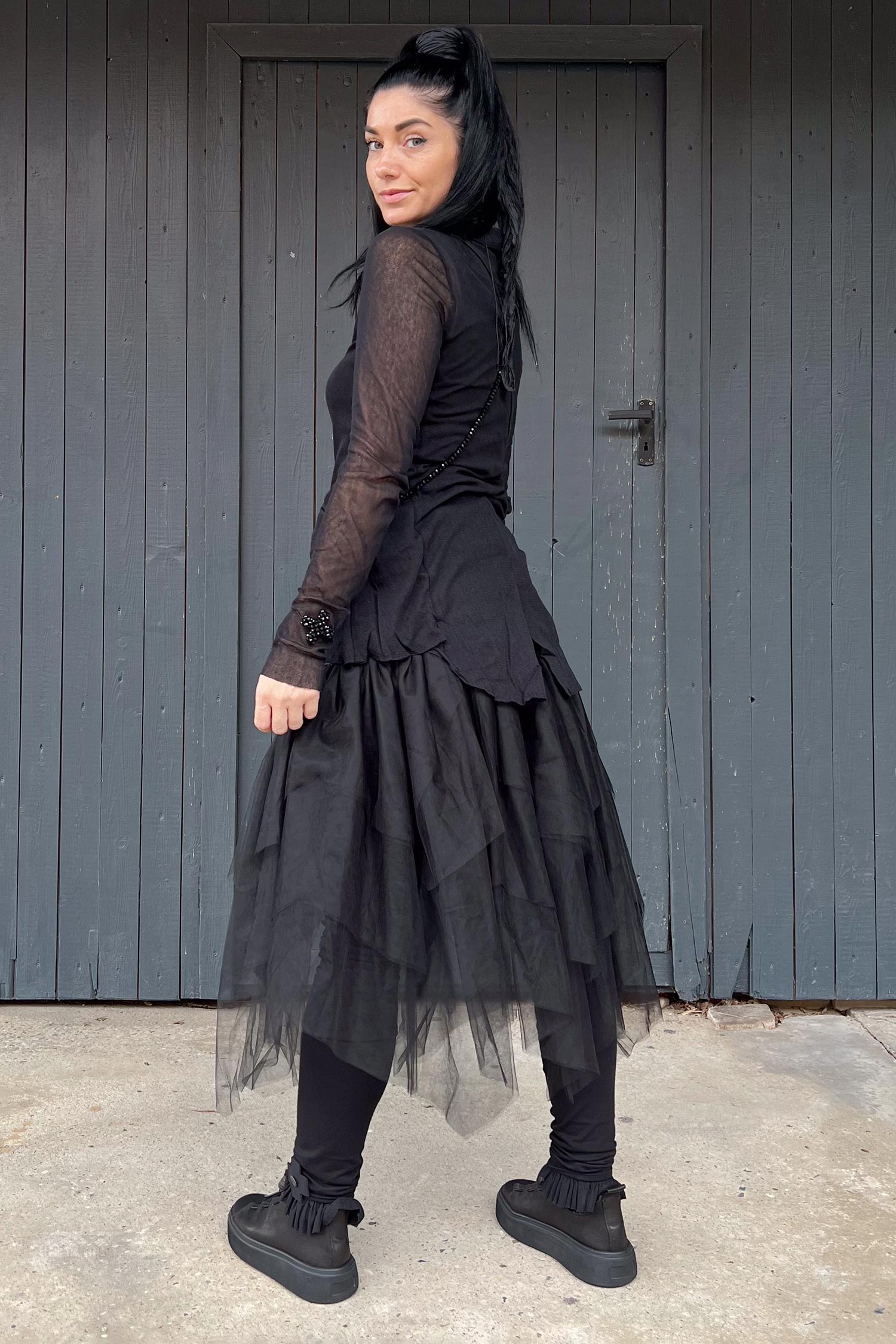 Size XS: Waist unstretched = 38 cm, stretched = 42 cm / Hip = 48 cm / Length = 84 cm