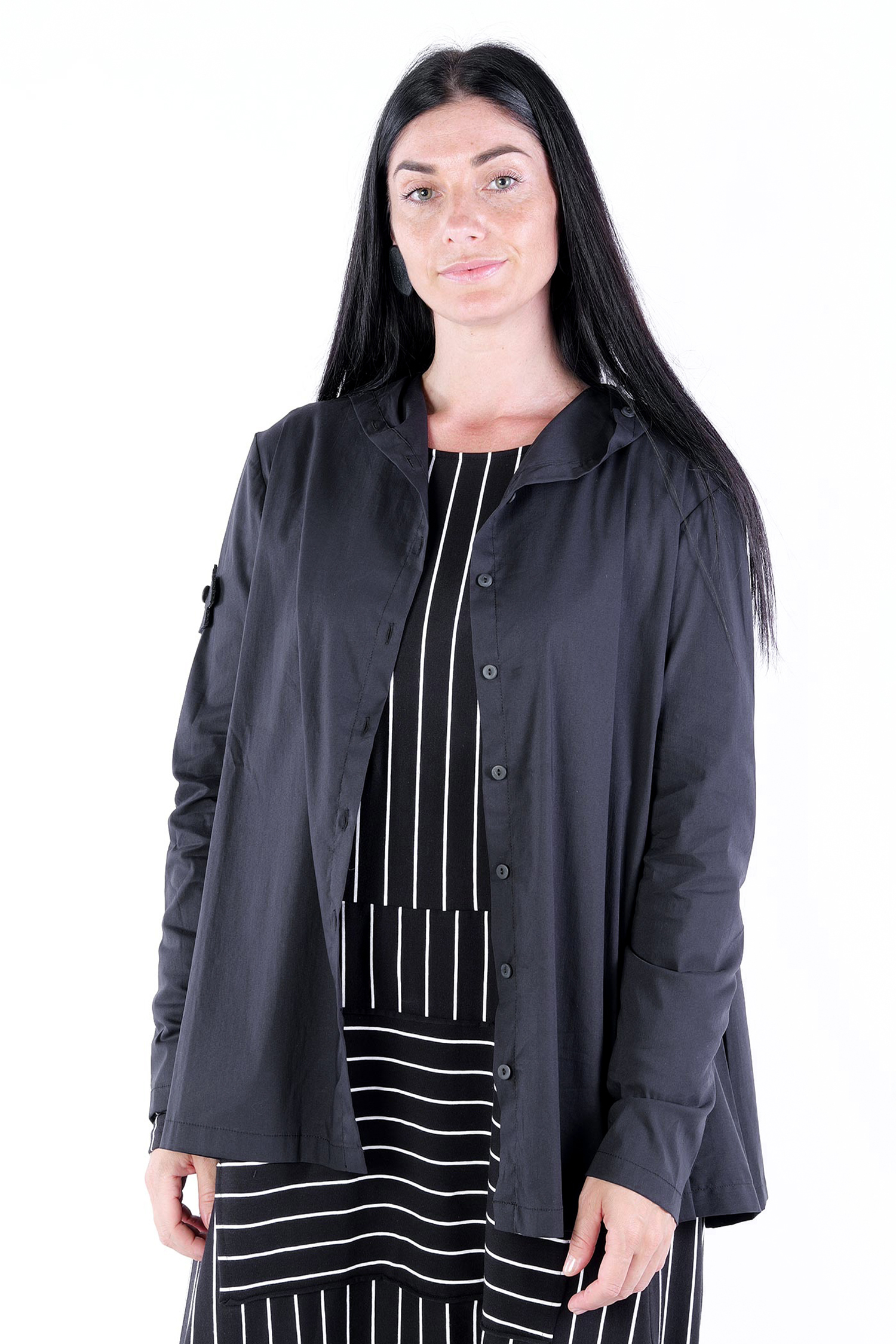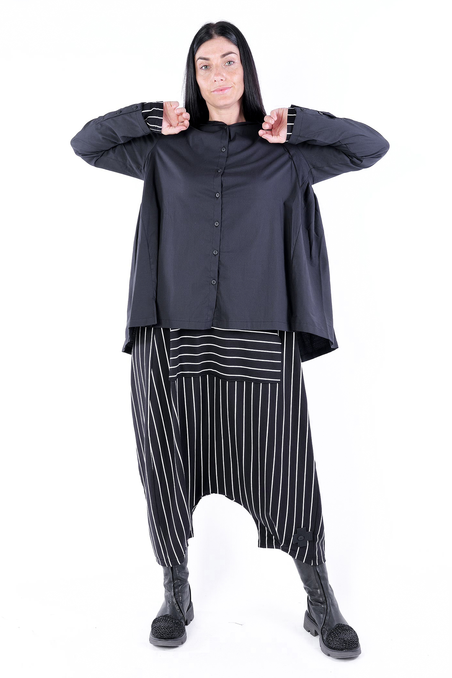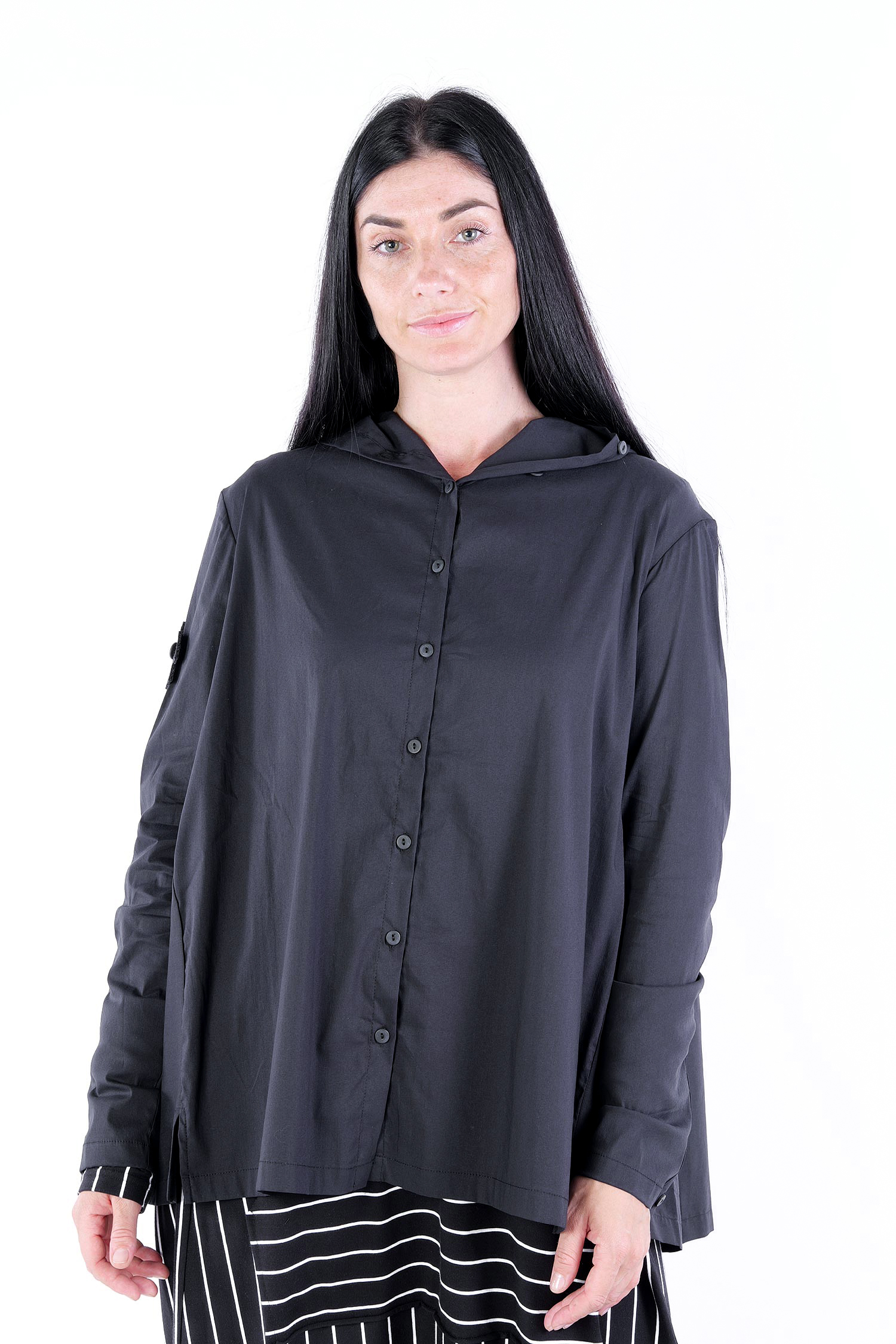 - Sleeves with cut and buttons