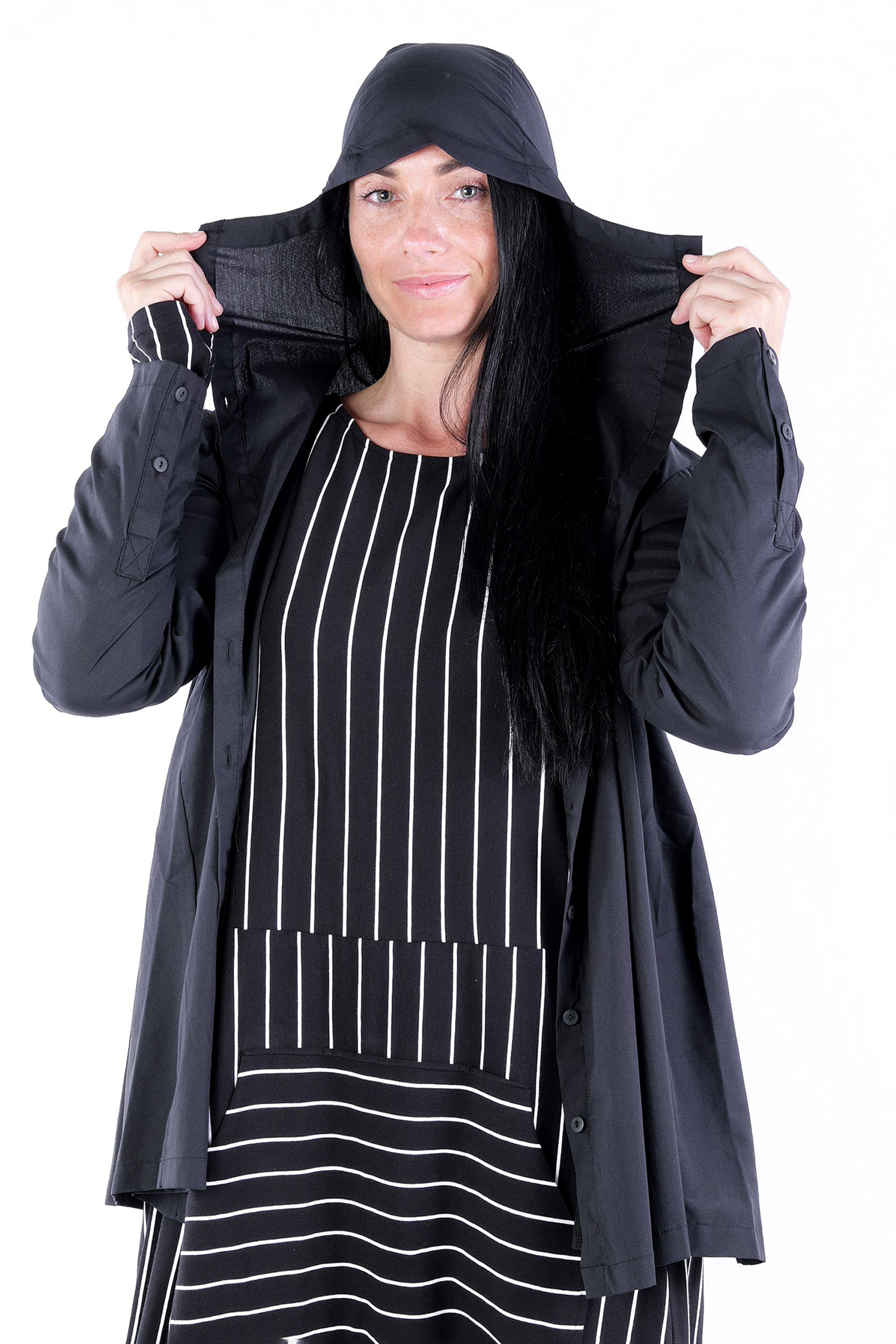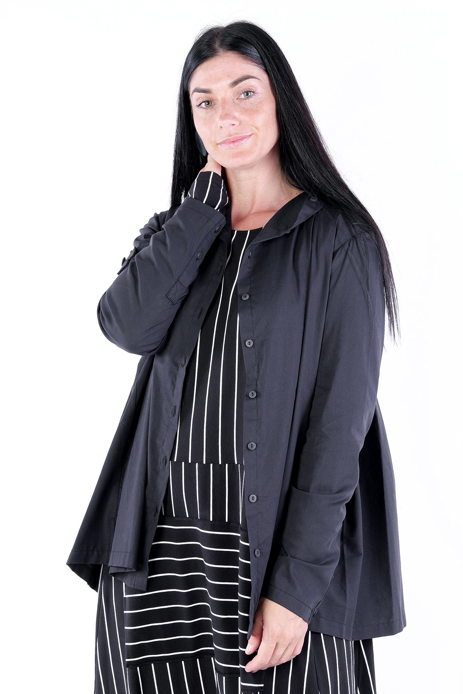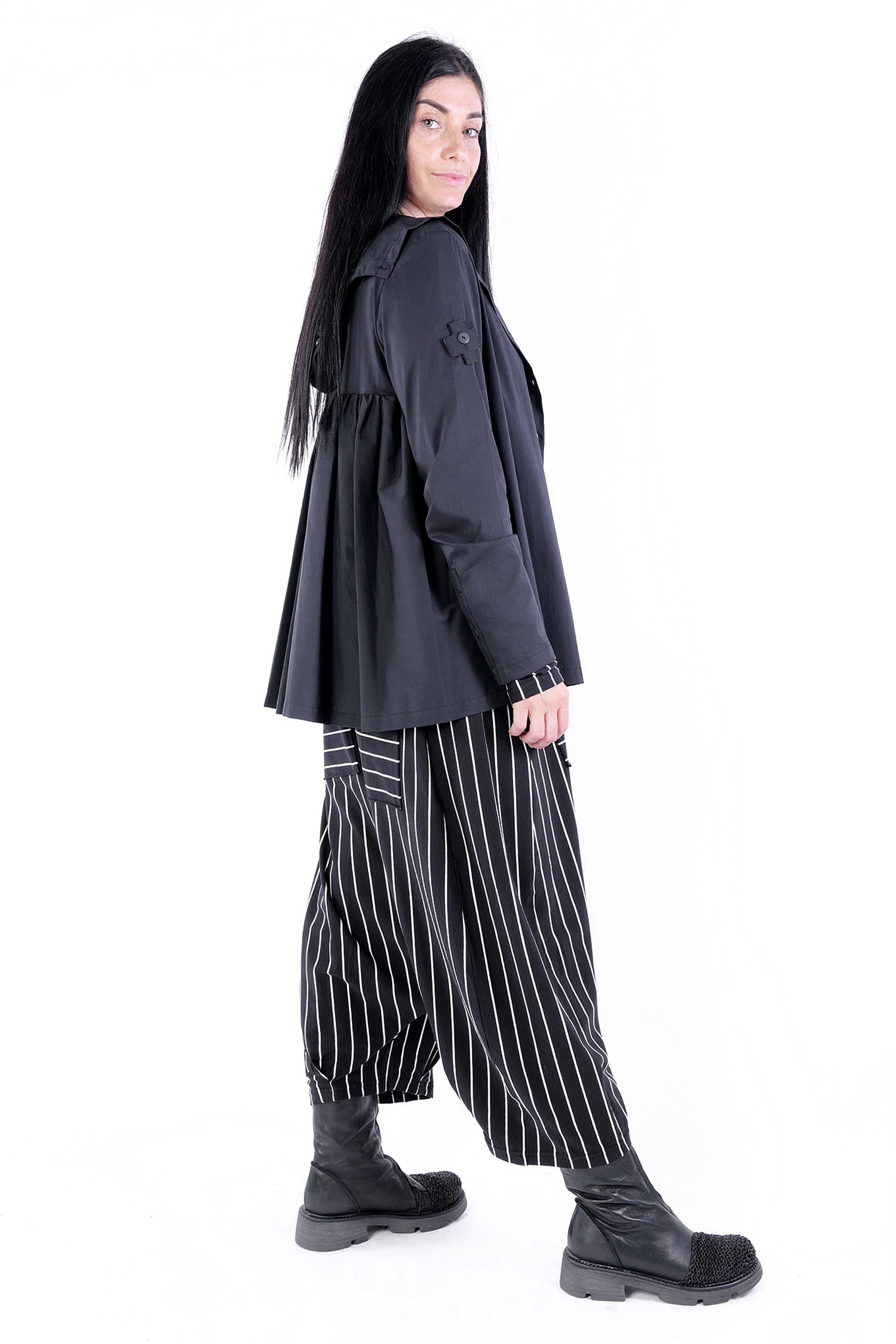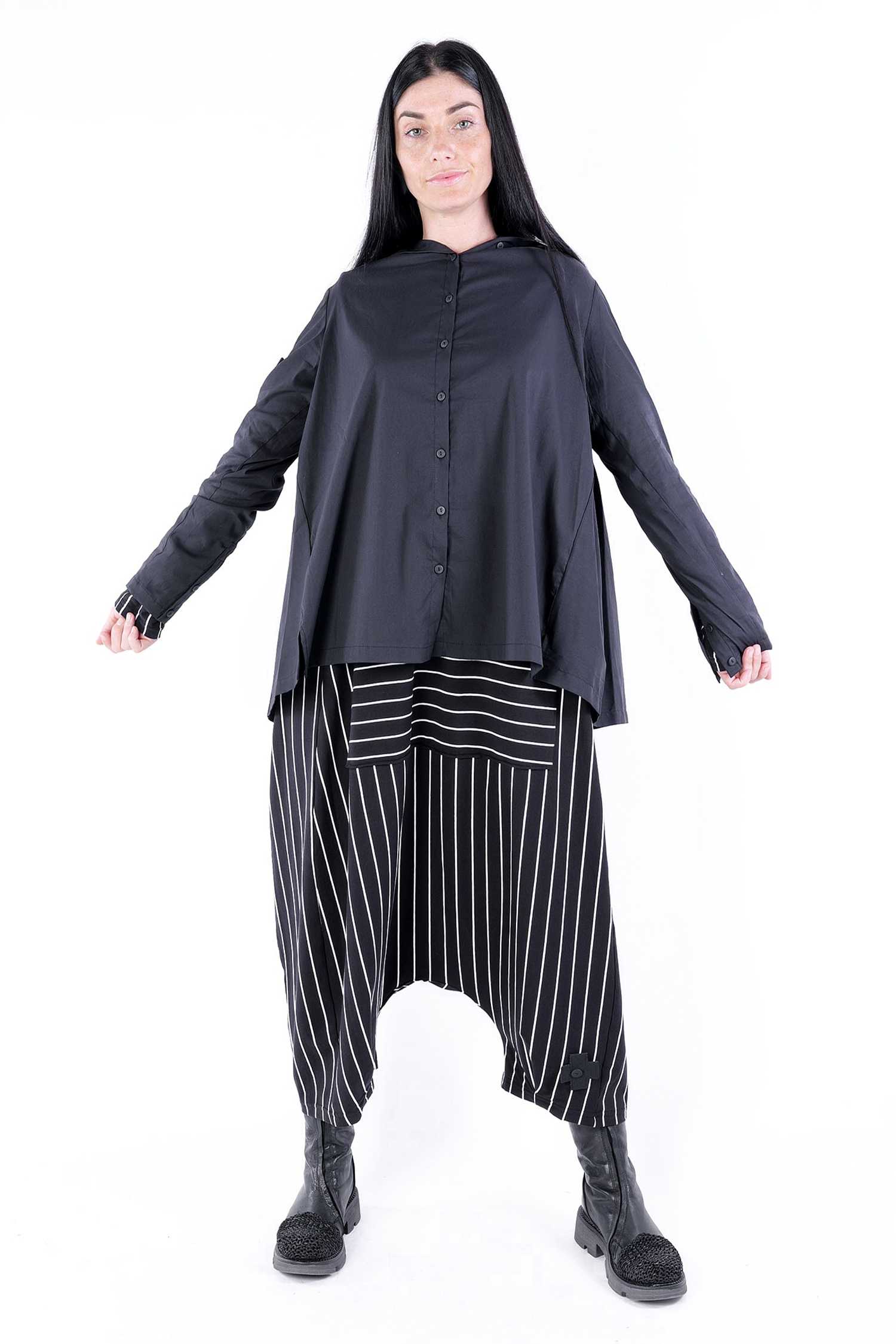 - Sleeves with cut and buttons