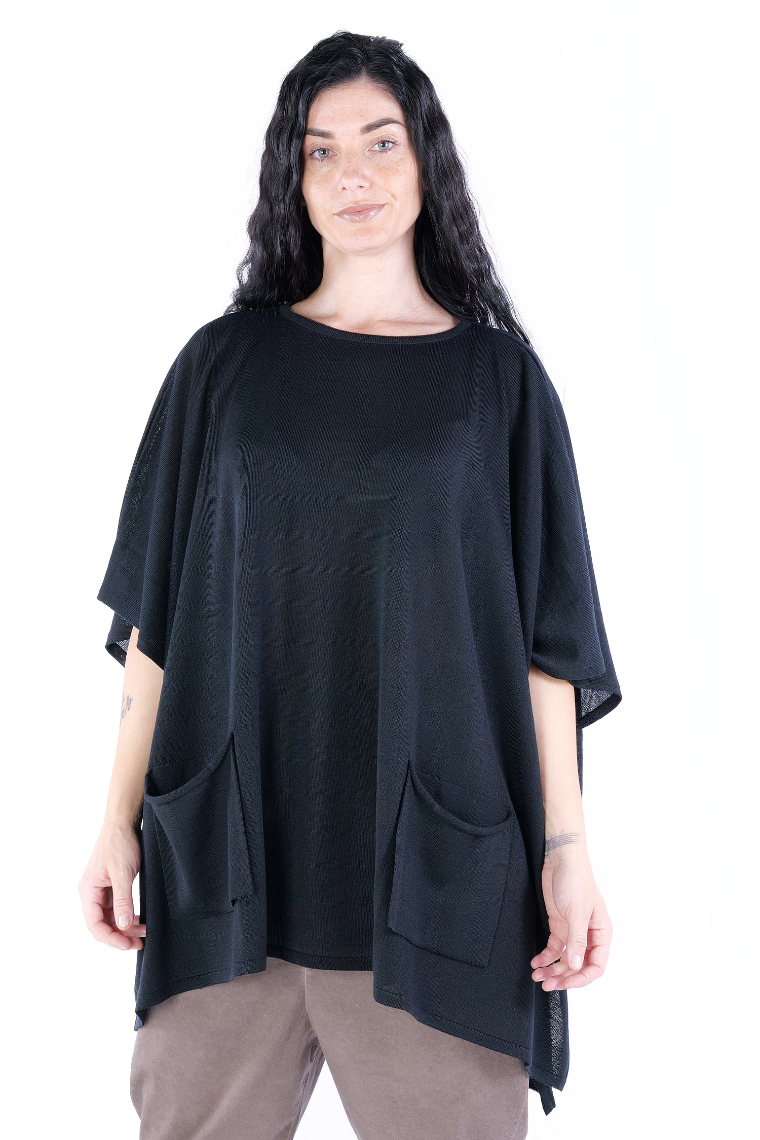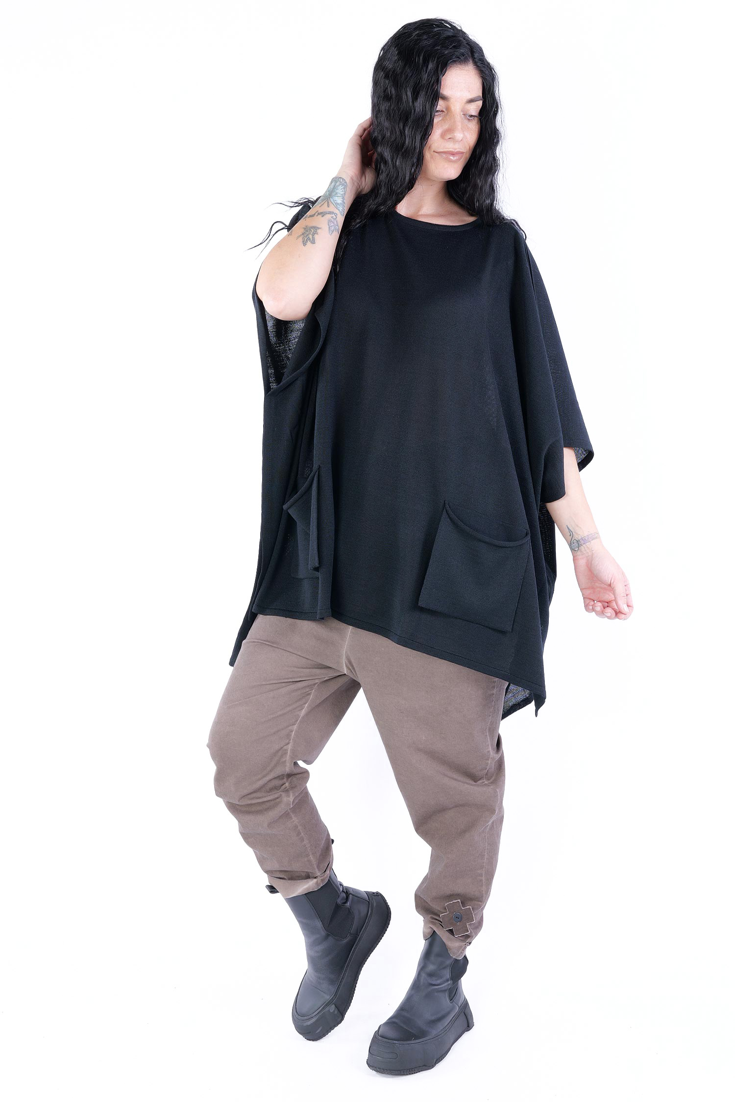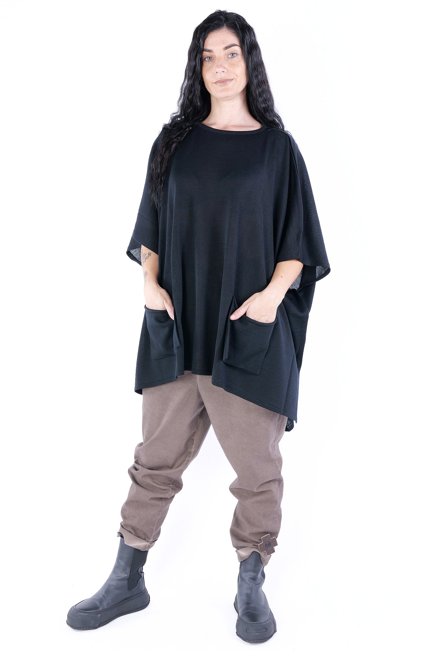 - Loose half-length sleeves