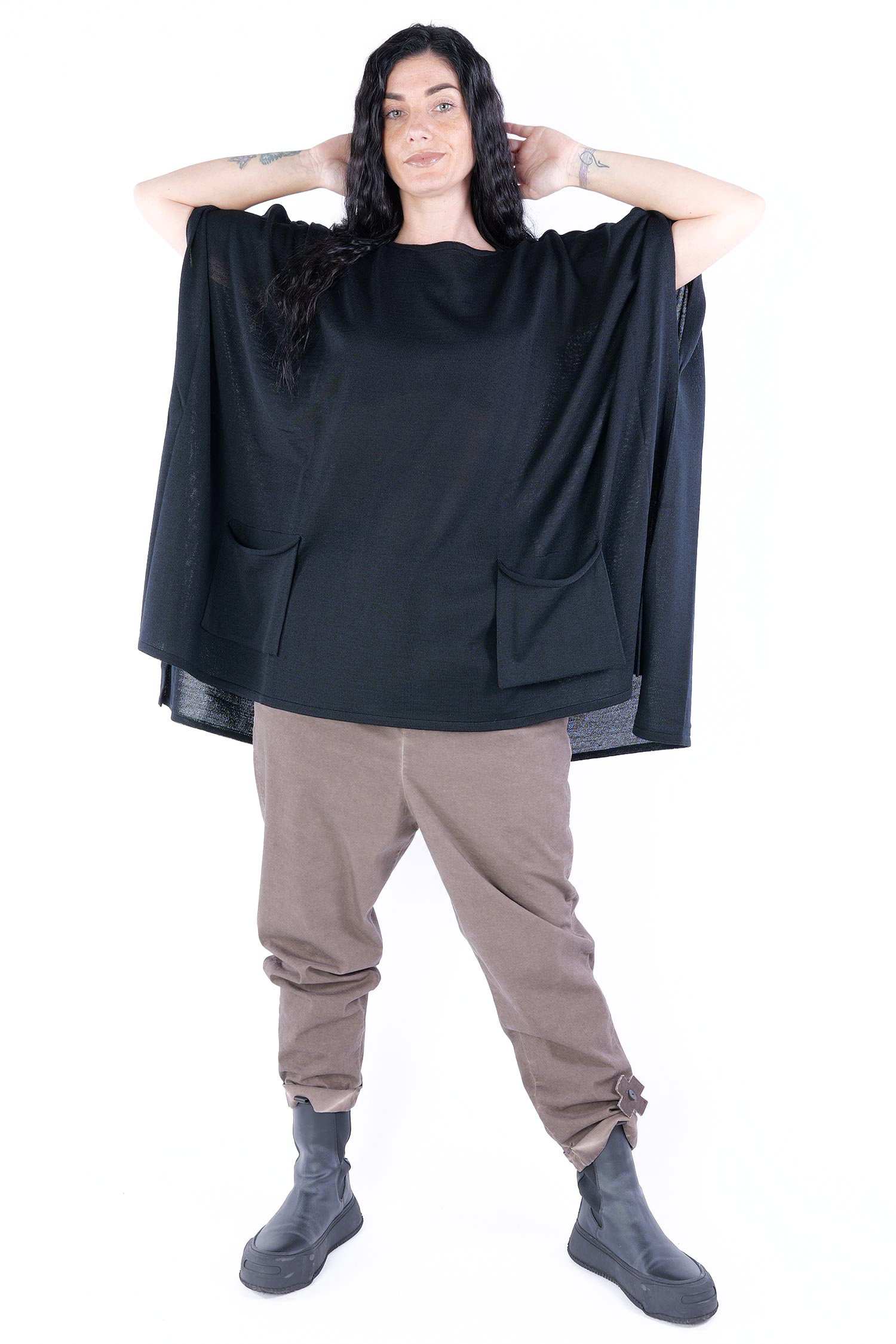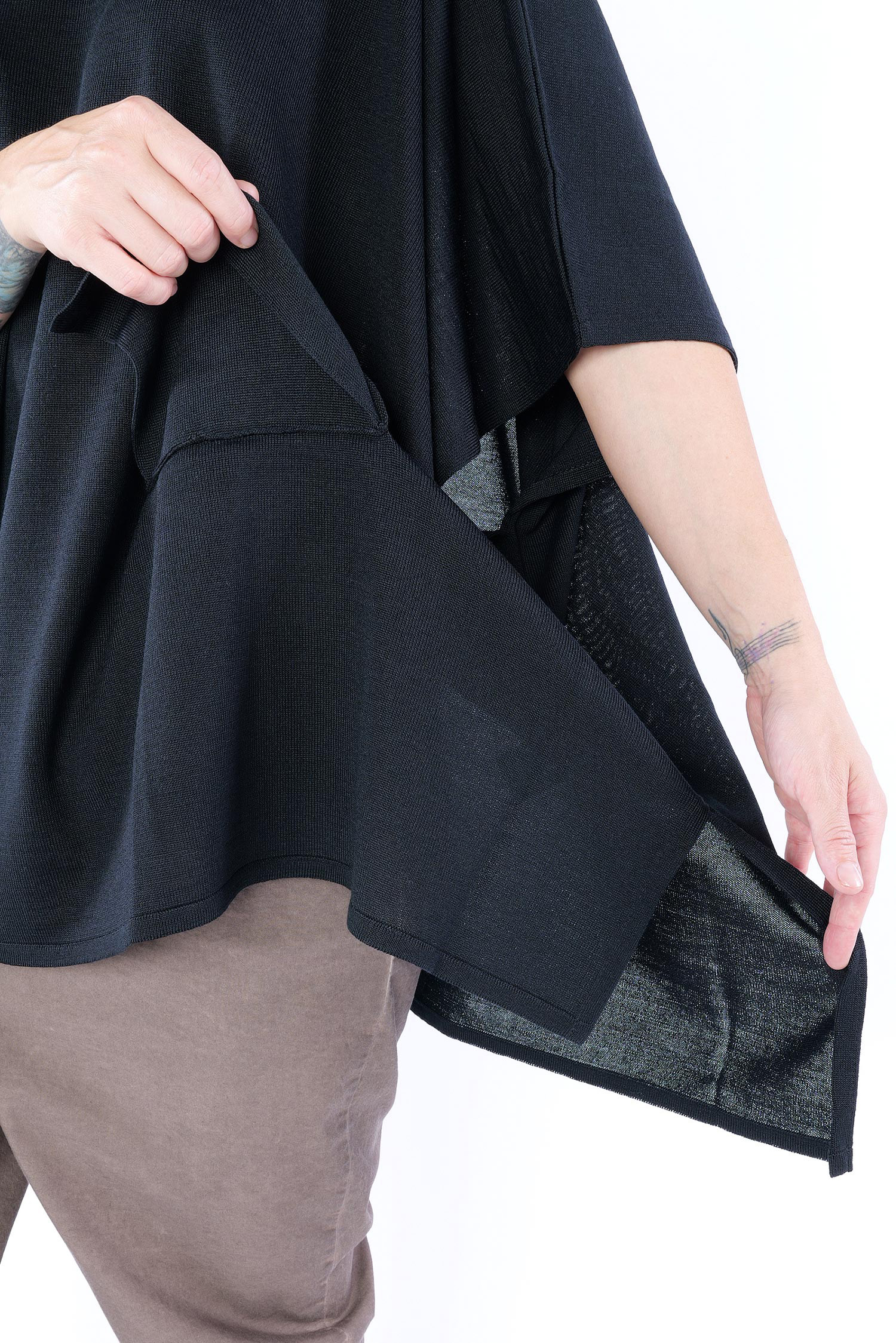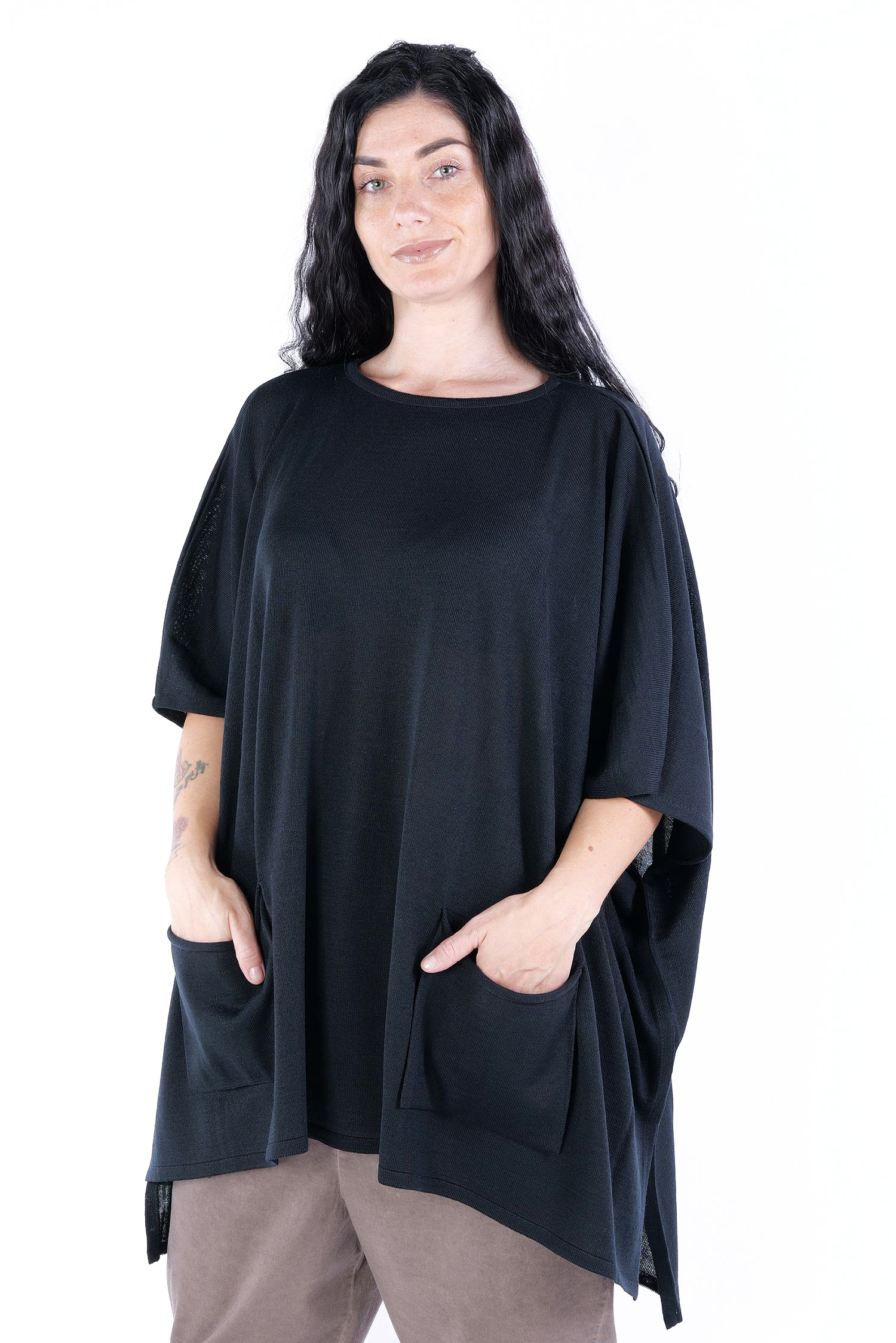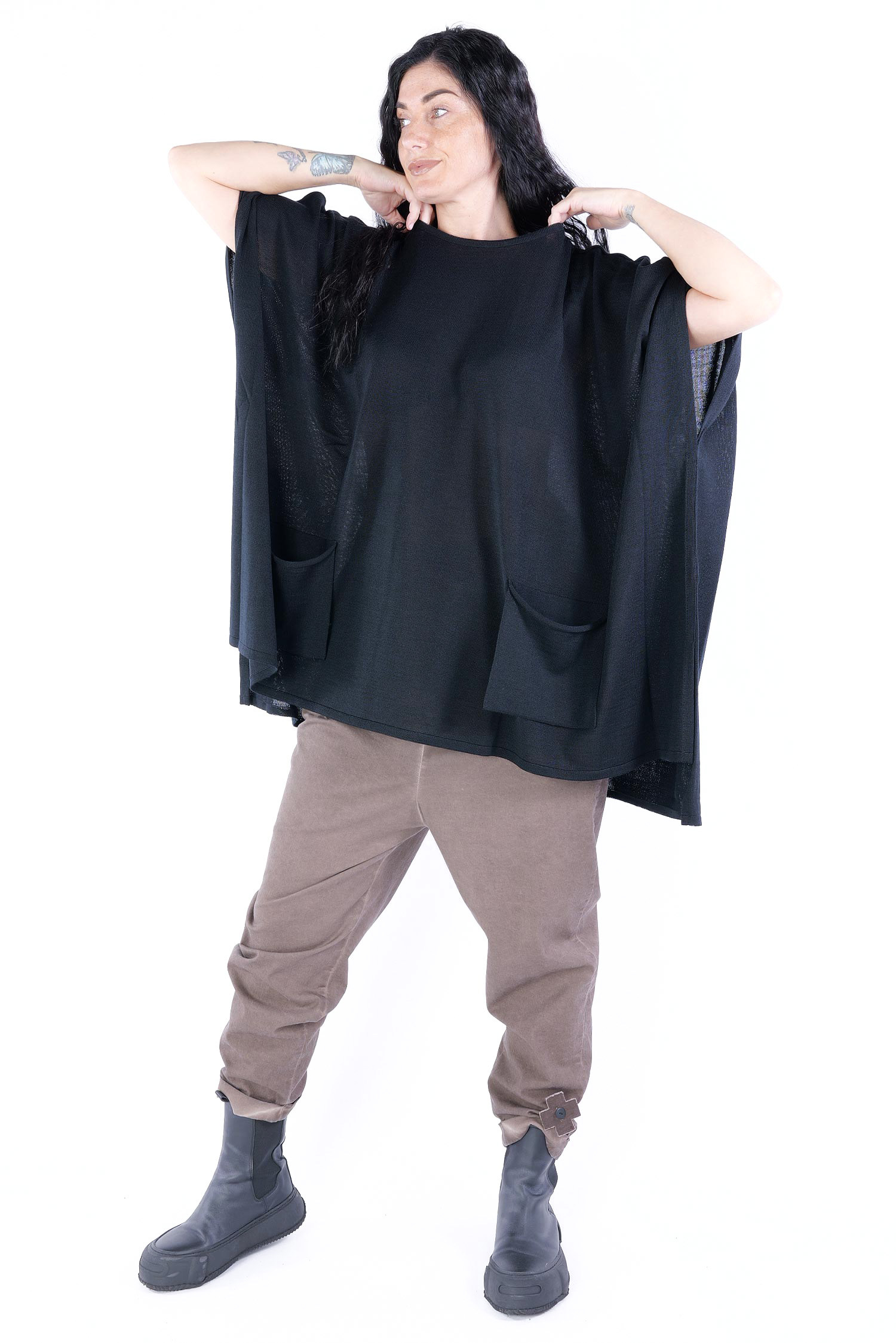 - Loose half-length sleeves