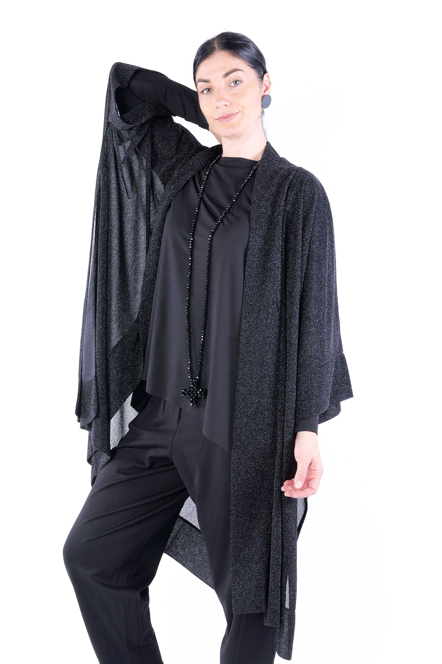 Details: - Glitter material - Smooth inside, very comfortable to wear - Extended shoulder with sleeve hem - Cut at the side - Loose sleeve hem